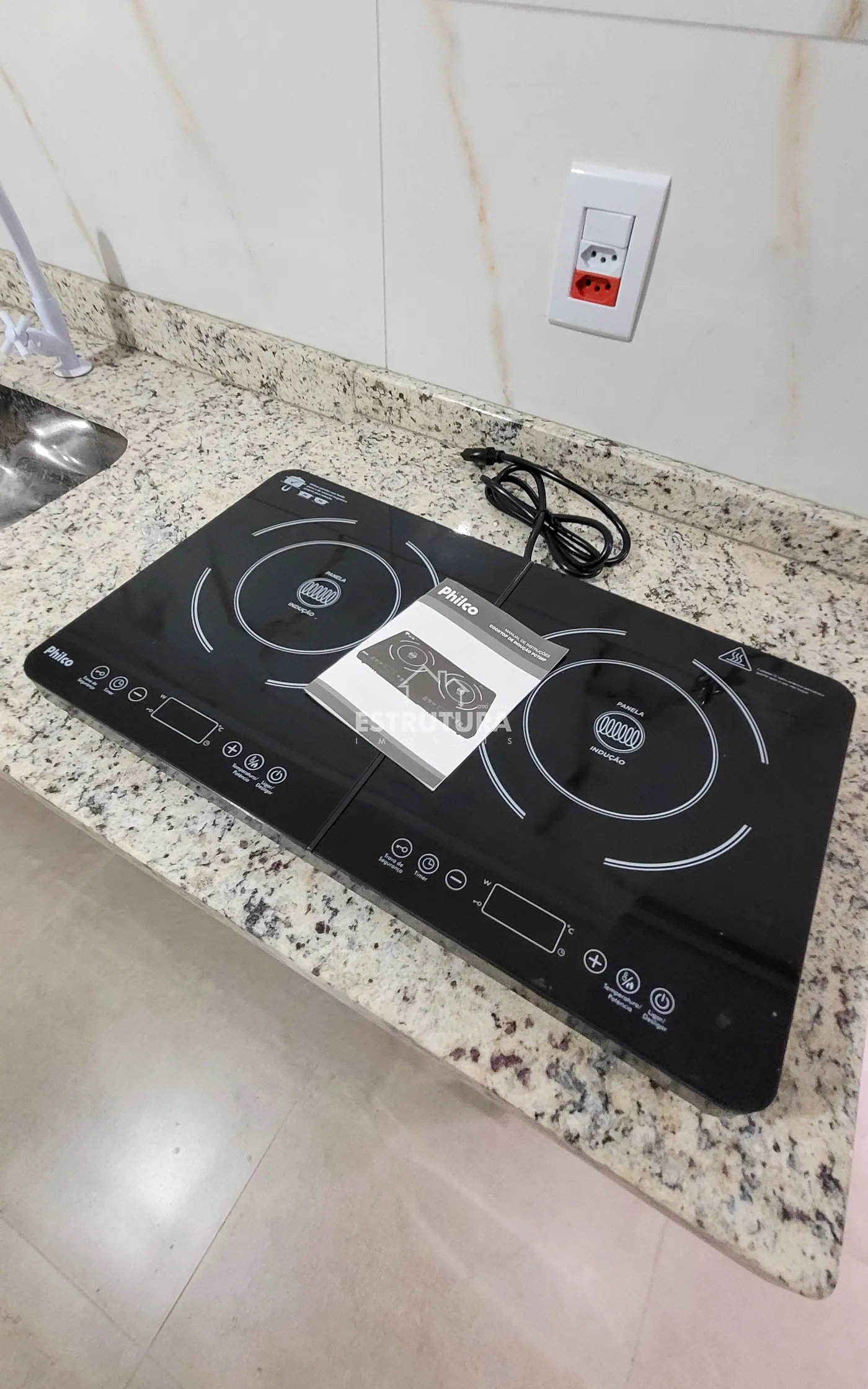 piso terreo conta cozinha completa, mesa e cadeiras, geladeira, gabinete, fogão de indução, garagem para bike e para moto consultar disponibilidade.