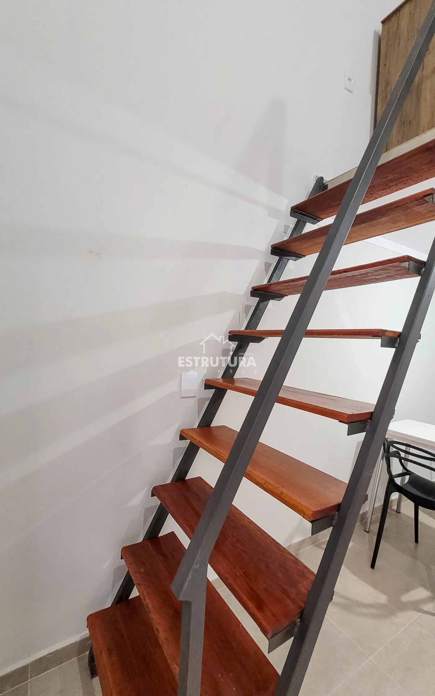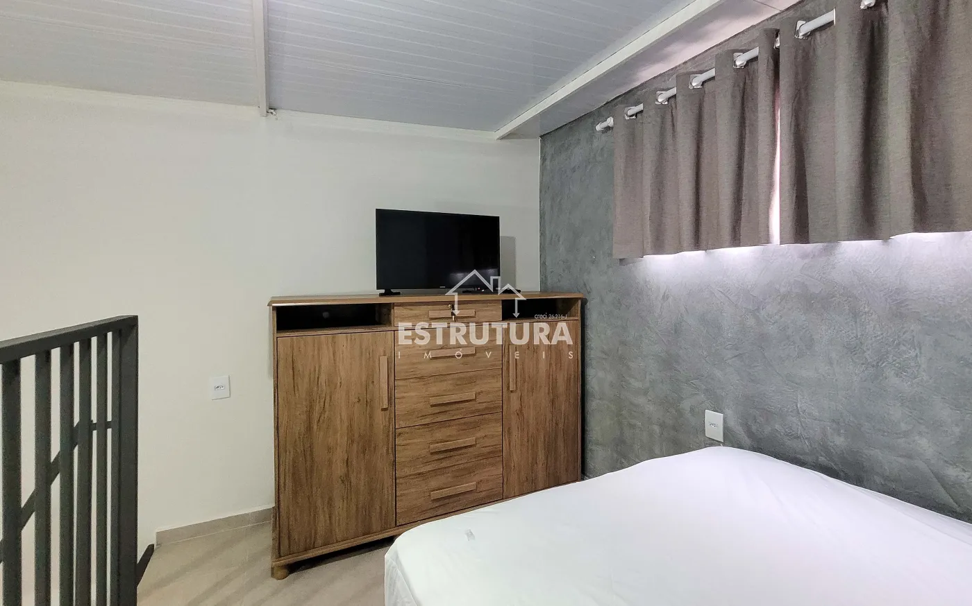 Loft mobiliado com mezanino em otima localização com dormitorio no piso superior, ar condicionado, cama, Tv, comoda