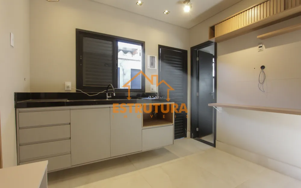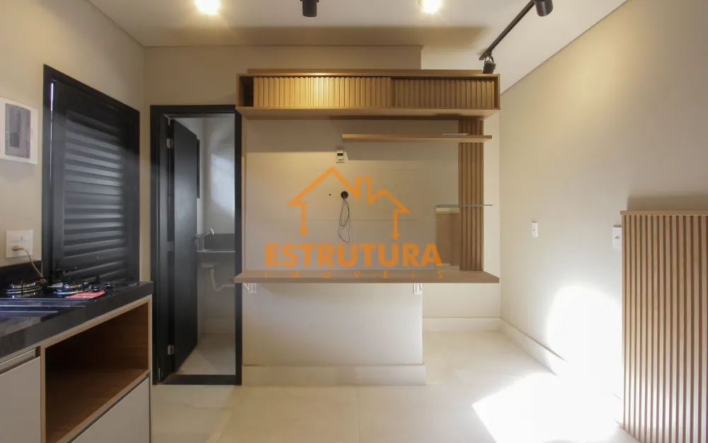 A kitnet possui fino acabamento com spot de led, cozinha e quarto integrados, cozinha com gabinete grande e fogão de 2 bocas elétrico e quarto com painel de TV e já com entrada para colocação de ar condicionado, wc social com box e chuveiro.