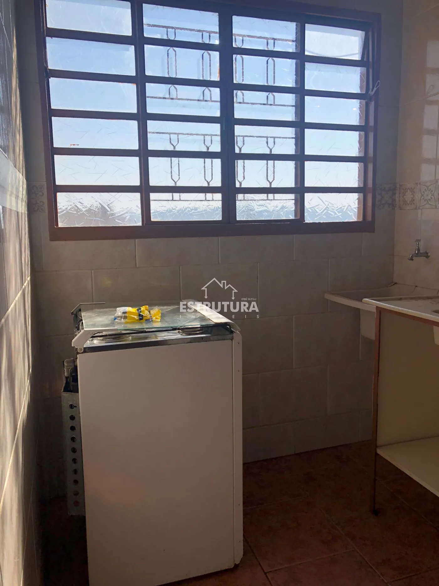 Kitnet semi mobiliada com 1 dormitório e cozinha estilo americana, wc social e lavanderia.