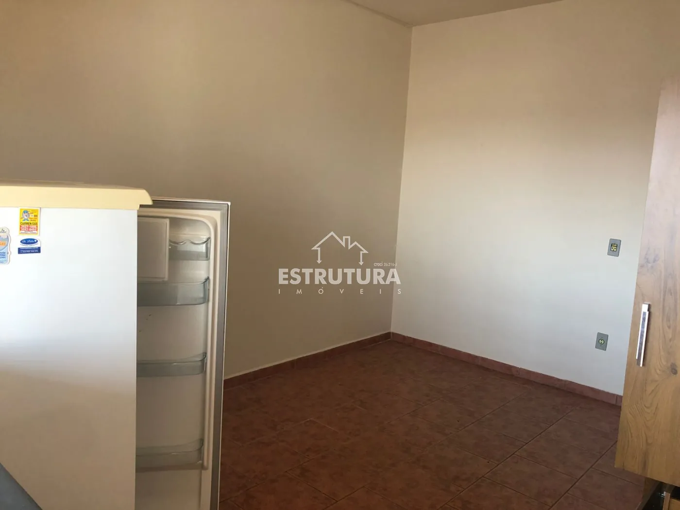 Possui geladeira, fogão, guarda roupa.