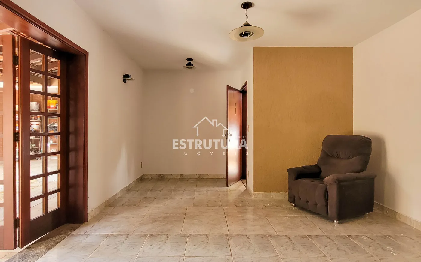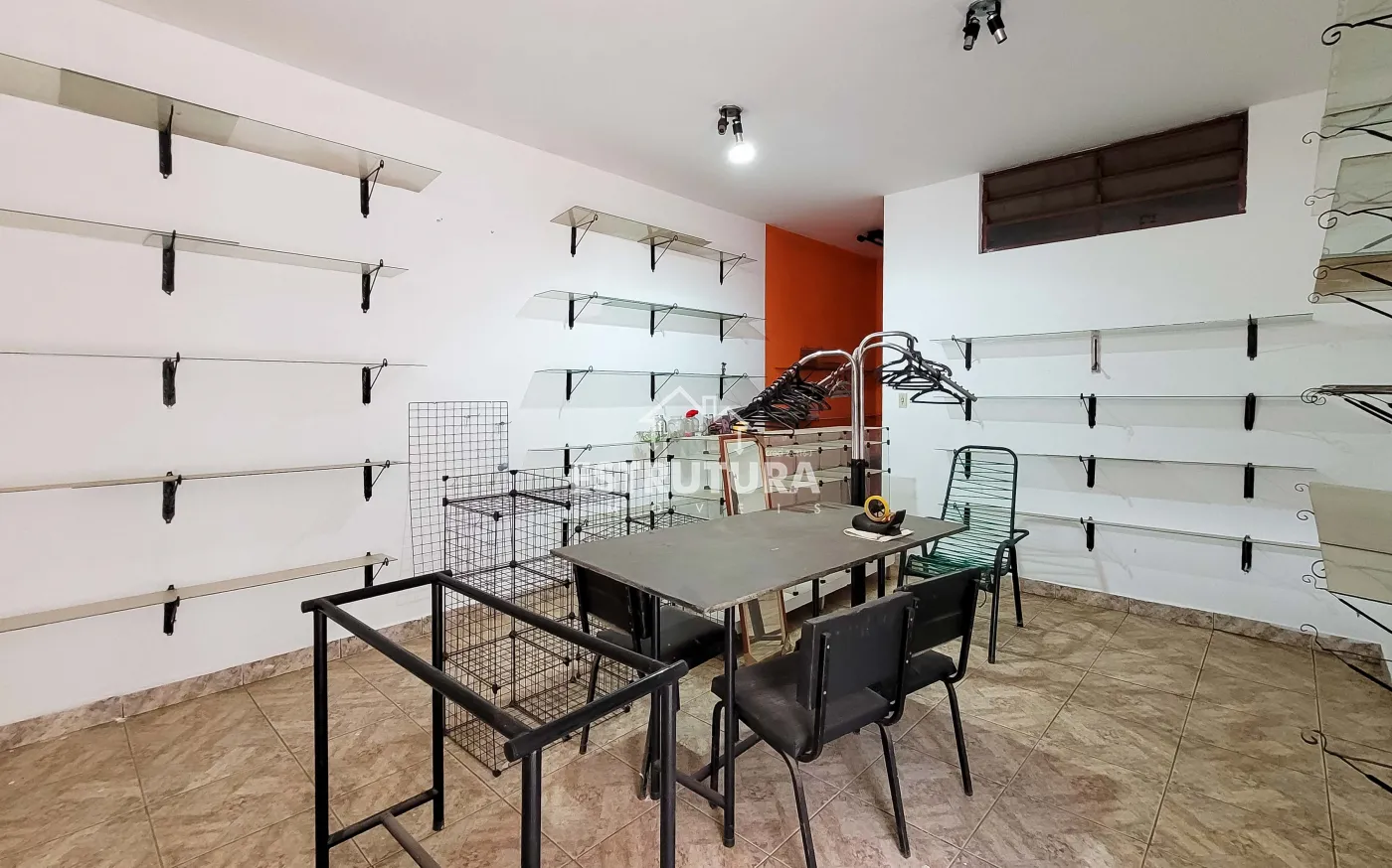 Salao ao lado com hall de entrada, amplo espaço para finalidade, contendo sala separada (podendo ser estoque ou escritorio), banheiro social, area de luz com pequena lavanderia.