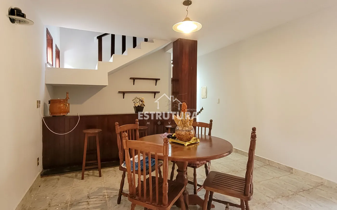 Casa piso térreo conta com garagem para 2 carros (gaveta), portão eletrônico fechado, sala de jantar integrada com a sala ampla, barzinho e perfeito para momentos familiares e de confraternização, copa com armários, 1 banheiro social e cozinha externa com gabinete Casa piso superior, conta com 2 dormitórios, sendo um deles equipado com ar-condicionado e varanda dando acesso a area de lazer ampla que conta com vista privilegiada, closet, e banheiros com banheira.