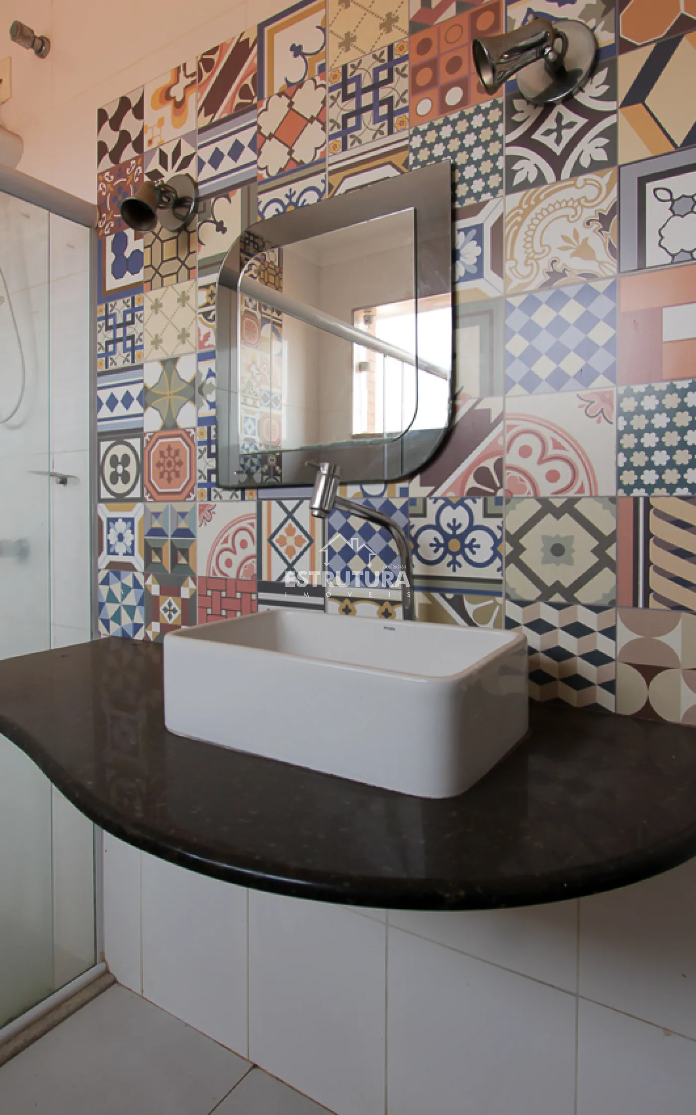 Piso superior: 3 dormitórios com armários e 2 banheiros sociais.