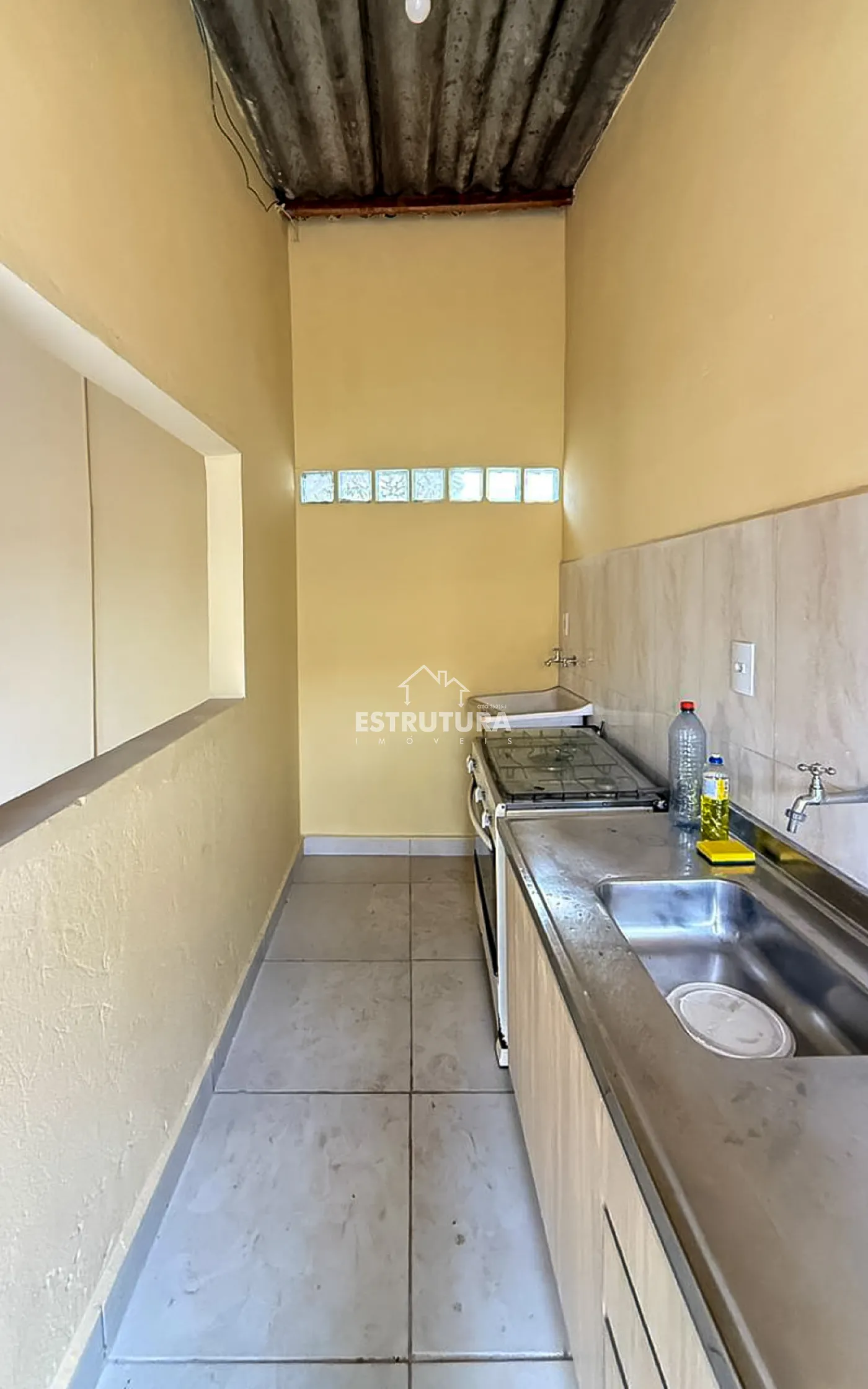 Com cozinha e 1 banheiro.