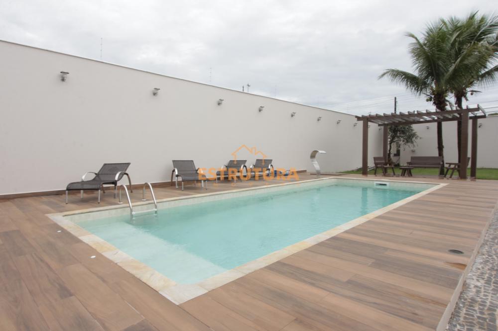 Entrada com lindo gramado e jardins, piscina com cascata, visual encantador.