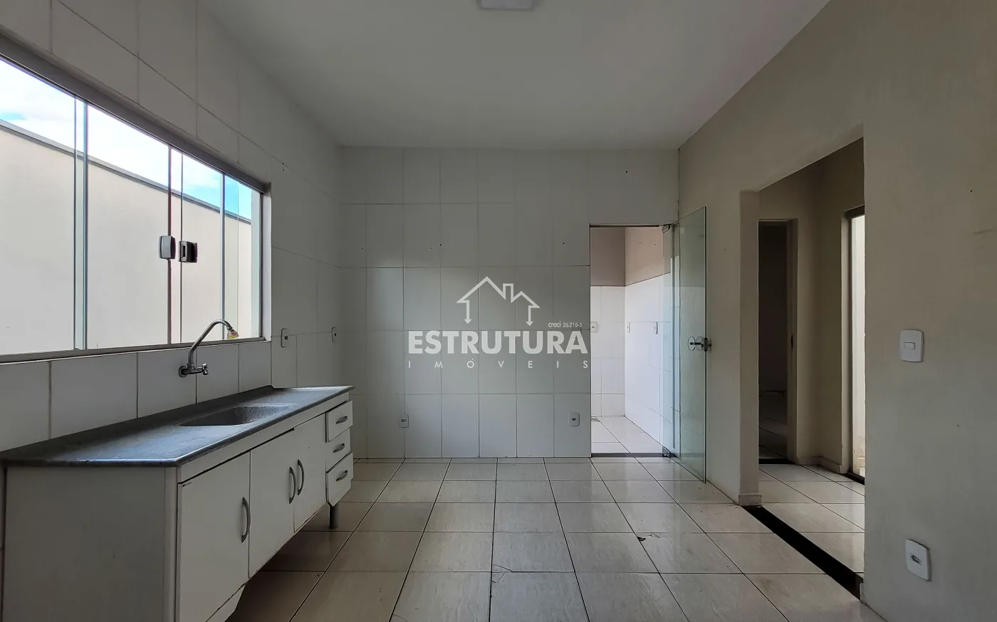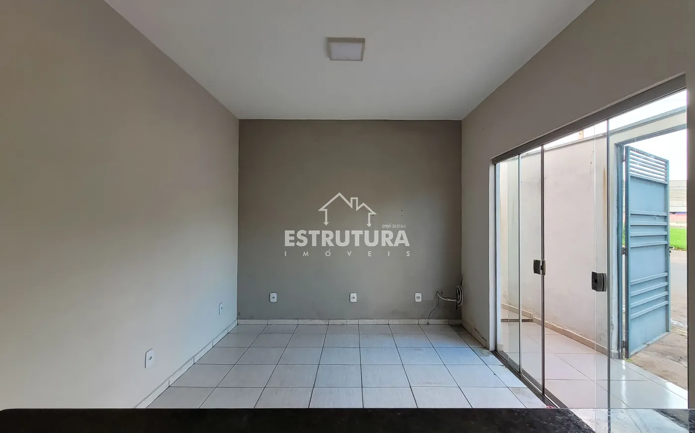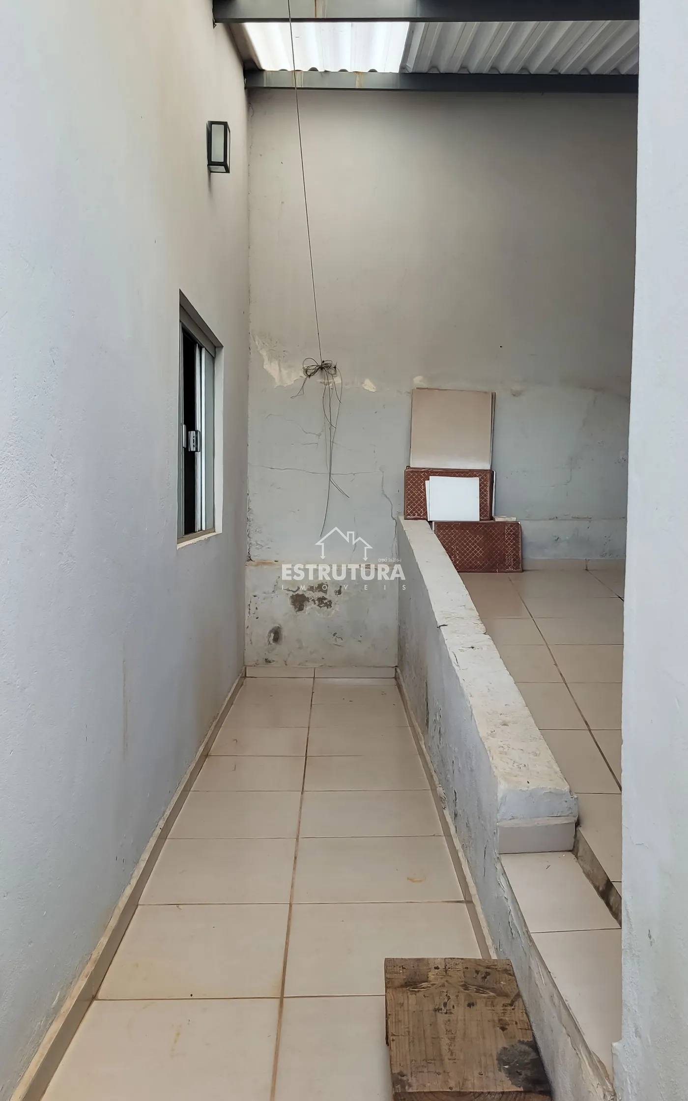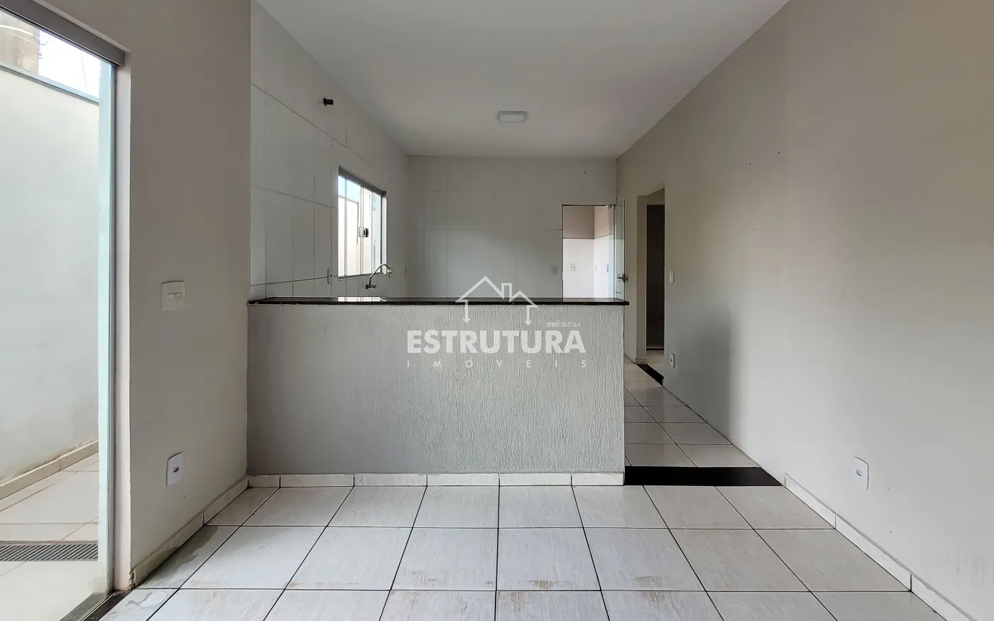 Casa residencial com 2 dormitórios, sendo 1 suíte, 1 banheiro social, sala, cozinha, lavanderia, área de luz e garagem.