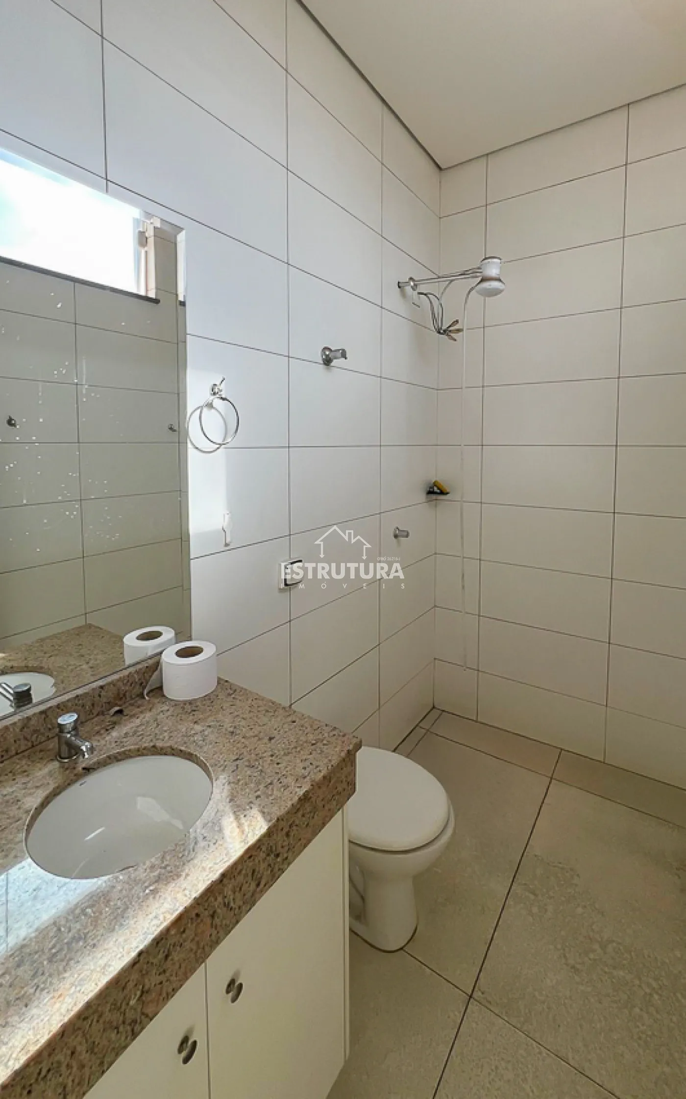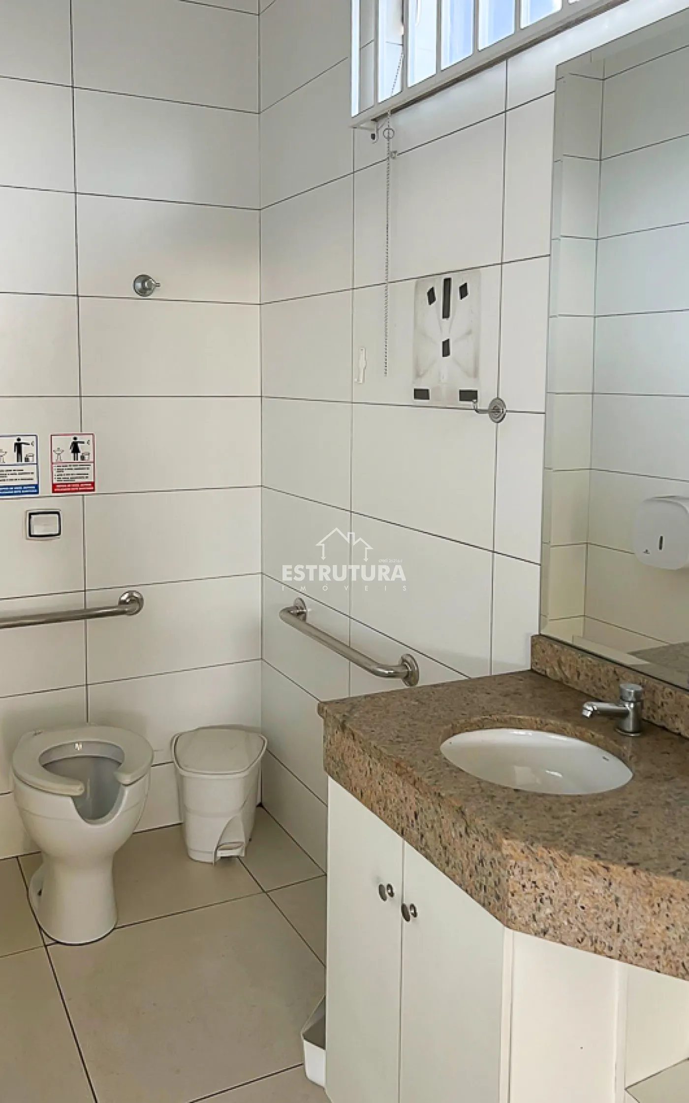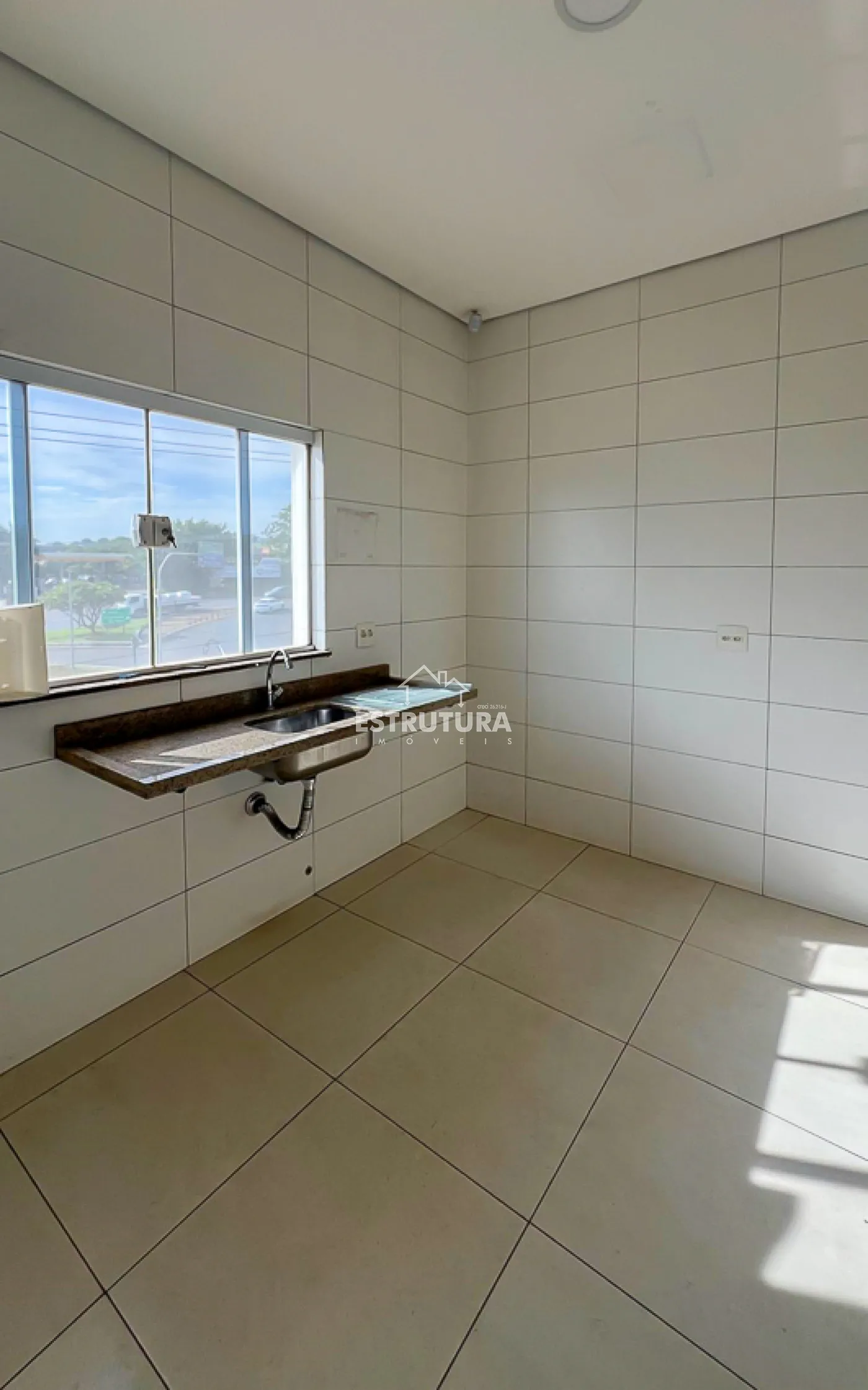 No piso térreo contem amplo salão com 3 portas automáticas, recuo frontal para 4 carros, sala e banheiro social.