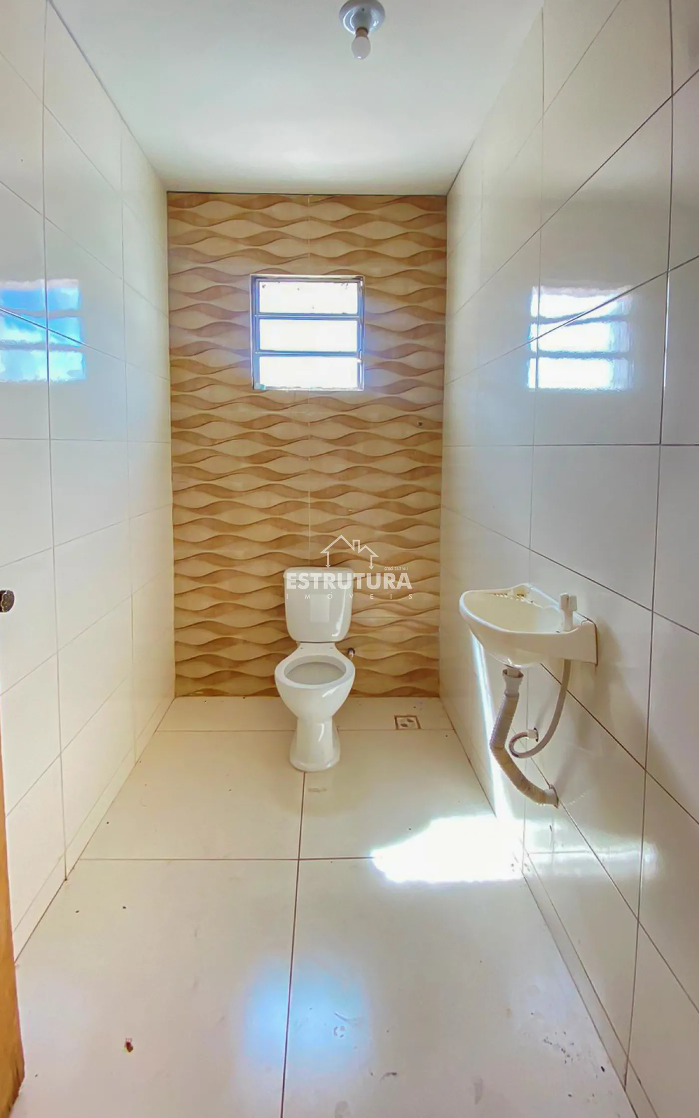 Possui 166 m² de área construída, com 2 banheiros e área que pode ser adaptada para uma cozinha.