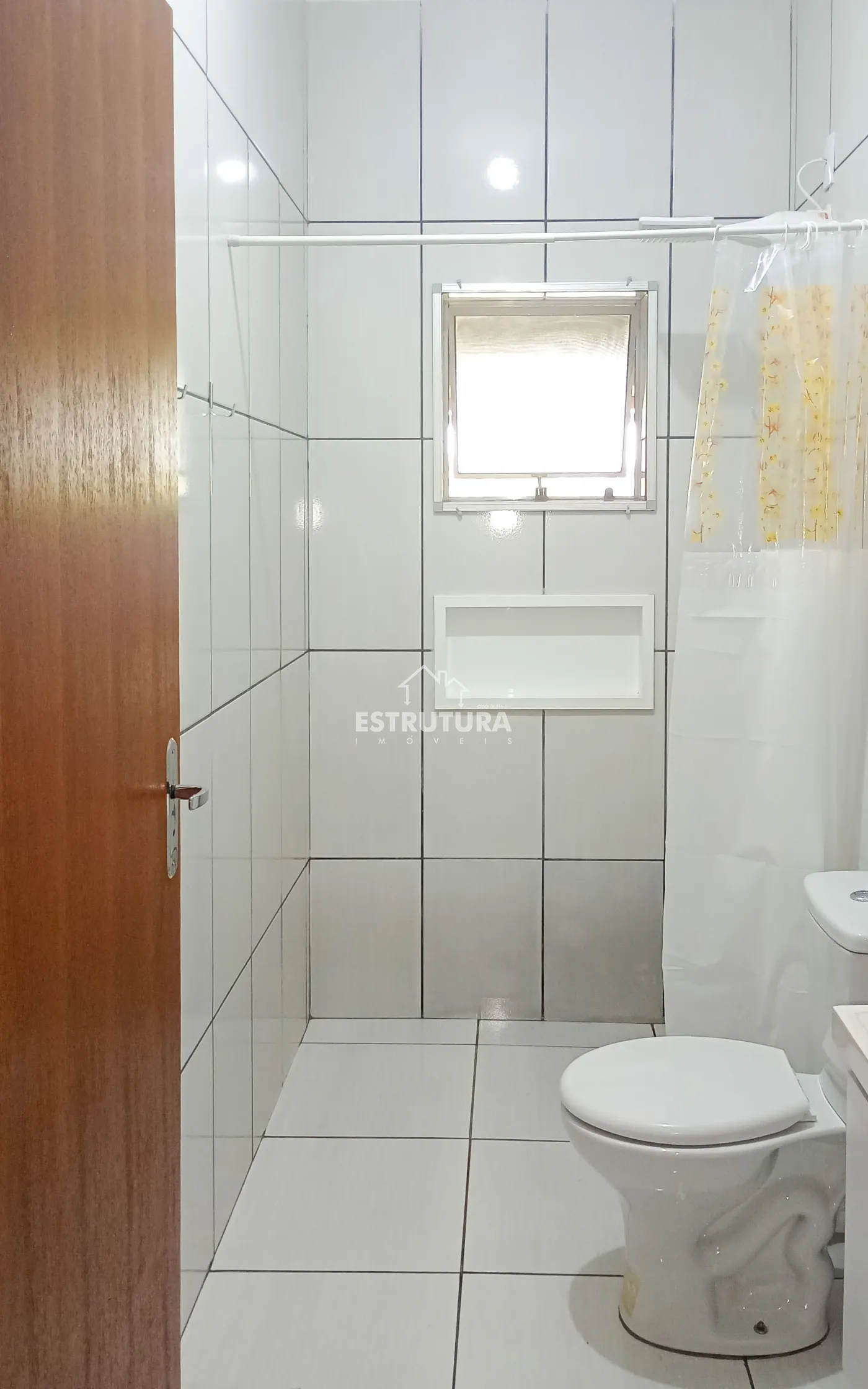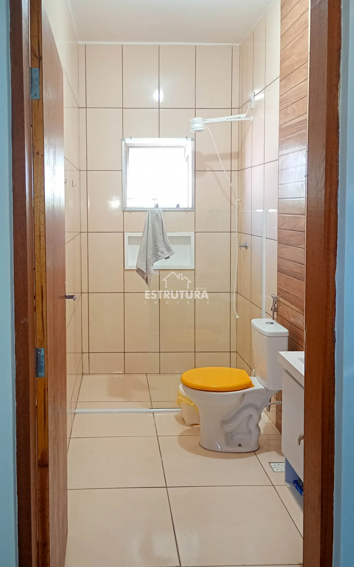 Construção em laje, piso frio, portas e janelas com telas anti-mosquito.
