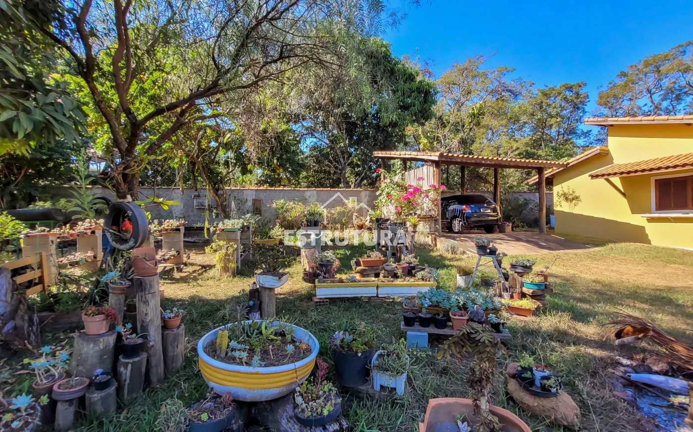 Belíssima Chácara contem 3 quartos sendo 1 suíte com closet, sala, cozinha, 3 banheiros, na frente do terreno temos um quarto suspenso com garagem p + 2 carros e nos fundos da casa temos um Canil no interior da chácara temos varias arvores frutíferas e plantas ornamentais.