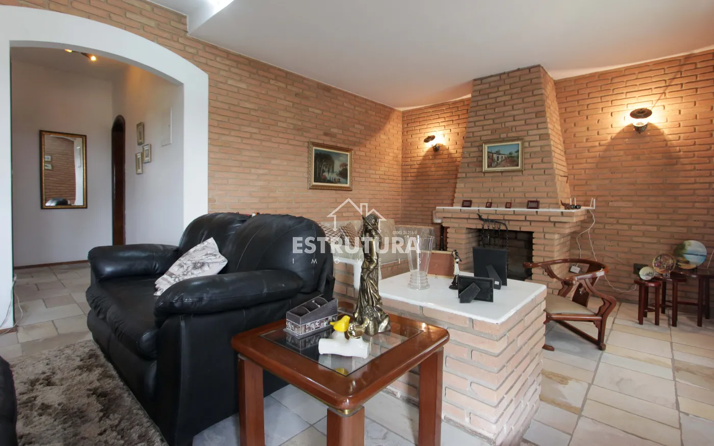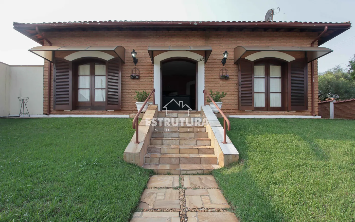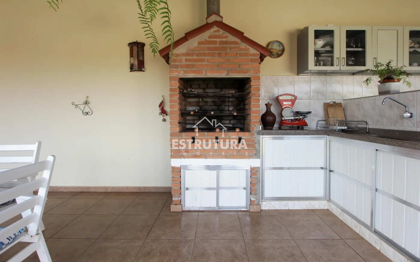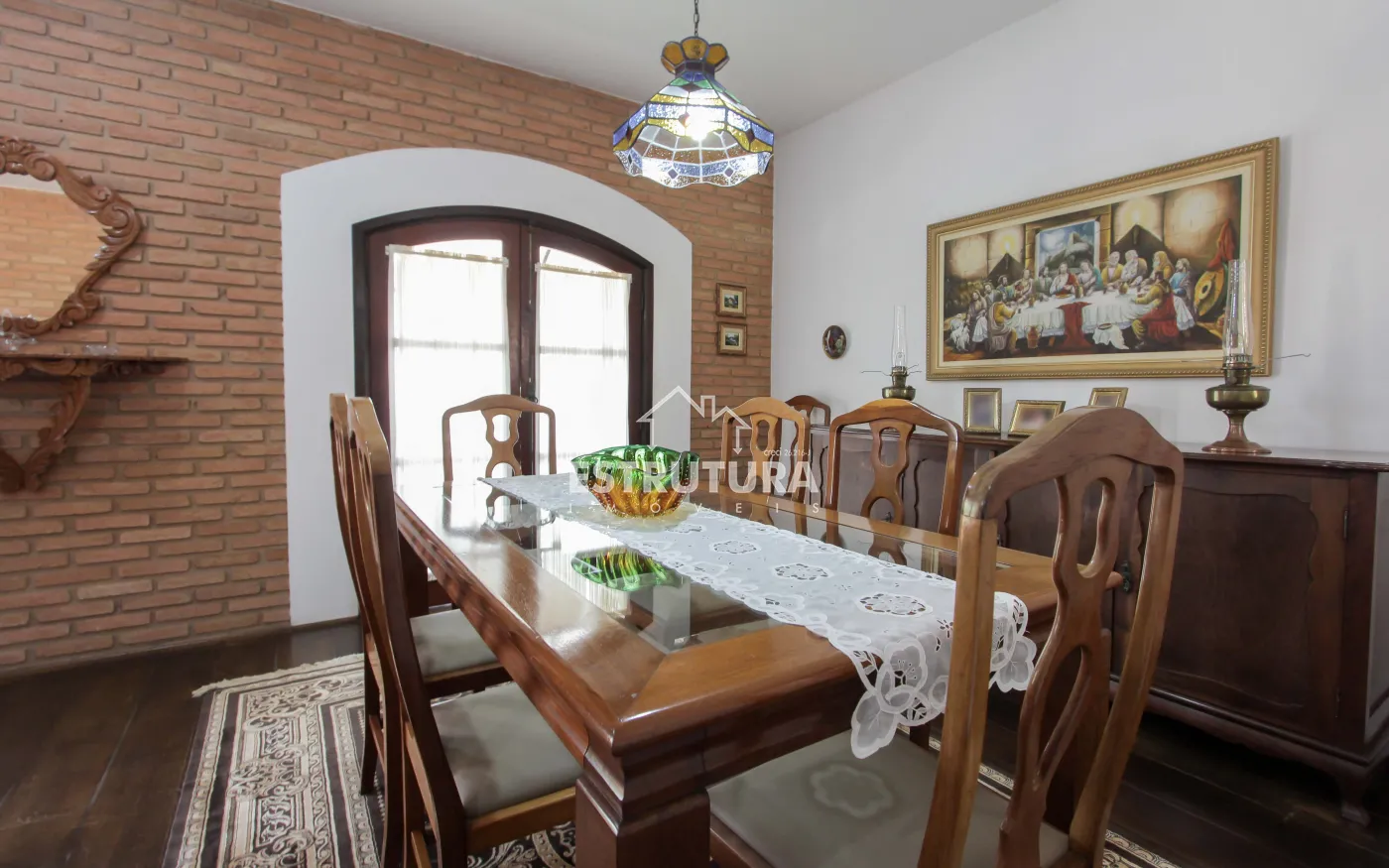 Casa de esquina, construída com tijolinhos, jardim com entrada social, garagem com portão eletrônico coberta para 02 veículos, sala com três ambientes com portas balcão em madeira, piso elevado em madeira para sala de jantar, restante em pedra mineira sendo sala de tv e sala de visita com lareira, maravilhoso lavabo, duas suítes com armários em madeira e portas balcão, cozinha com armários em madeira.