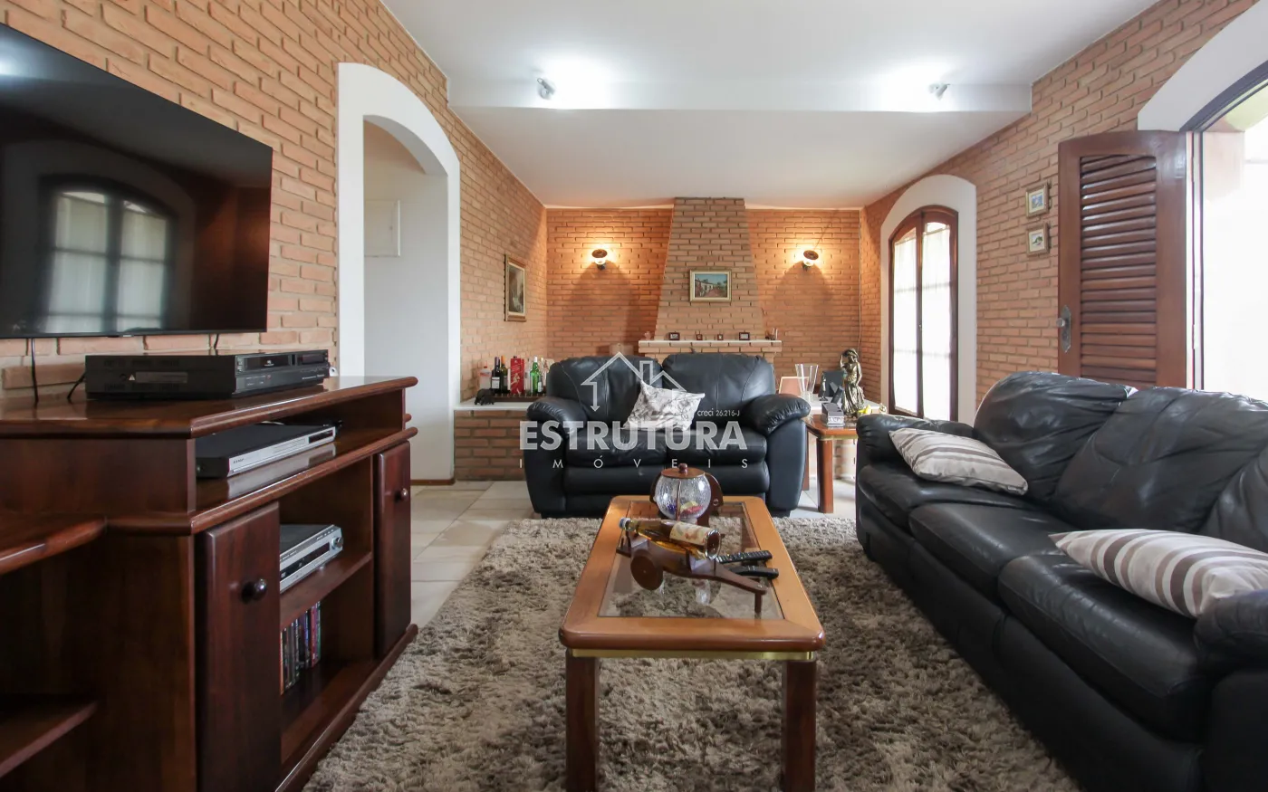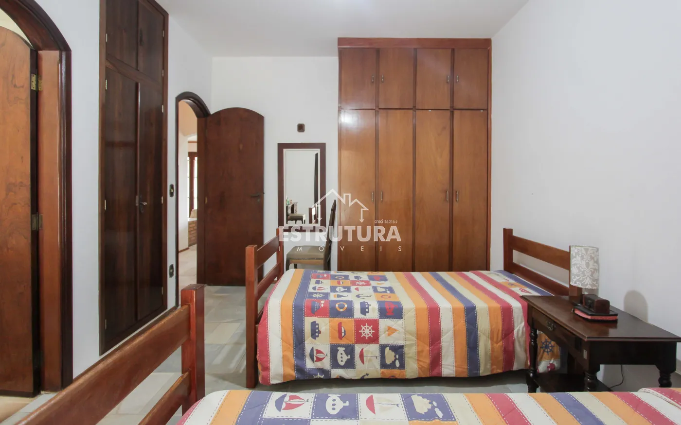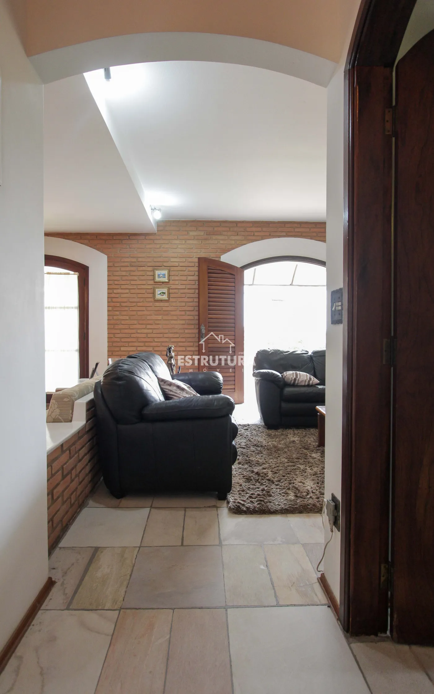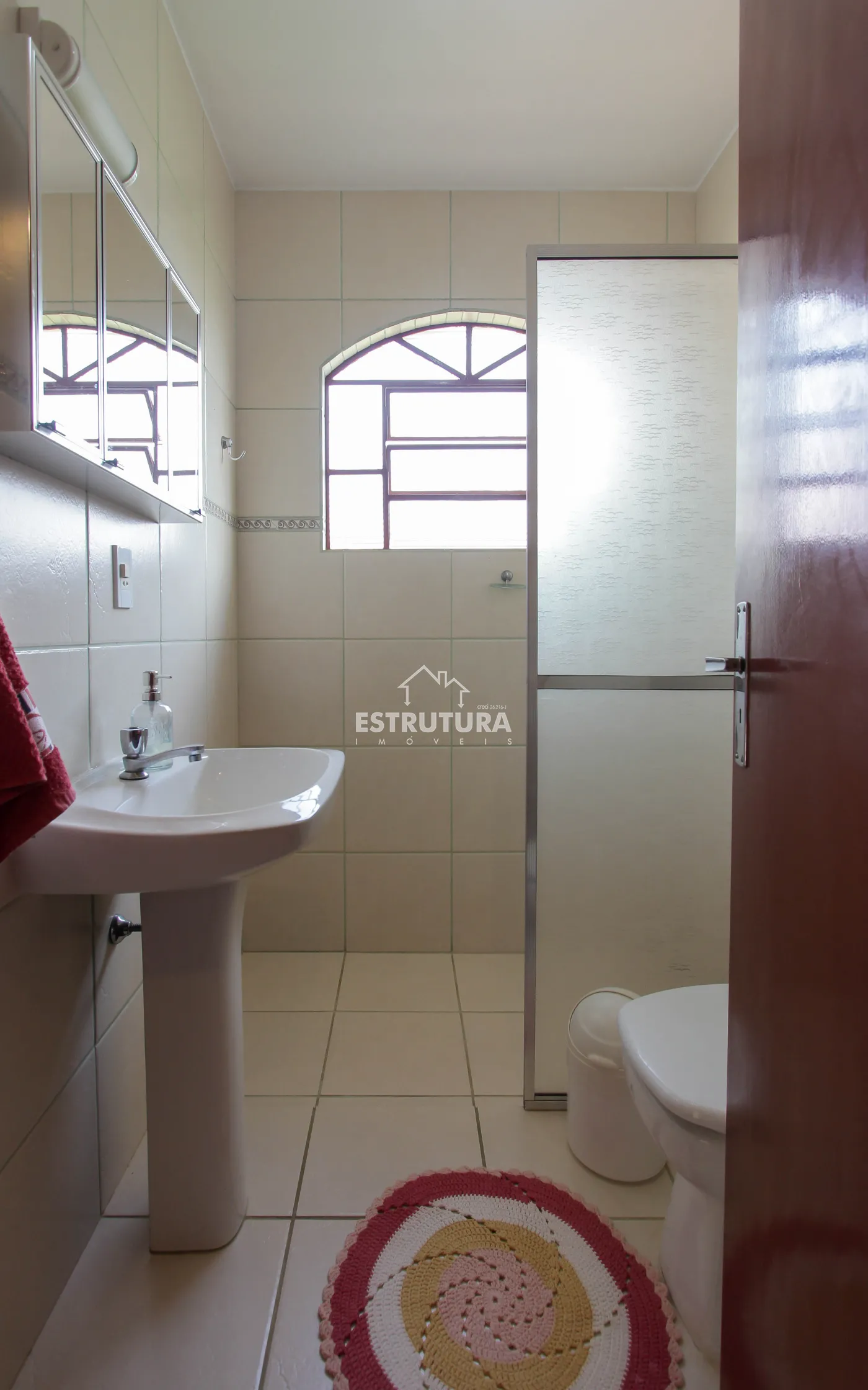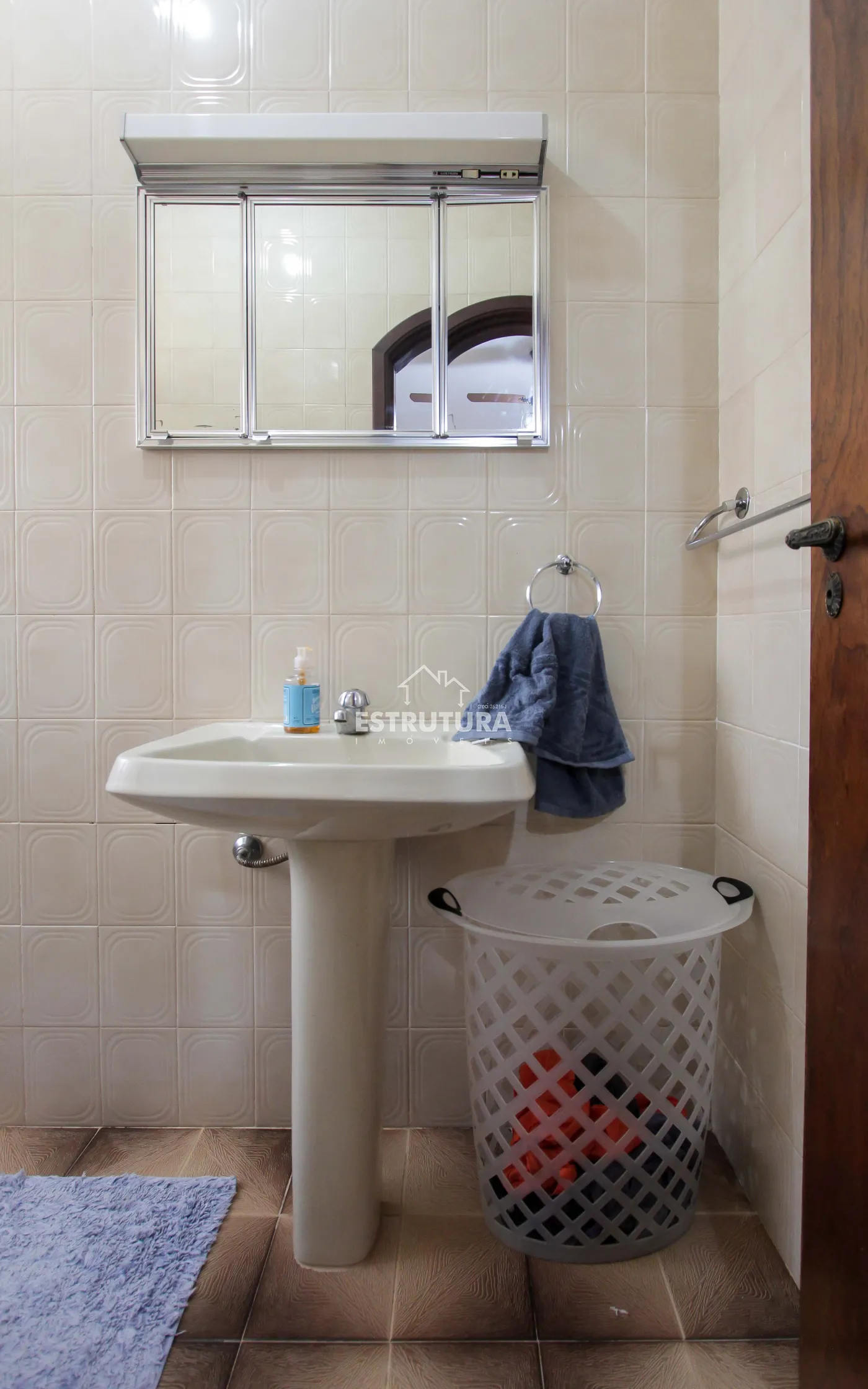 Casa de esquina, construída com tijolinhos, jardim com entrada social, garagem com portão eletrônico coberta para 02 veículos, sala com três ambientes com portas balcão em madeira, piso elevado em madeira para sala de jantar, restante em pedra mineira sendo sala de tv e sala de visita com lareira, maravilhoso lavabo, duas suítes com armários em madeira e portas balcão, cozinha com armários em madeira.