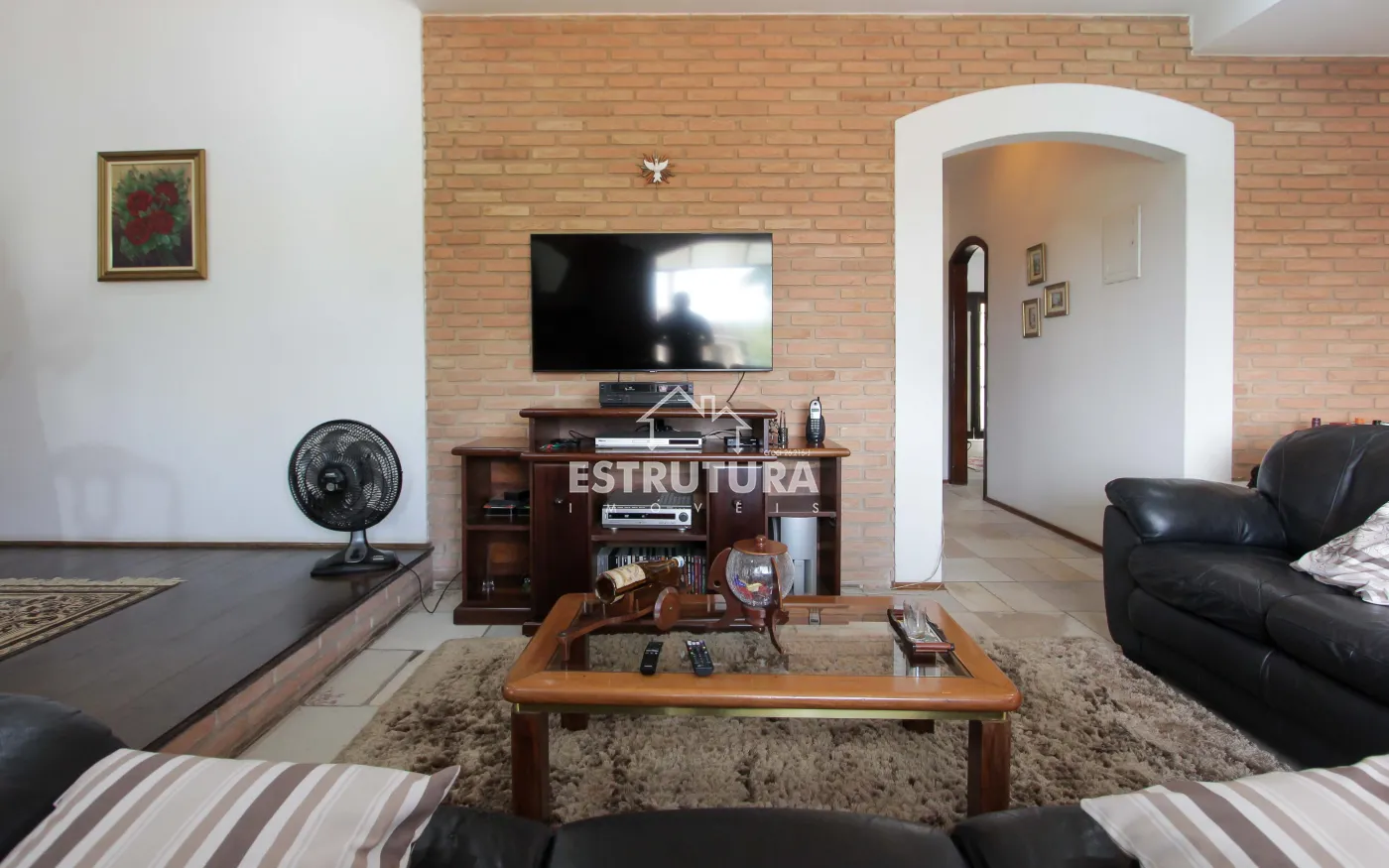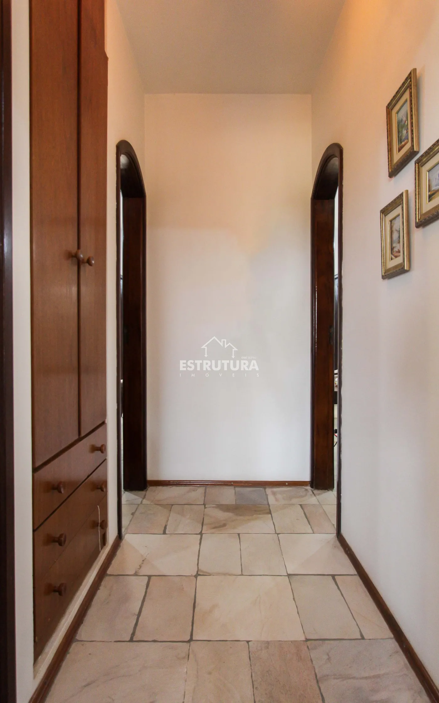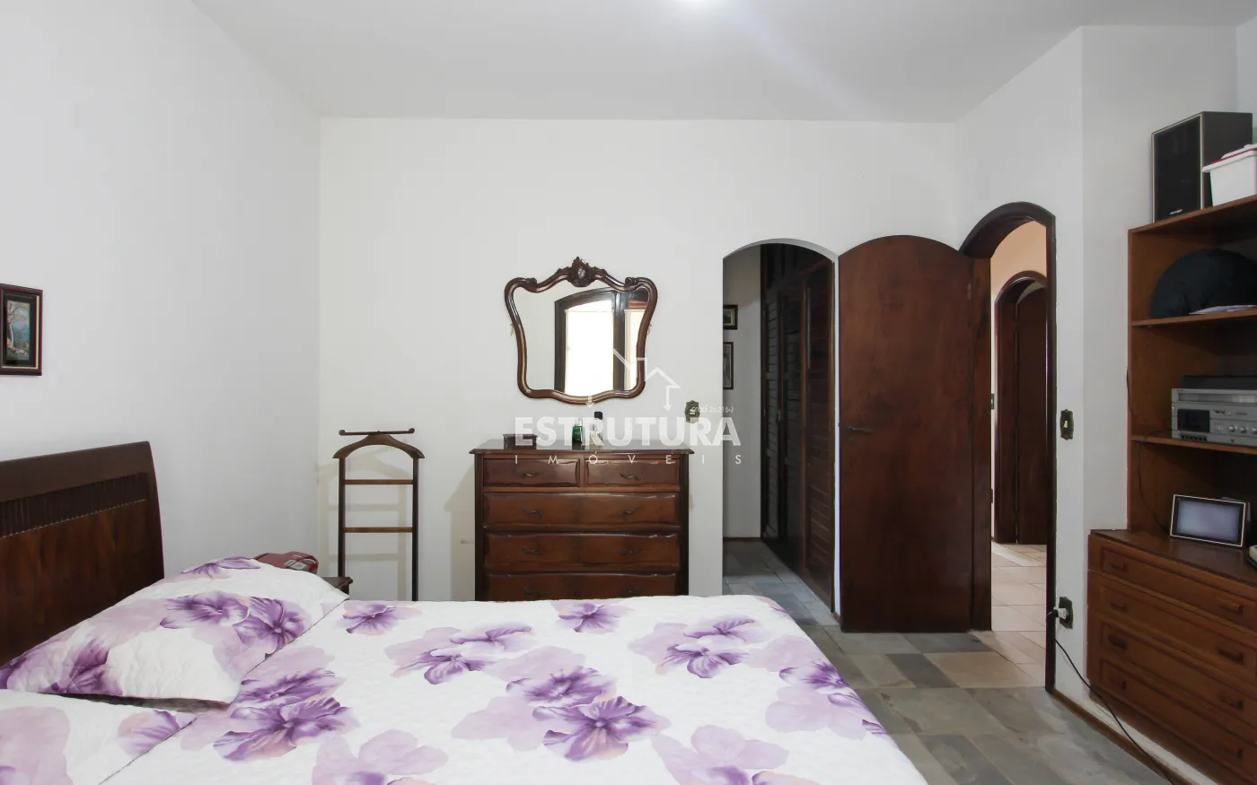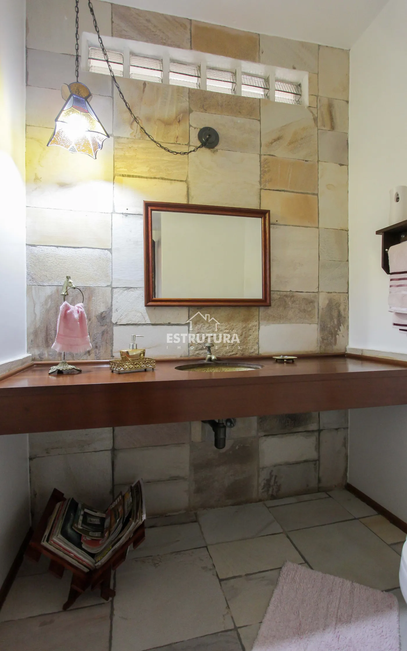 Casa de esquina, construída com tijolinhos, jardim com entrada social, garagem com portão eletrônico coberta para 02 veículos, sala com três ambientes com portas balcão em madeira, piso elevado em madeira para sala de jantar, restante em pedra mineira sendo sala de tv e sala de visita com lareira, maravilhoso lavabo, duas suítes com armários em madeira e portas balcão, cozinha com armários em madeira.