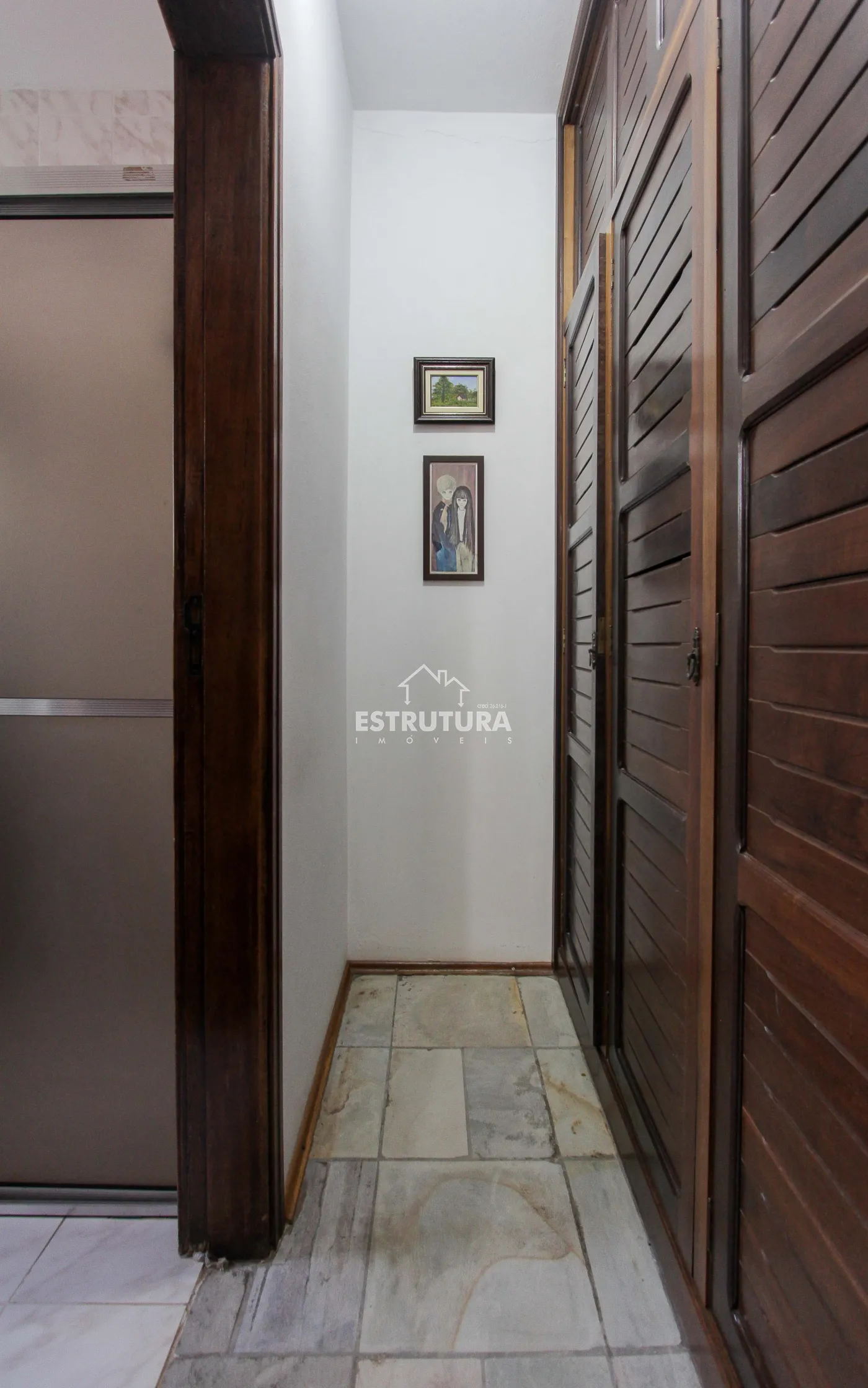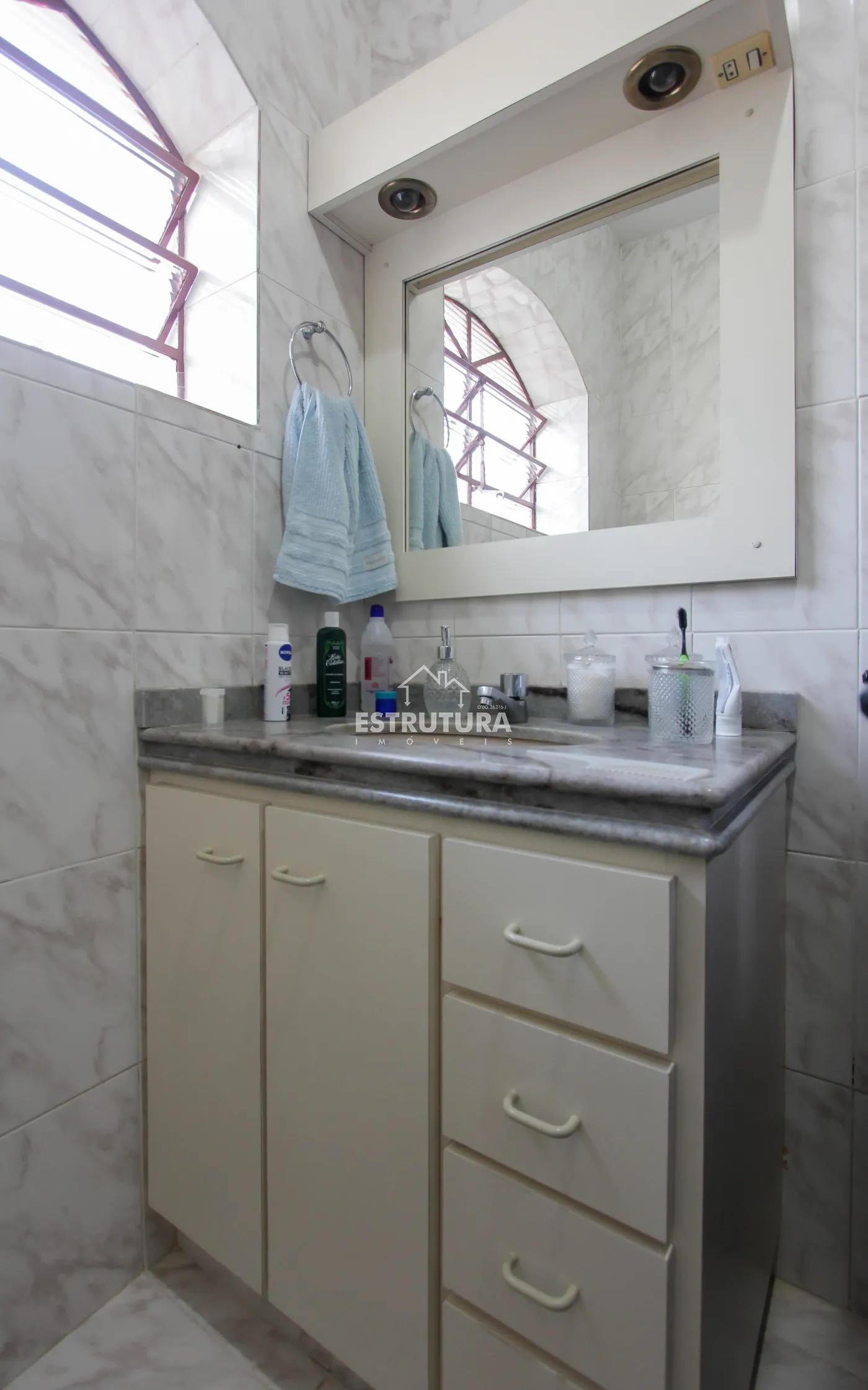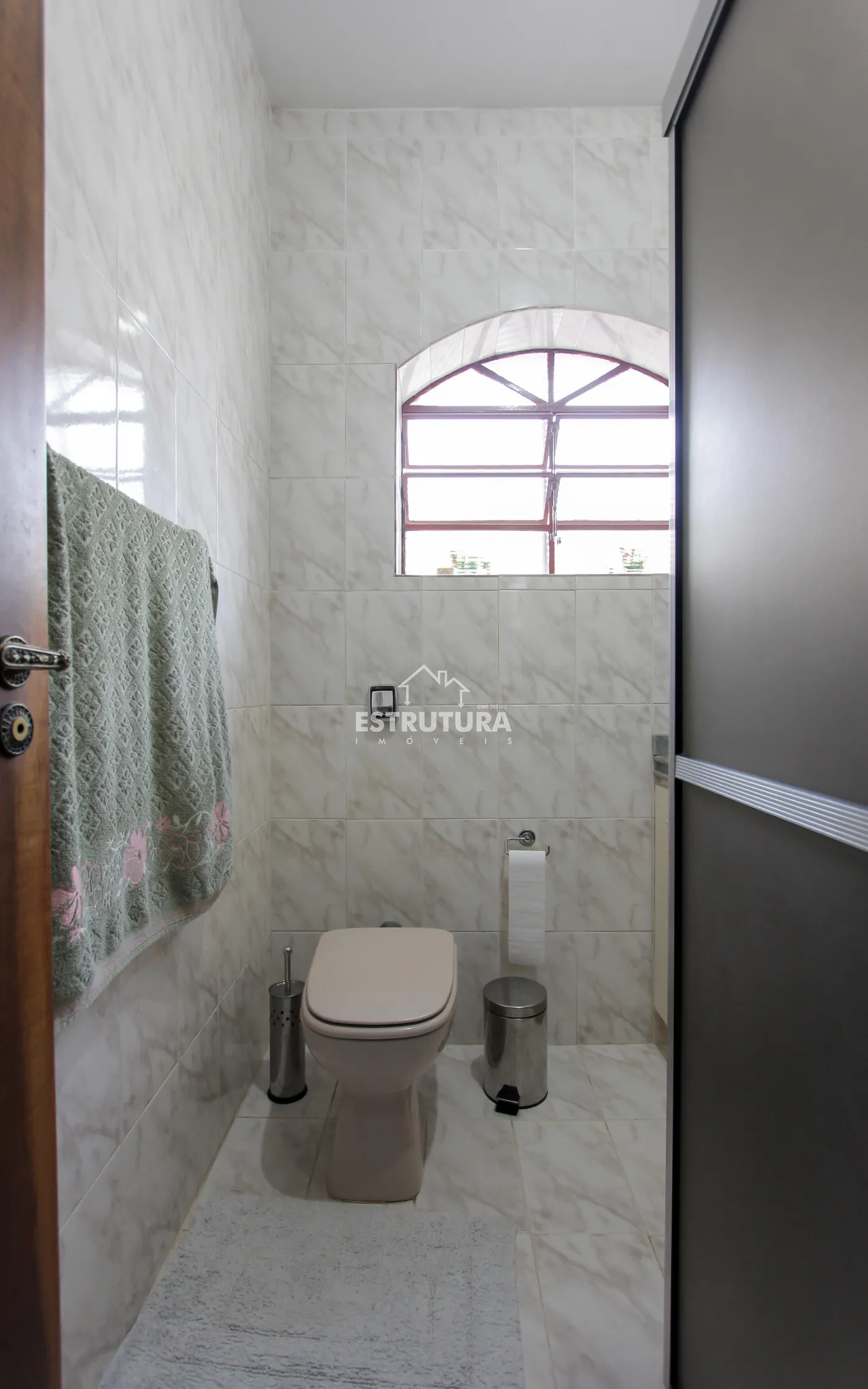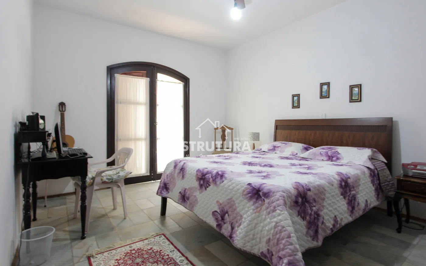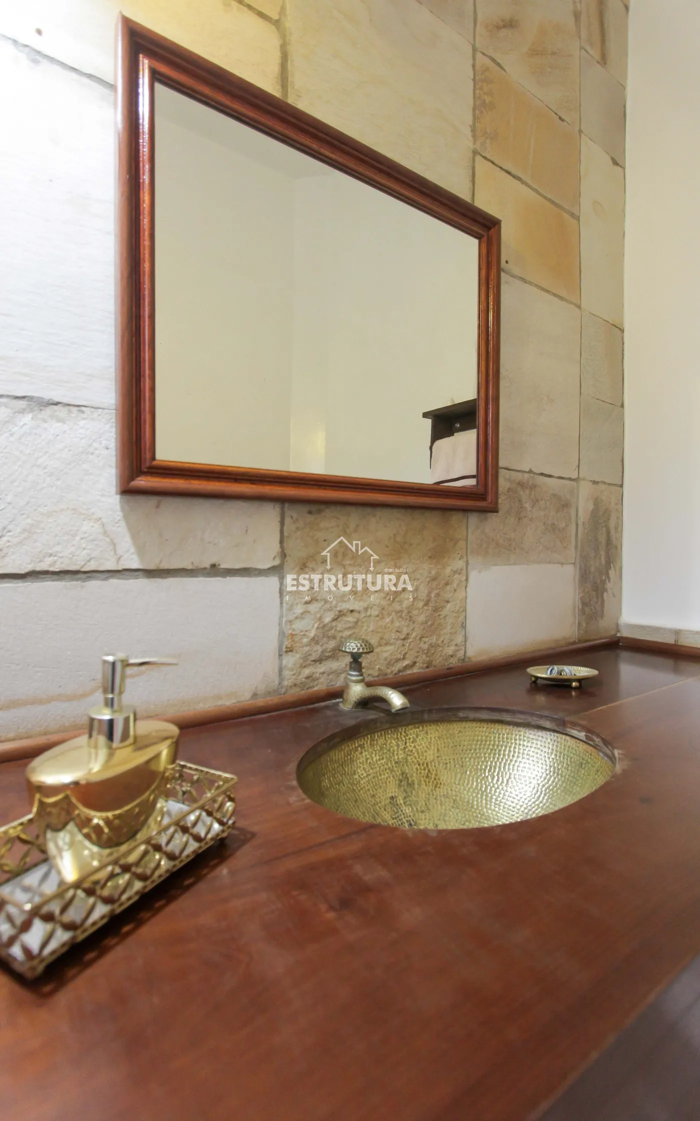 Casa de esquina, construída com tijolinhos, jardim com entrada social, garagem com portão eletrônico coberta para 02 veículos, sala com três ambientes com portas balcão em madeira, piso elevado em madeira para sala de jantar, restante em pedra mineira sendo sala de tv e sala de visita com lareira, maravilhoso lavabo, duas suítes com armários em madeira e portas balcão, cozinha com armários em madeira.