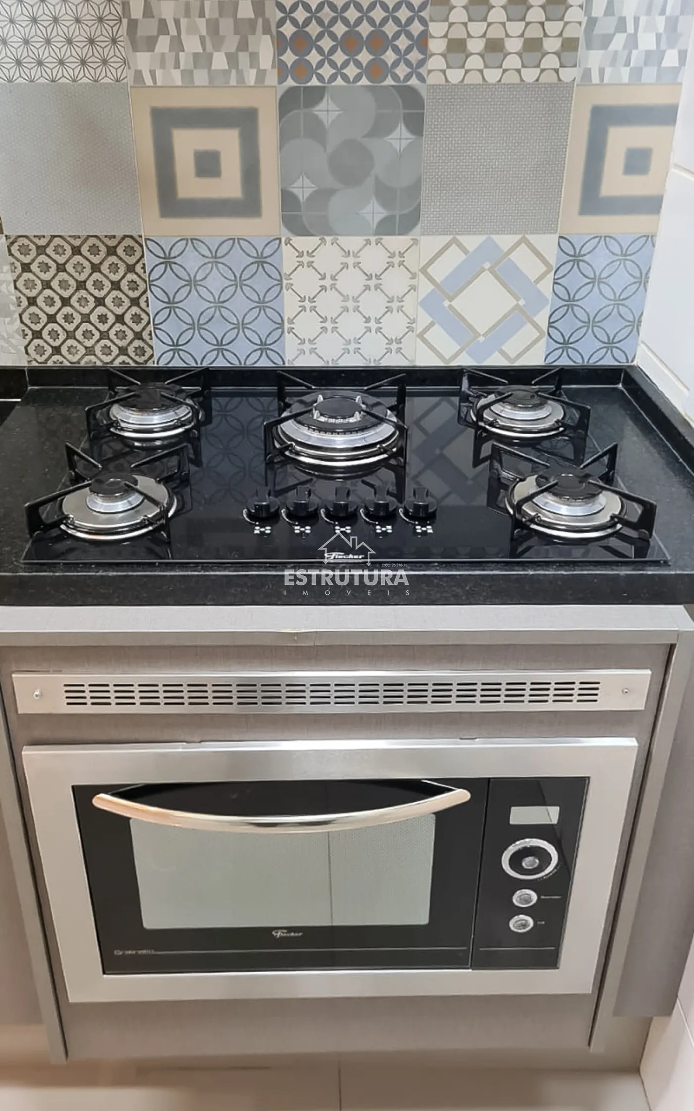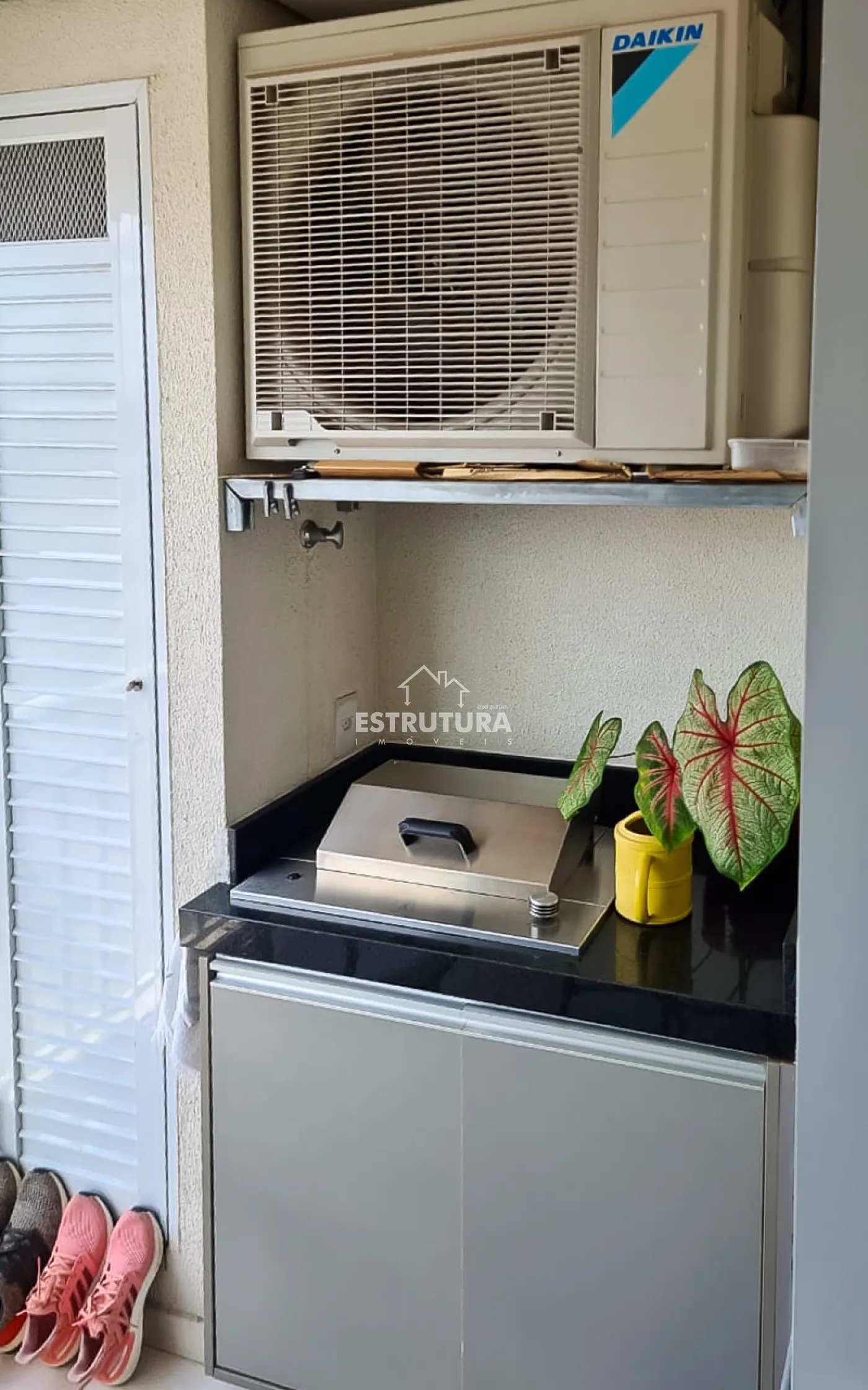 Sacada gourmet com churrasqueira a gás, chuveiros com aquecedor a gás encanado. Cozinha com cooktop, forno elétrico e coifa. Armários embutidos em todos os cômodos. Infra de ar condicionado na sala e suíte.