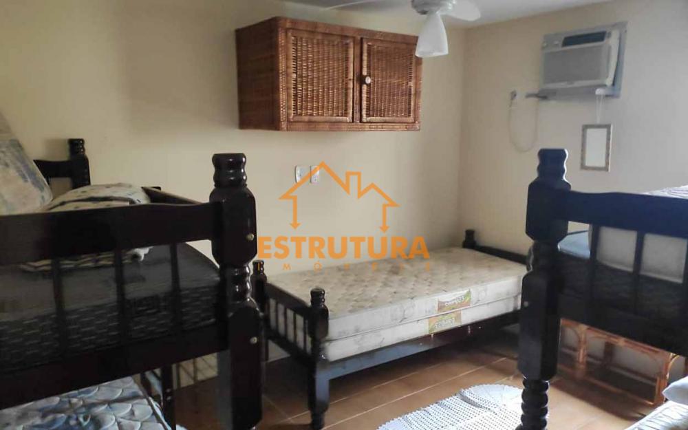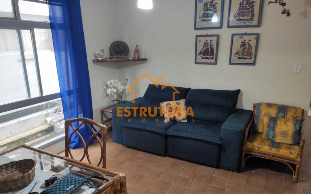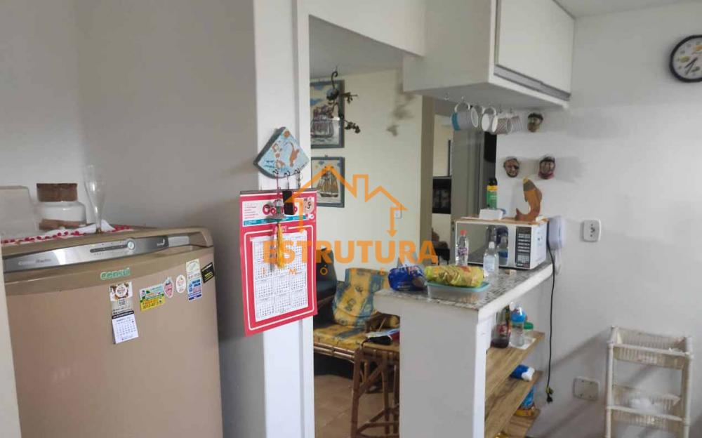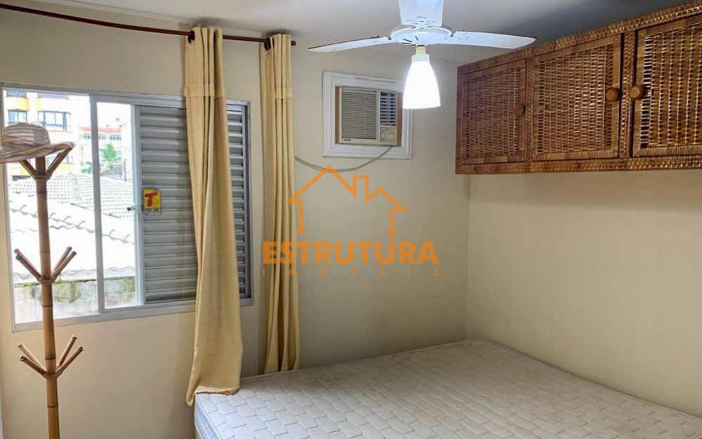 À 300 metros da praia, possui sala com ventilador, 2 quartos com ar-condicionado e ventilador, cozinha com planejados, banheiro social e 2 vagas de garagem.