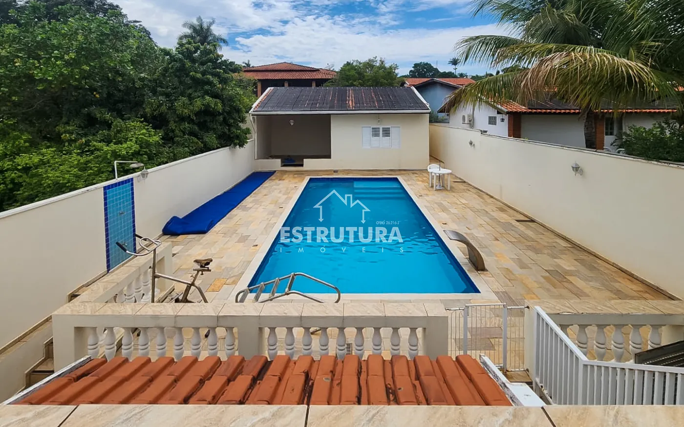 A área de lazer é um destaque à parte: piscina 4x10 metros com cascata, iluminação em LED e aquecimento solar independente, além de sistema de troca de água. O imóvel conta ainda com pomar
