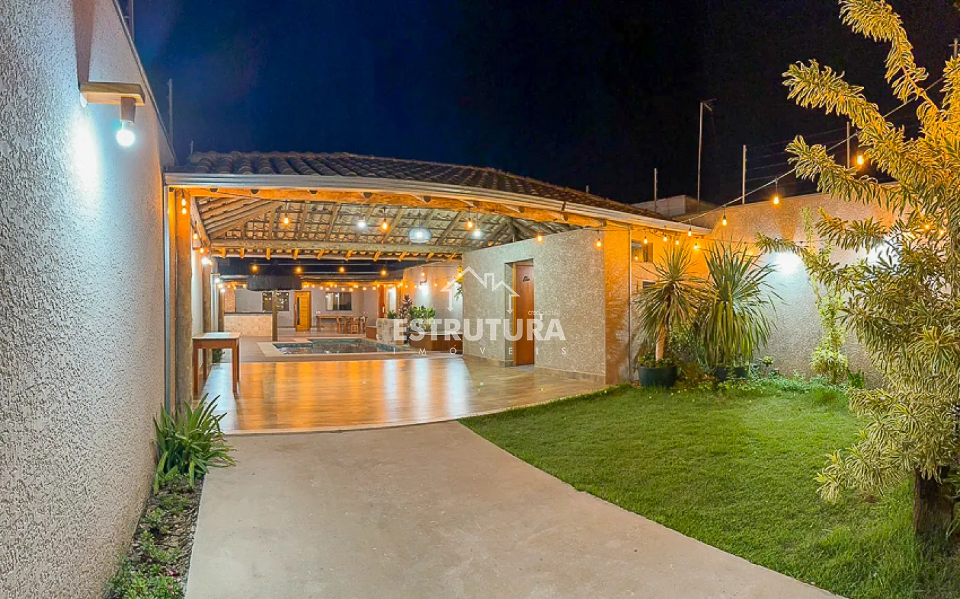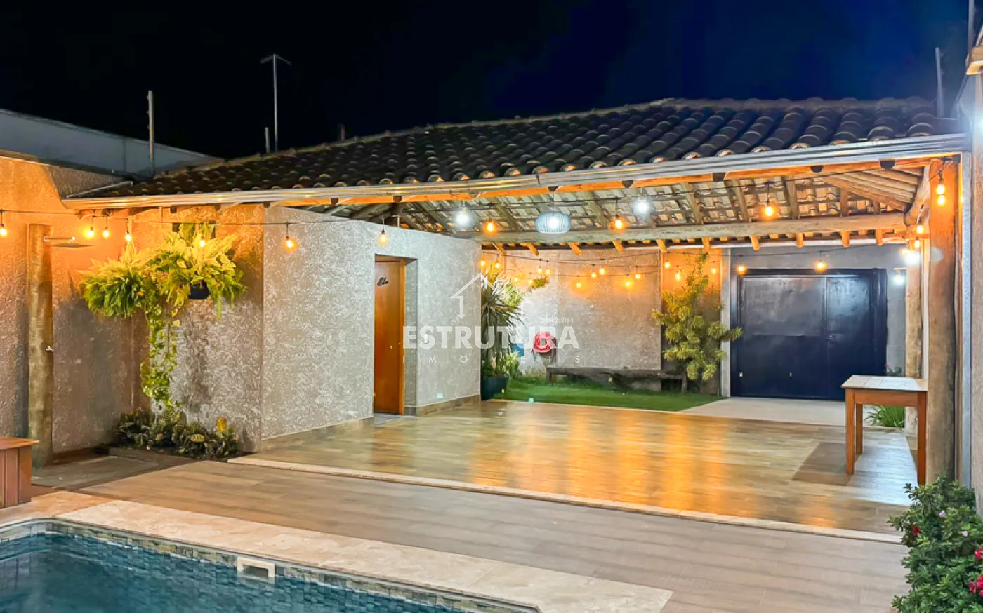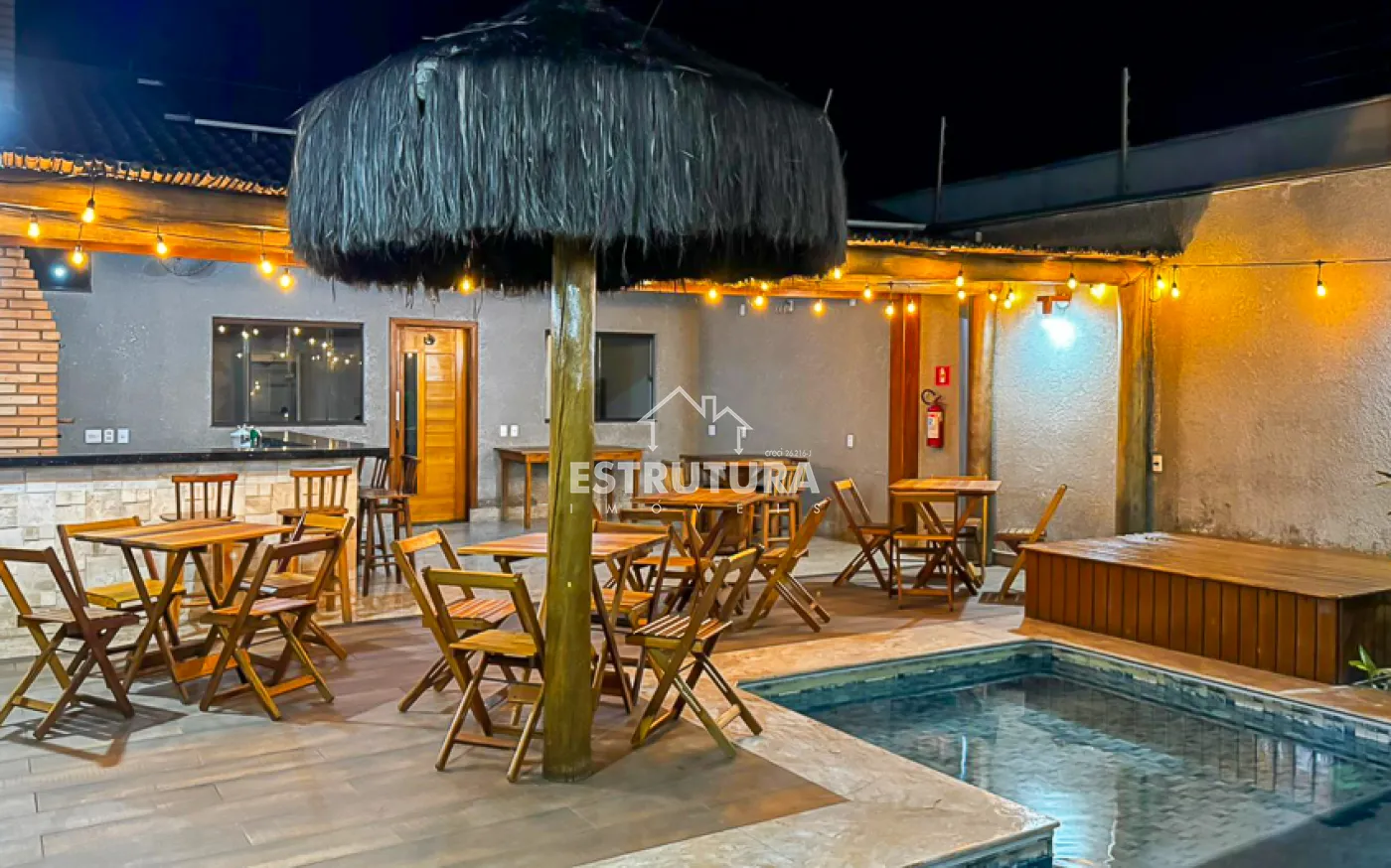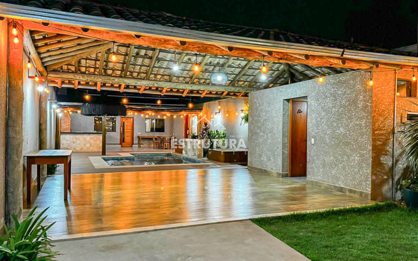 O espaço externo é perfeito para momentos de lazer, com churrasqueira equipada com forno e fogão a lenha, além de uma piscina com cascata e hidromassagem. Toda a propriedade conta com sistema de energia solar e cerca elétrica, proporcionando eficiência e segurança.