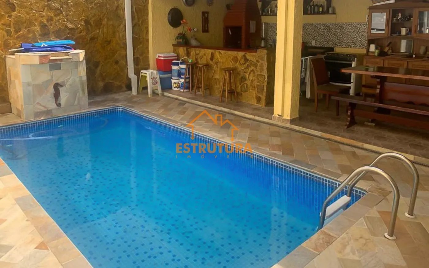 São 3 quartos, incluindo 1 suíte, para maior conforto. A área de convívio inclui uma sala de jantar e uma ampla sala de dois ambientes. Para o lazer, você poderá desfrutar de uma área externa completa, que inclui uma churrasqueira e piscina. Além disso, há uma edícula assobradada que pode ser usada como escritório. Há uma garagem espaçosa com capacidade para 3 a 4 carros. O jardim na frente da casa adiciona charme e verde ao ambiente. A casa possui 2 banheiros internos e 1 banheiro na área da churrasqueira. Dois dos quartos têm sacadas, um com vista para o jardim na frente e o outro com vista para a piscina no fundo da propriedade. A cozinha e a lavanderia são espaços funcionais que atendem às necessidades do dia a dia. Além disso, a localização é conveniente, estando próxima a uma padaria, supermercado e outros comércios locais.