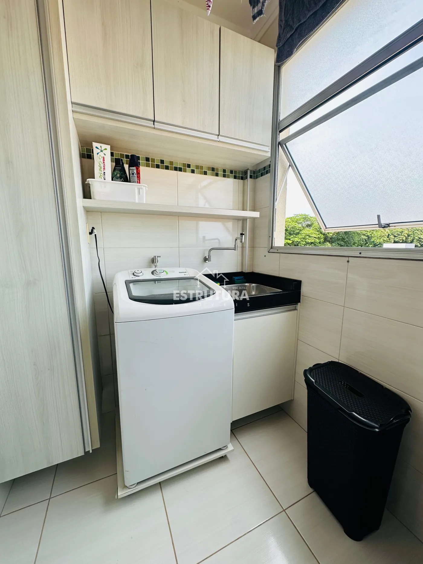 Contendo hall de entrada, cozinha com armários planejados com área de serviço e banheiro social, sala estendida, hall de circulação interno, 2 dormitórios com armários planejados, banheiro social e 1 vaga de garagem coberta.