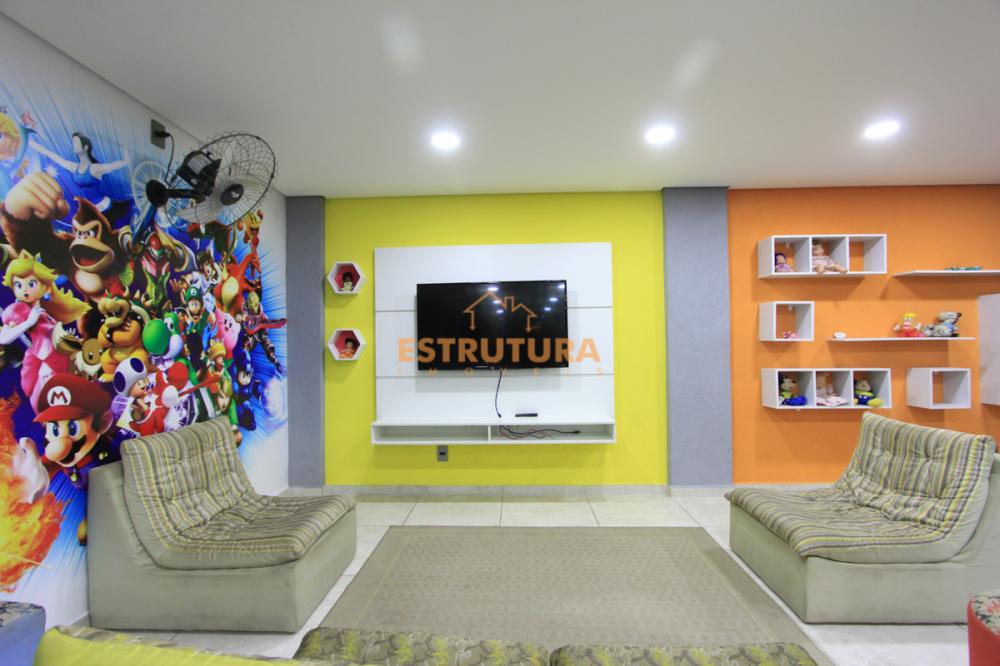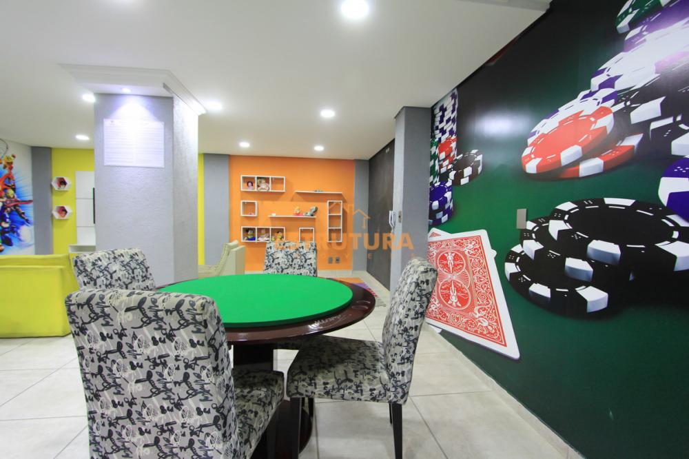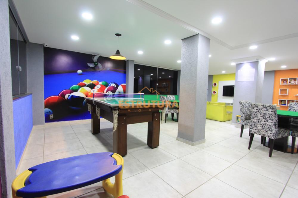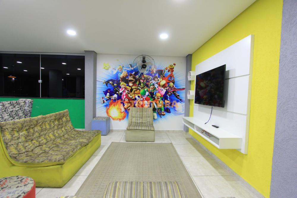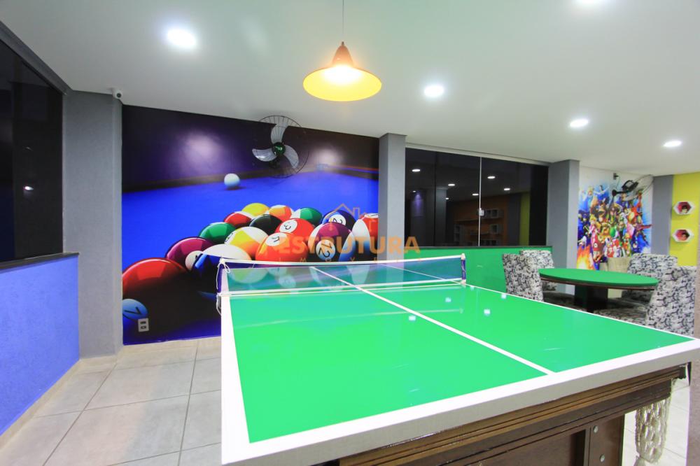 Condomínio oferece piscina, quadra de esportes, espaço gourmet, salão de festa, salão de jogos, academia e mercado.