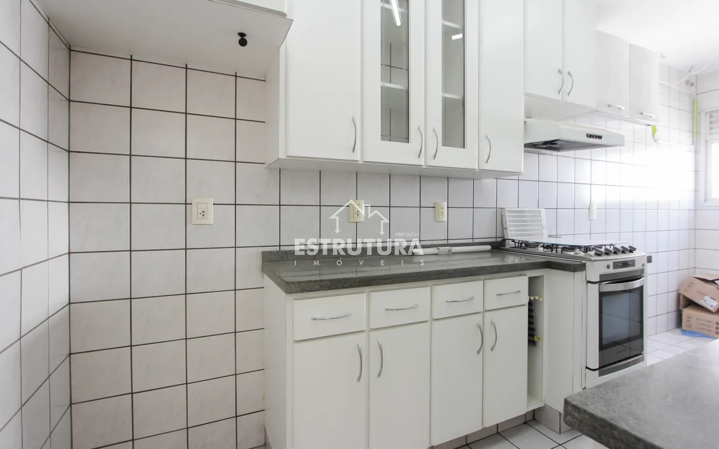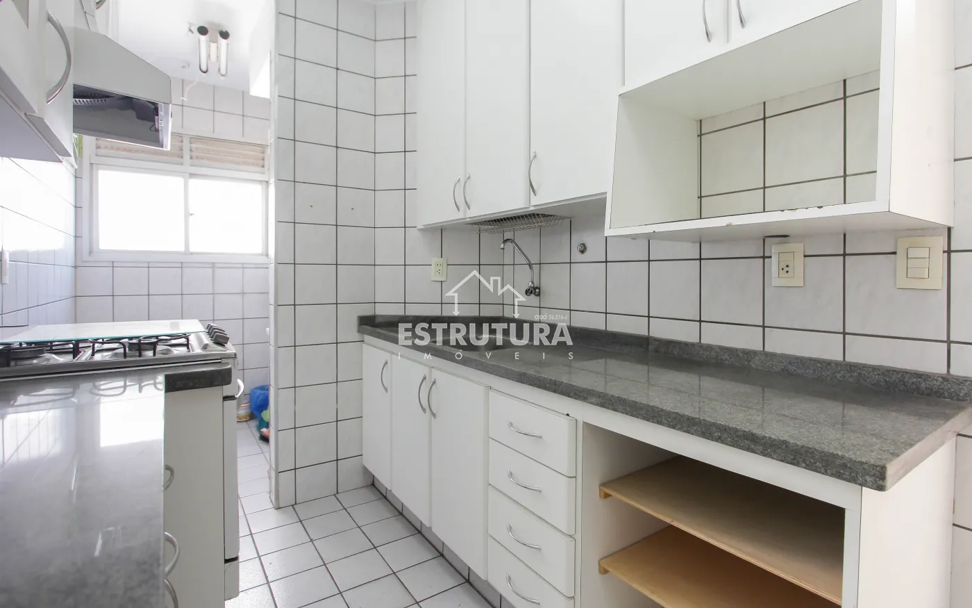 Apartamento em ótima localização, com dois dormitórios, ambos com armários, e um deles sendo suíte. A sala é espaçosa, dividida em dois ambientes, e conta com uma sacada. A cozinha, planejada, vem equipada com armários e fogão. O imóvel inclui ainda uma lavanderia e um banheiro social com box.
