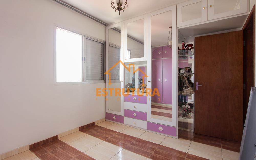 Apartamento com 1 vaga de garagem, sala, cozinha planejada com armários e mesa, 1 dormitório com 2 armários embutidos, banheiro social e área de serviço.