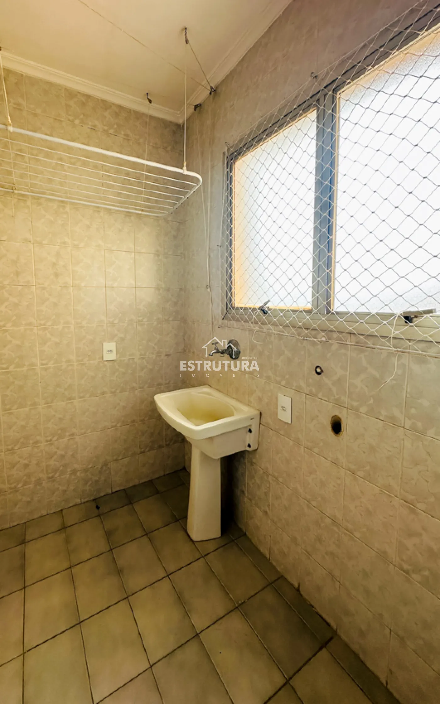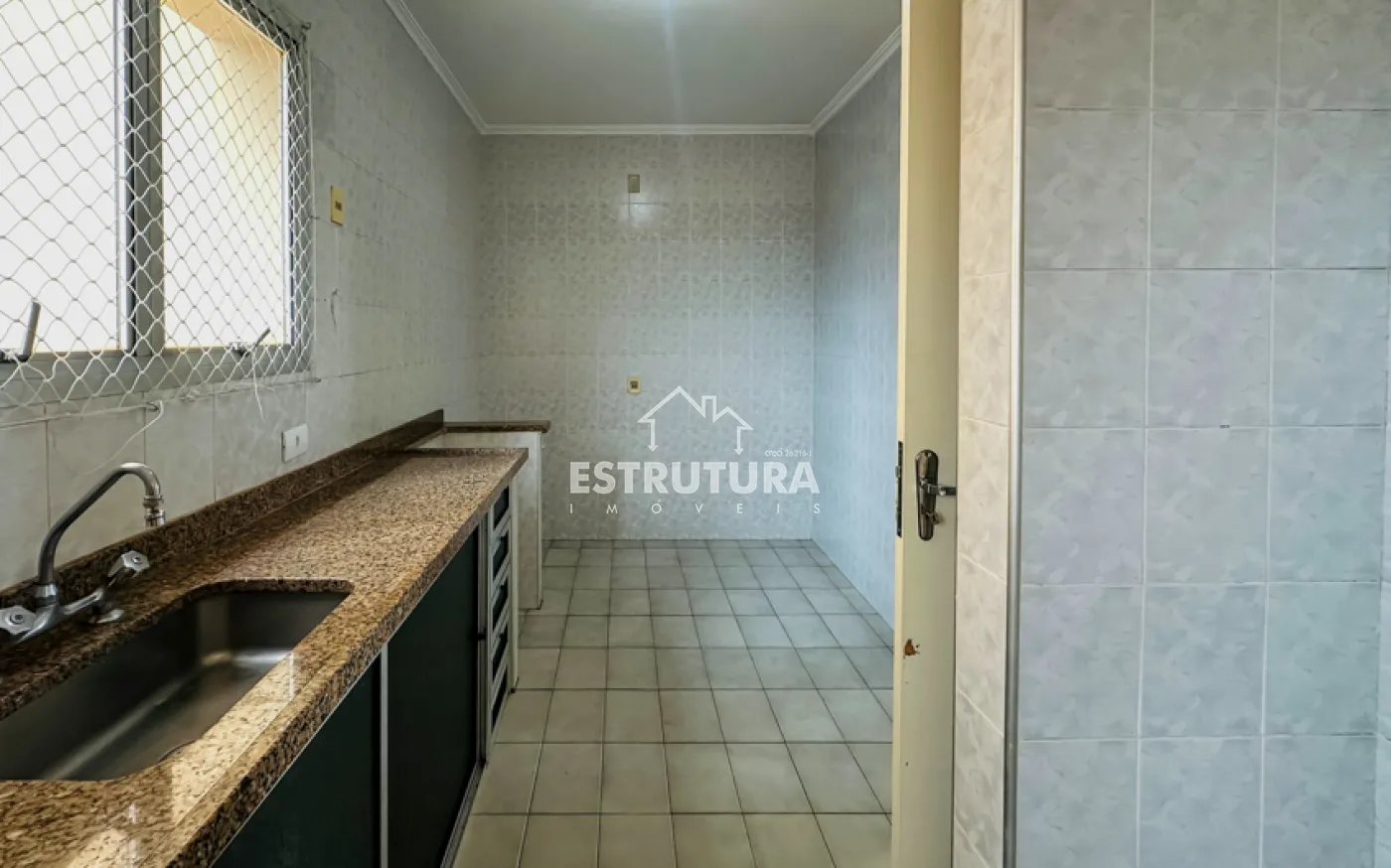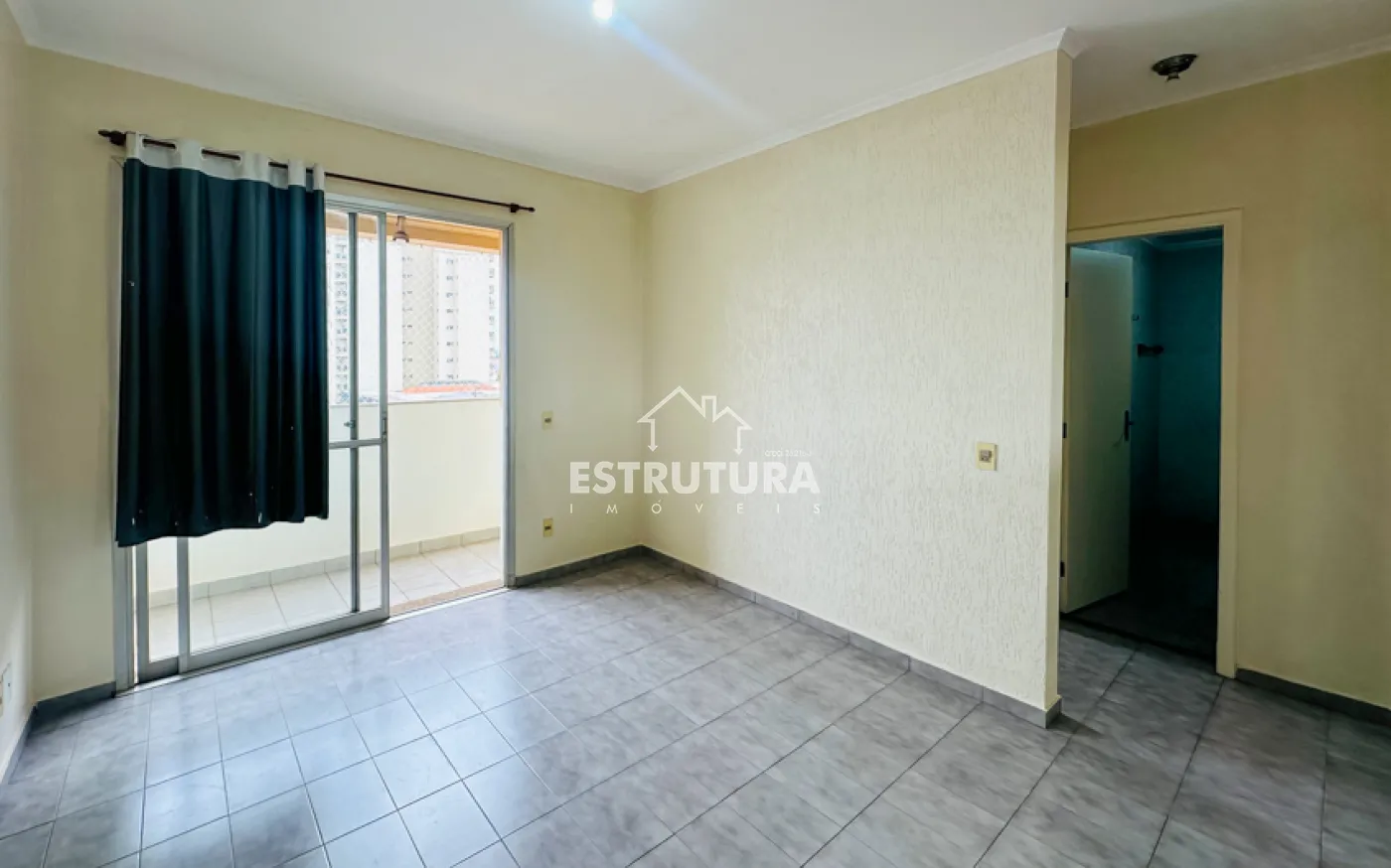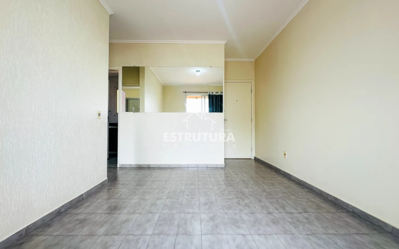 Apartamento contendo vaga coberta para 1 carro, sala com sacada, cozinha, área de serviço, banheiro social e 1 dormitório.