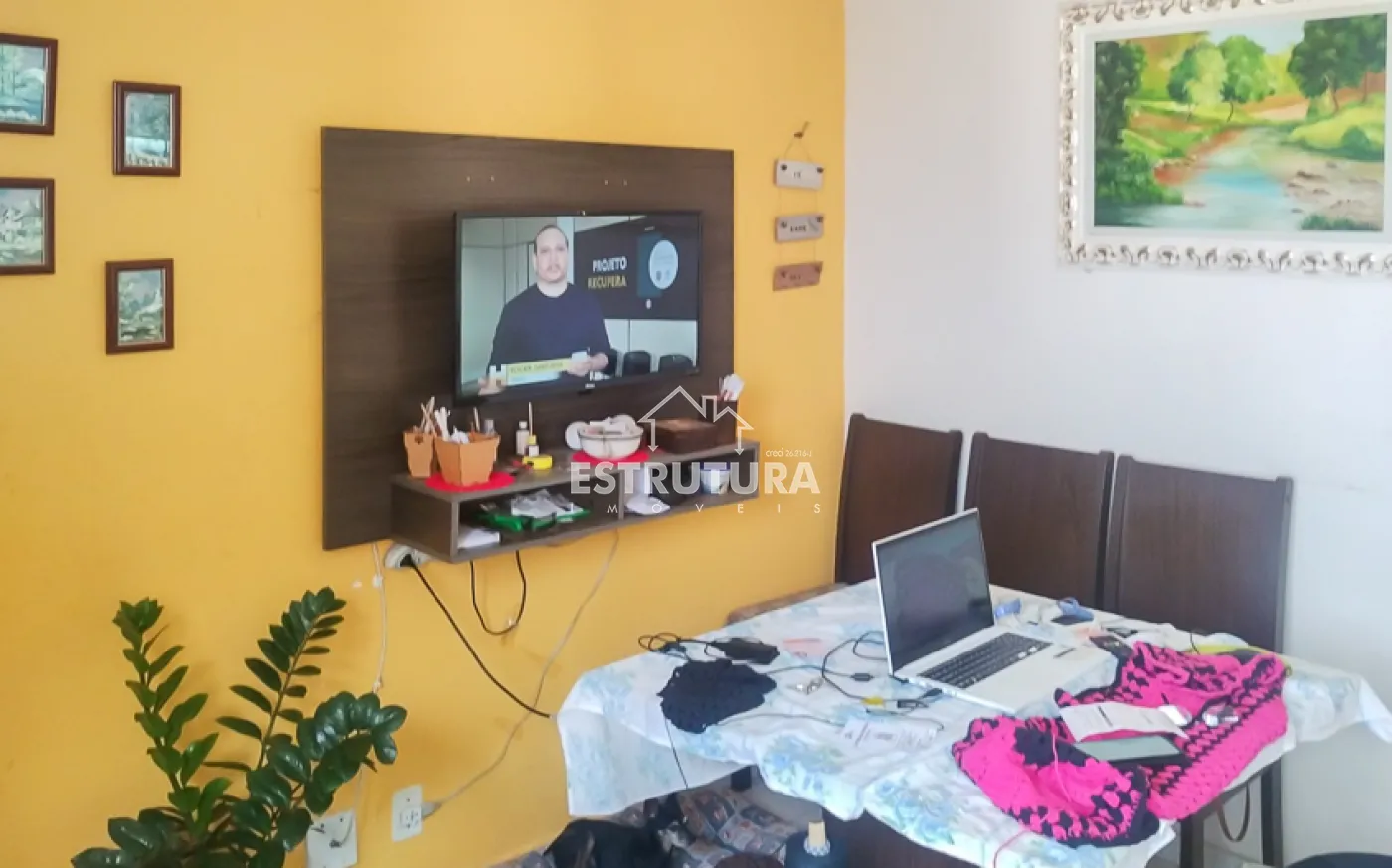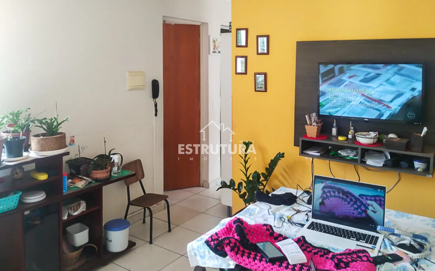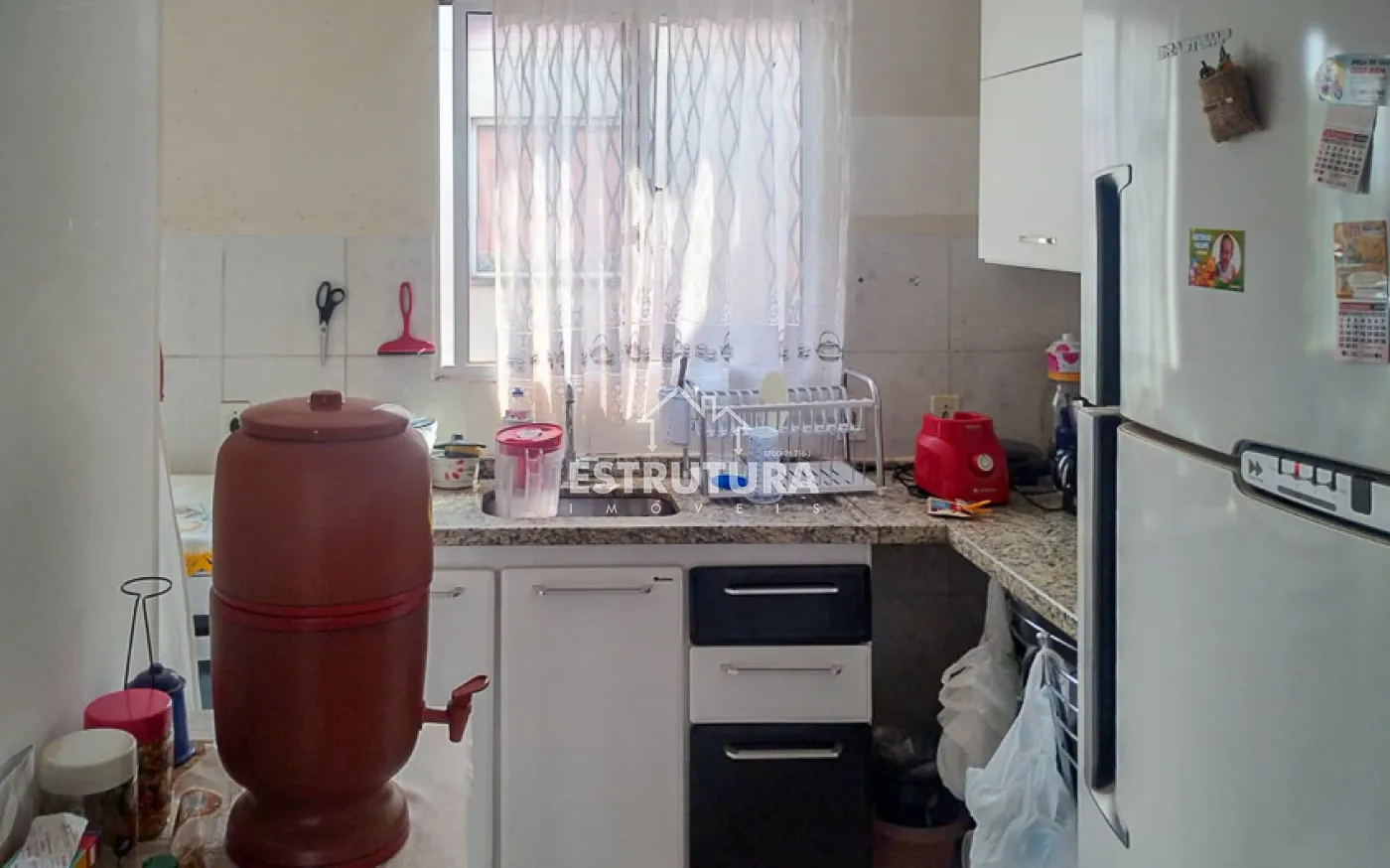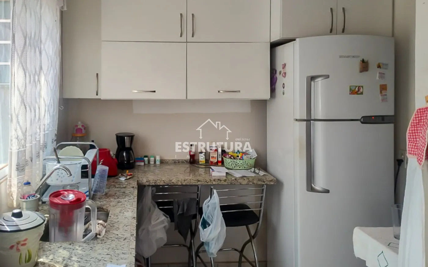 Garagem coberta para 1 carro, sala de estar e jantar integrada, 2 dormitórios, banheiro social, cozinha e lavanderia