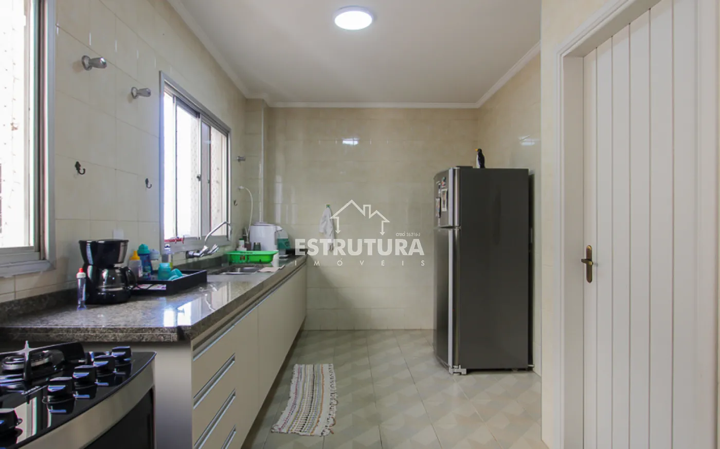 - Cozinha com armários planejados e copa funcional.