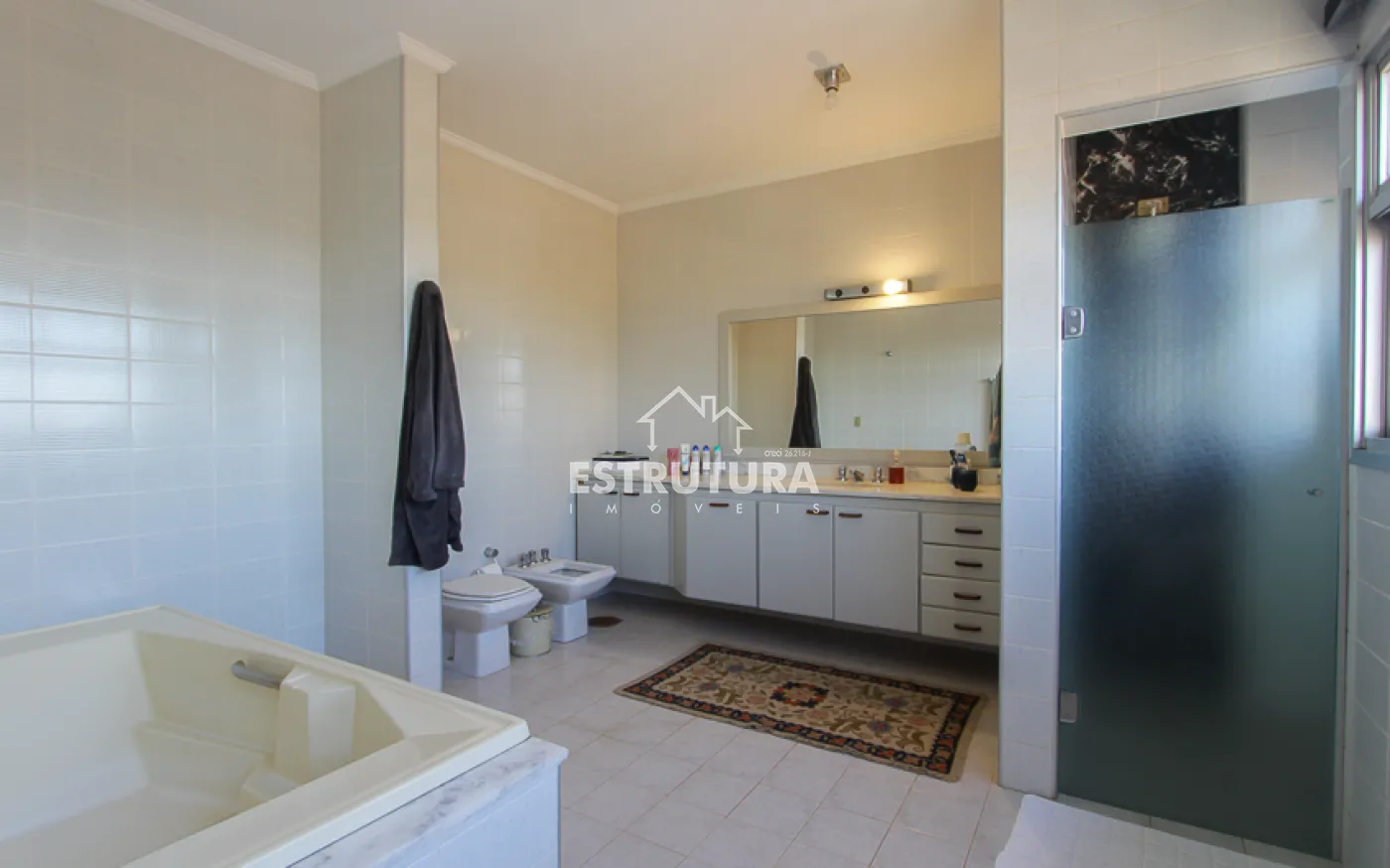 - Suíte master com banheiro generoso e banheira de hidromassagem.