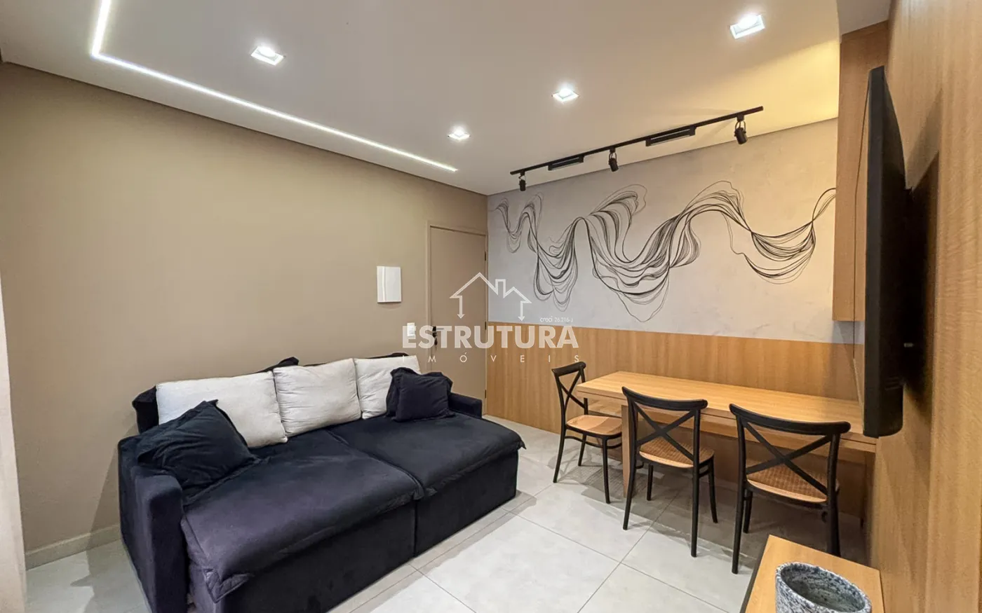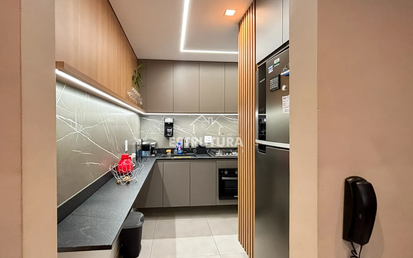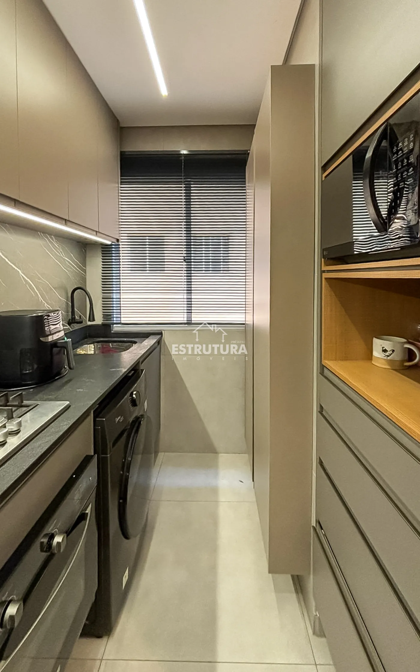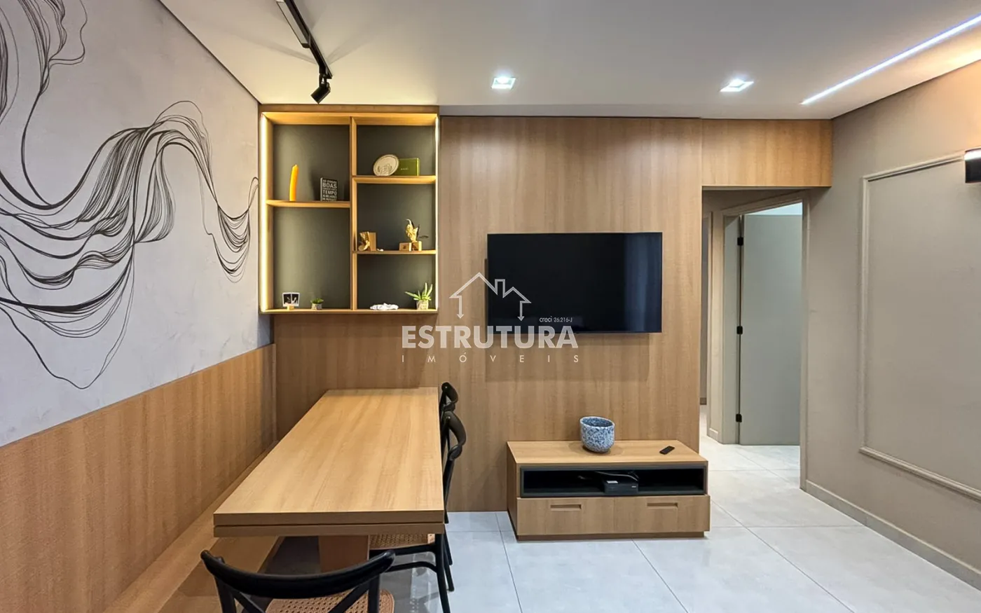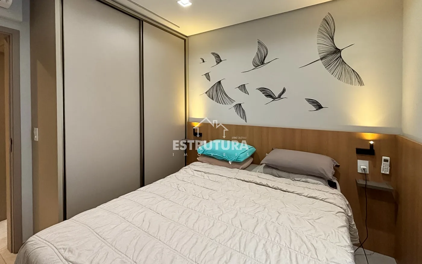 Apartamento com dois dormitorio planejados e com ar condicionado, cozinha toda planejada e com forno embutido com cook-top, area de serviço, todo piso do apartamento de 1ª , sala com painel, 1 banheiro, e garagem coberta na frente do apartamento.