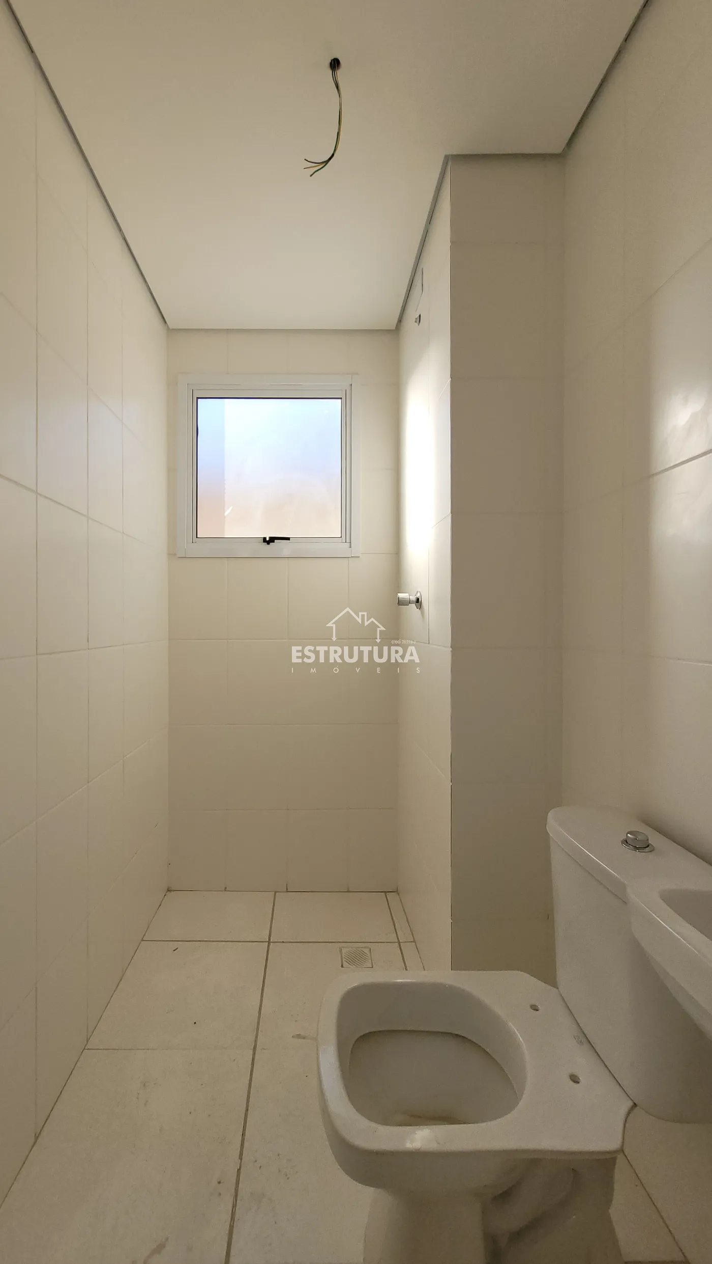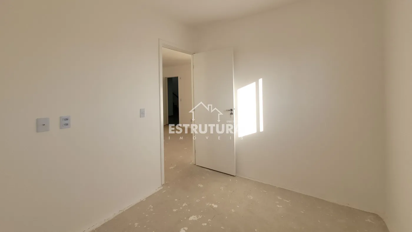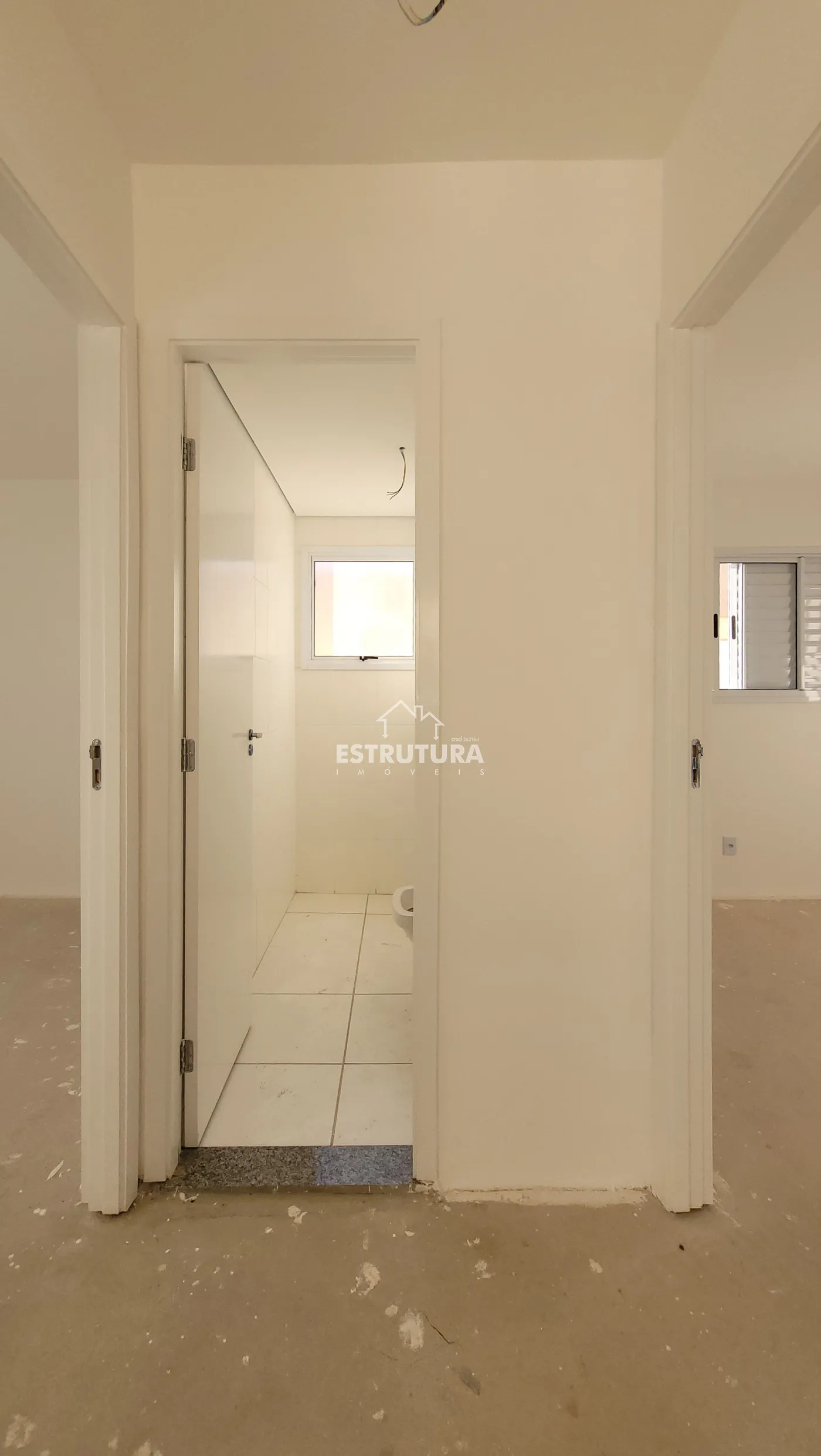 Apartamento novo com duas garagens, dois quartos, sala, cozinha e banheiro social.