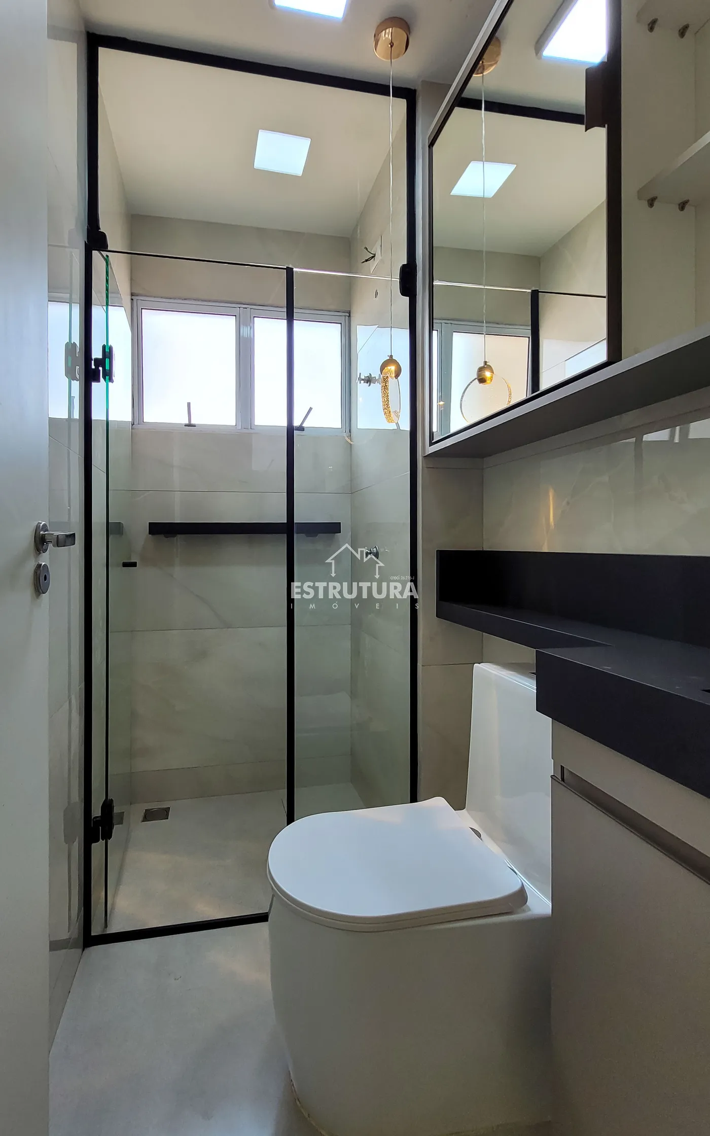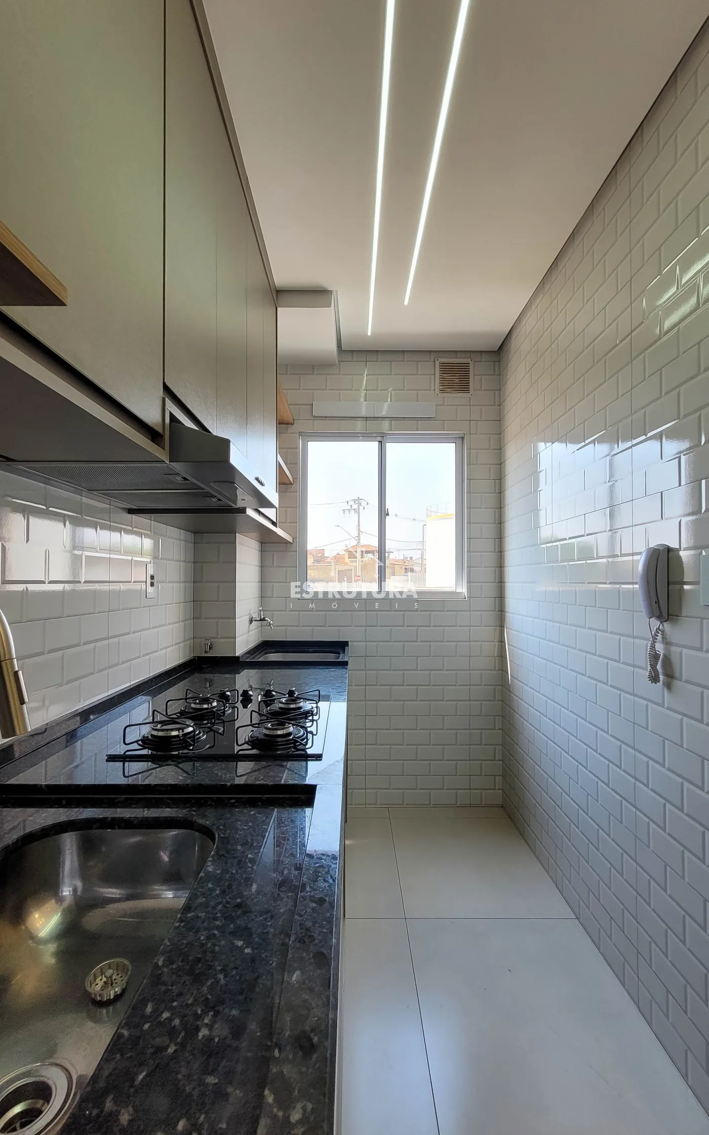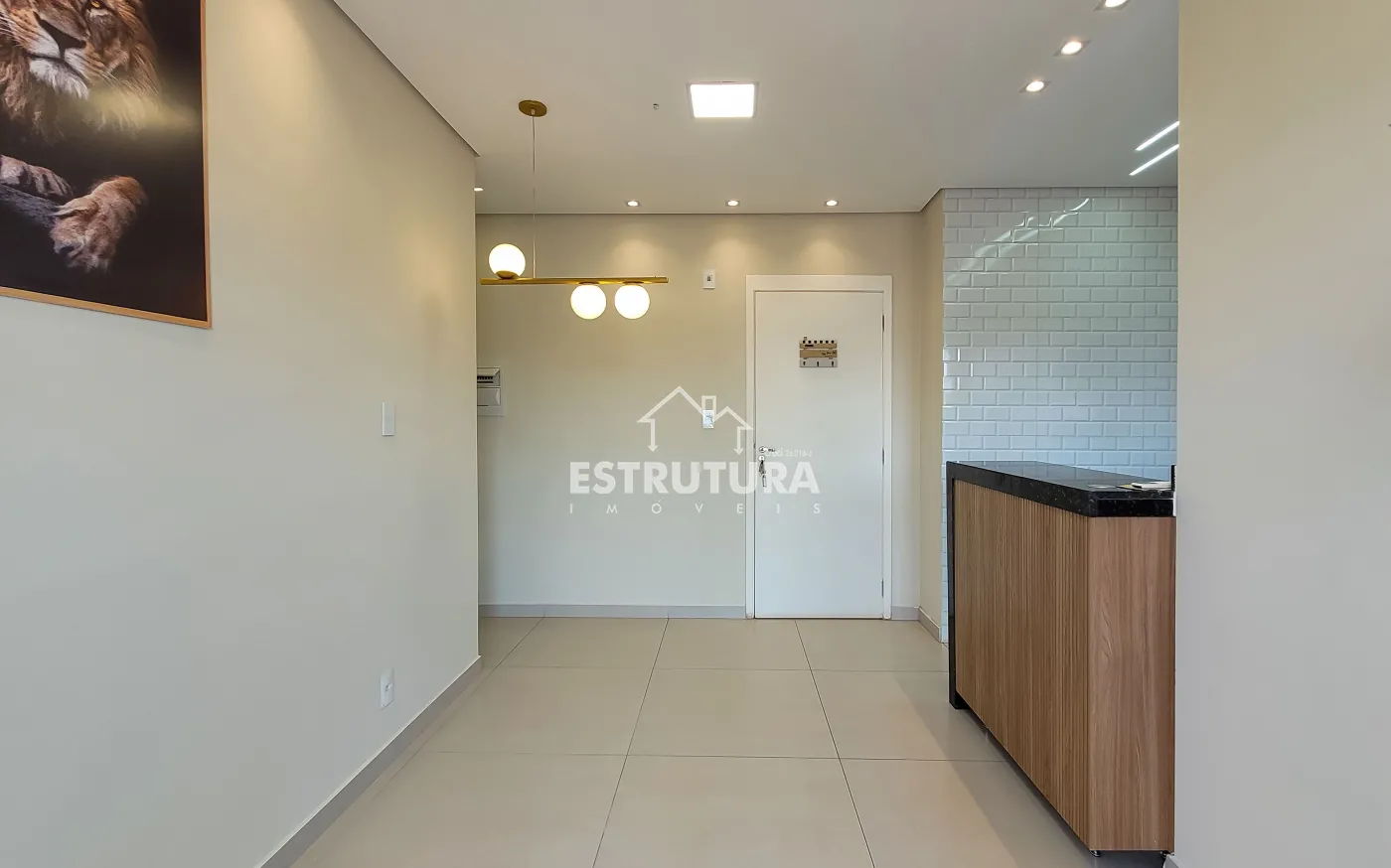 Conta com cozinha americana, sala de TV e jantar integradas, banheiro social e 2 dormitórios. Possui planejados novos na cozinha, um dormitório e banheiro, além de teto rebaixado em gesso.