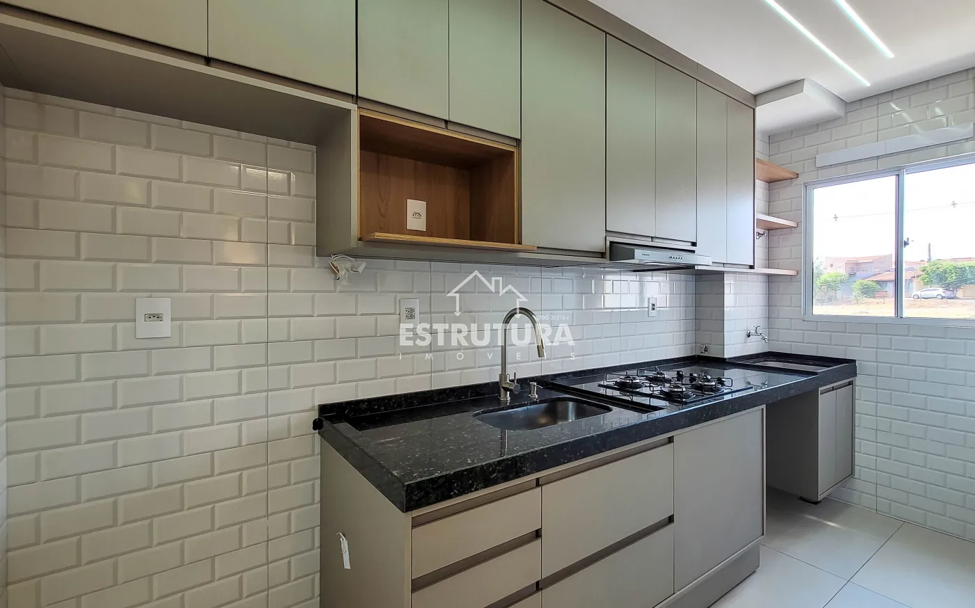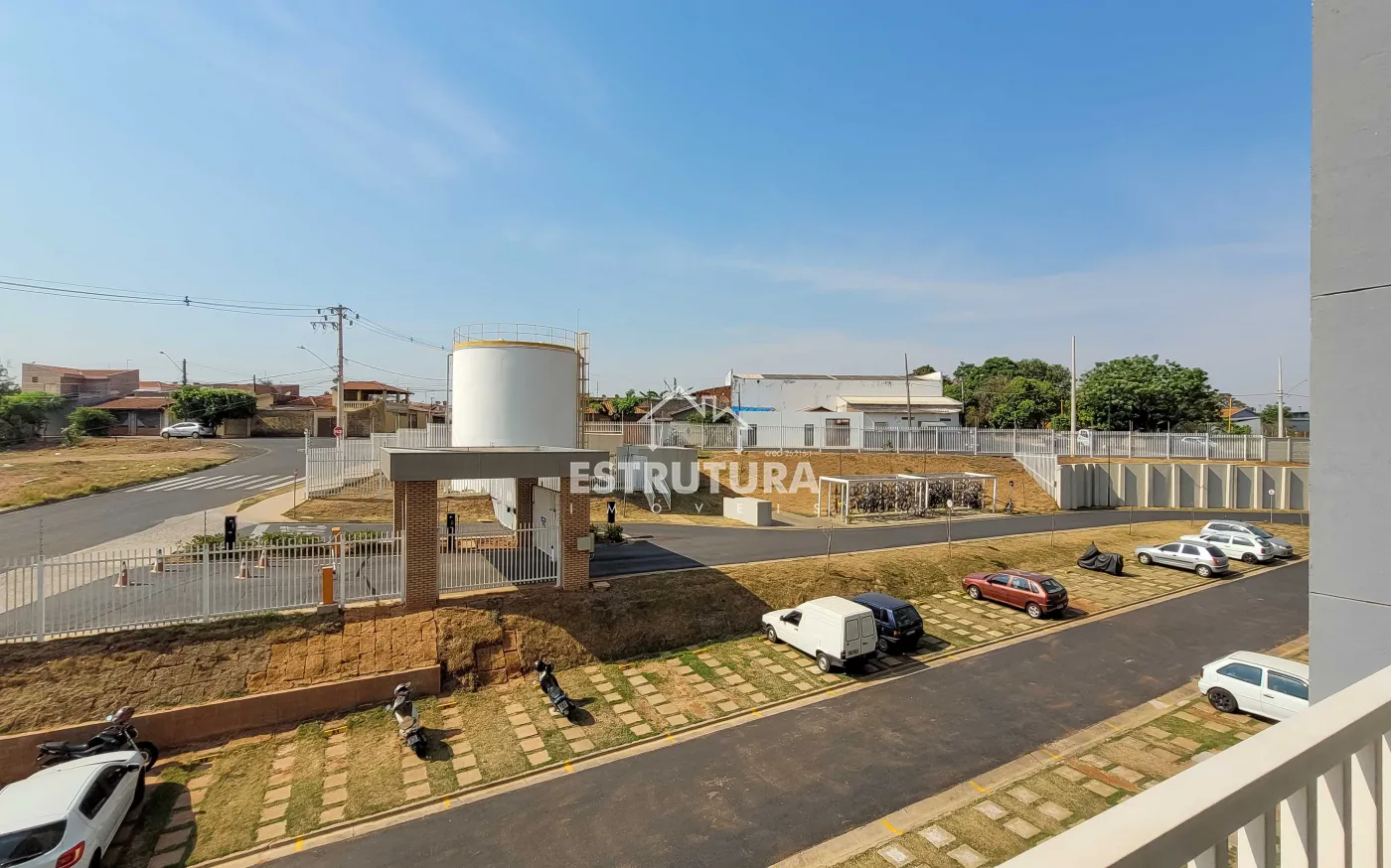O condomínio oferece área de lazer completa com piscina e salão de festas.