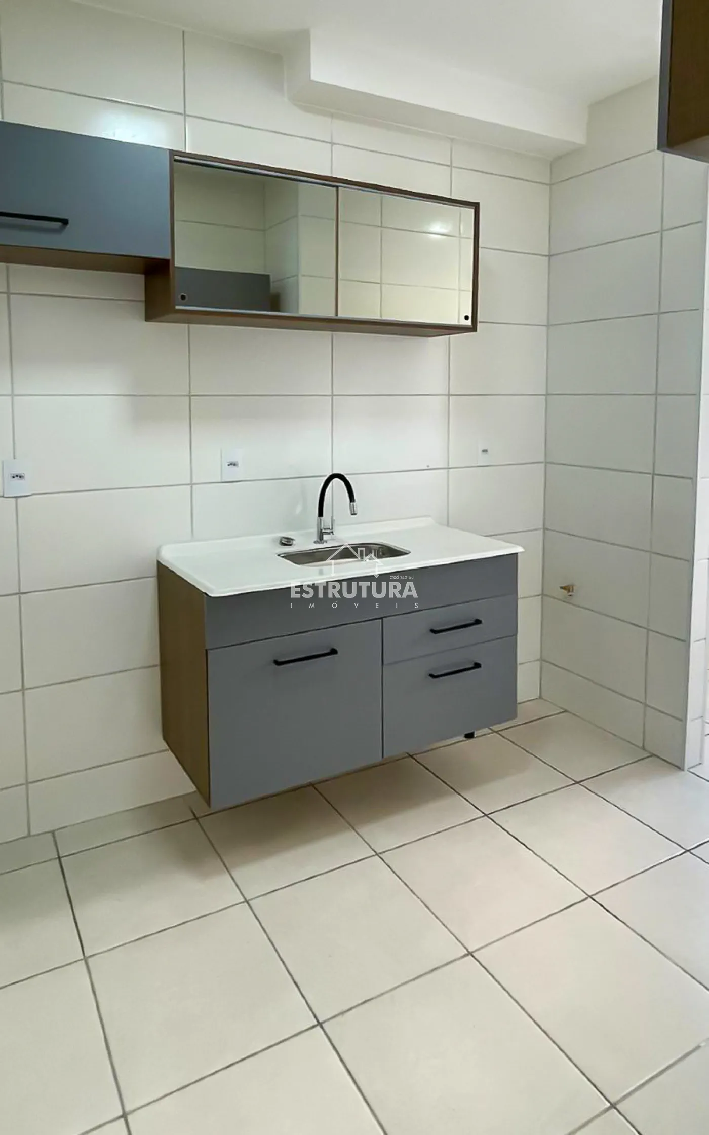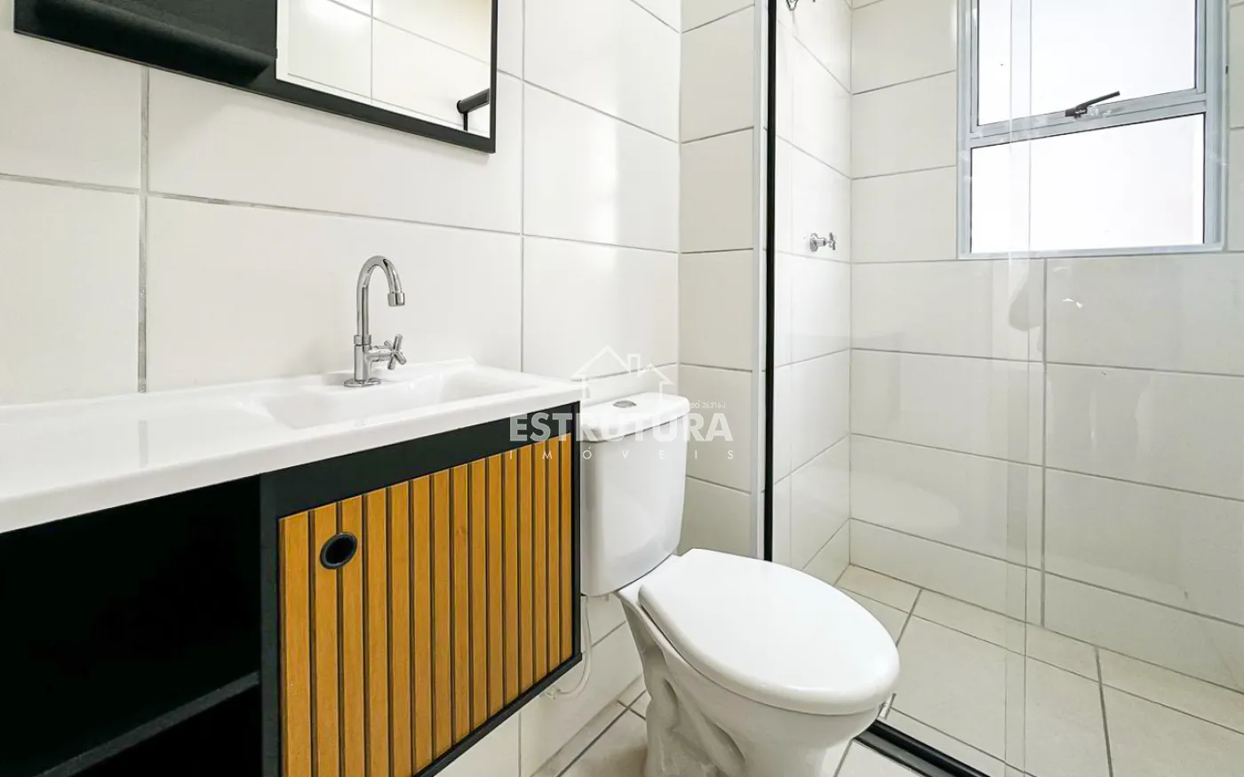São 2 dormitórios (1 deles já com ponto para ar condicionado), banheiro social com gabinete e box, sala de estar, cozinha com armários, área de serviço e sacada. Conta com 1 vaga de garagem.