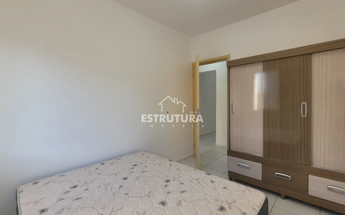 Garagem para 1 Carro bem em frente ao Bloco, 2 quartos , Banheiro com box blindex, Cozinha com armário com geladeira, fogão, microondas, 1 quarto com cama de casal e no 2 quarto um armário.