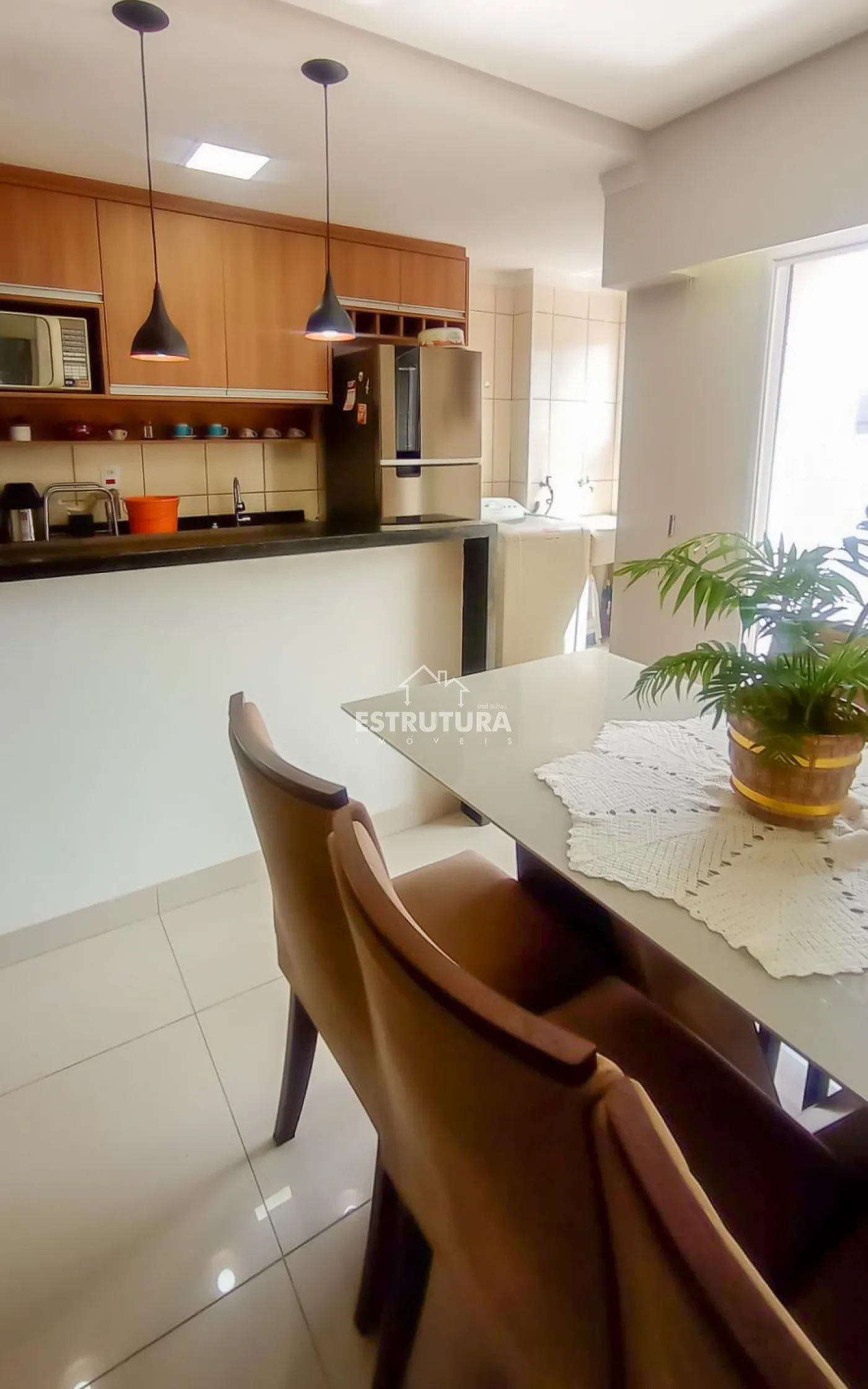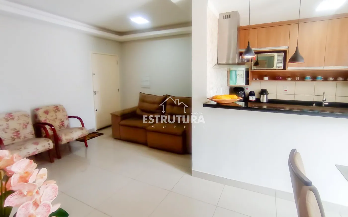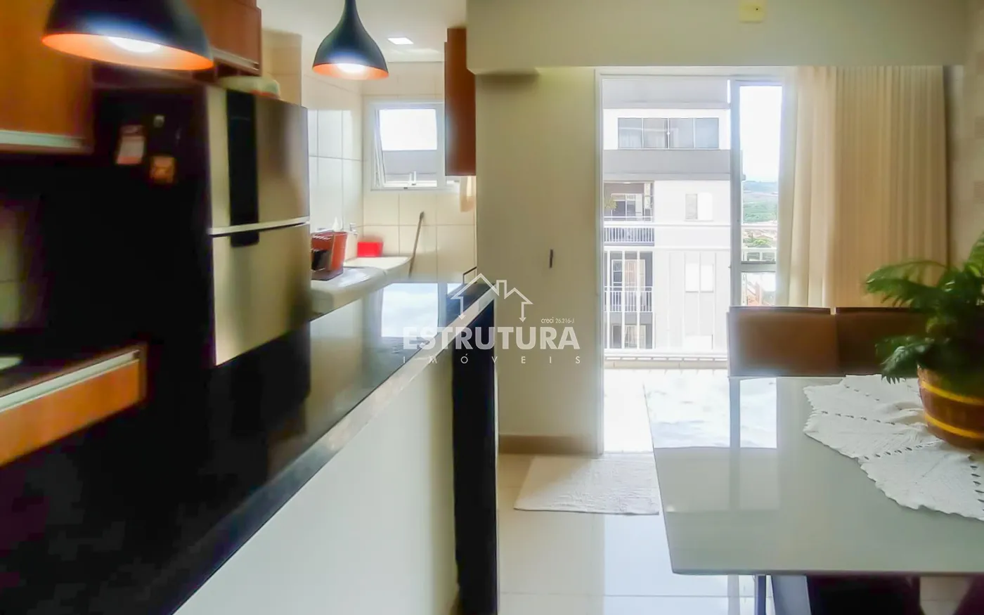 Lindo apartamento com piso porcelanato, cozinha integrada completa com armários planejados e área de serviço, 2 dormitórios e 1 banheiro social com box blindex e gabinete. Sala de estar decorada com um painel planejado de televisão e um hack que se estende a uma porta de correr, com o objetivo de dar privacidade aos cômodos íntimos, varanda com vista livre para a cidade.