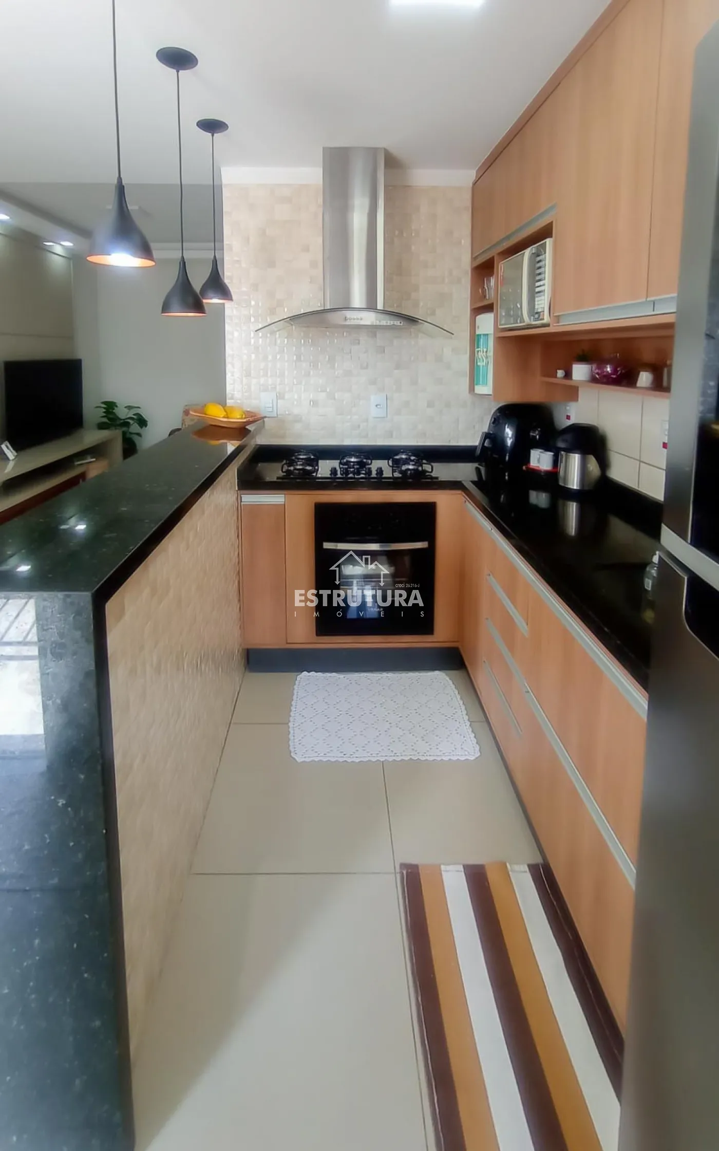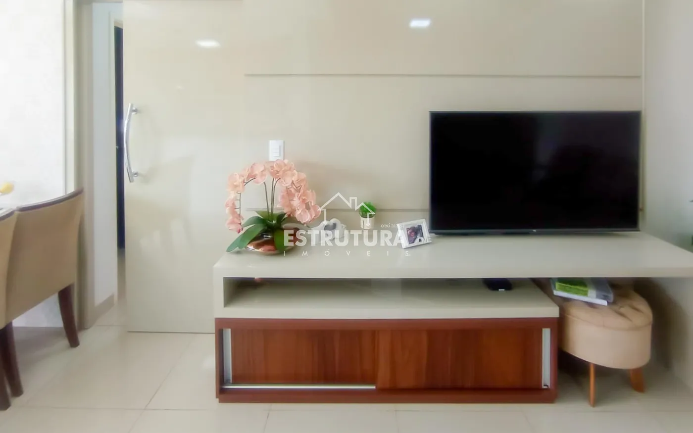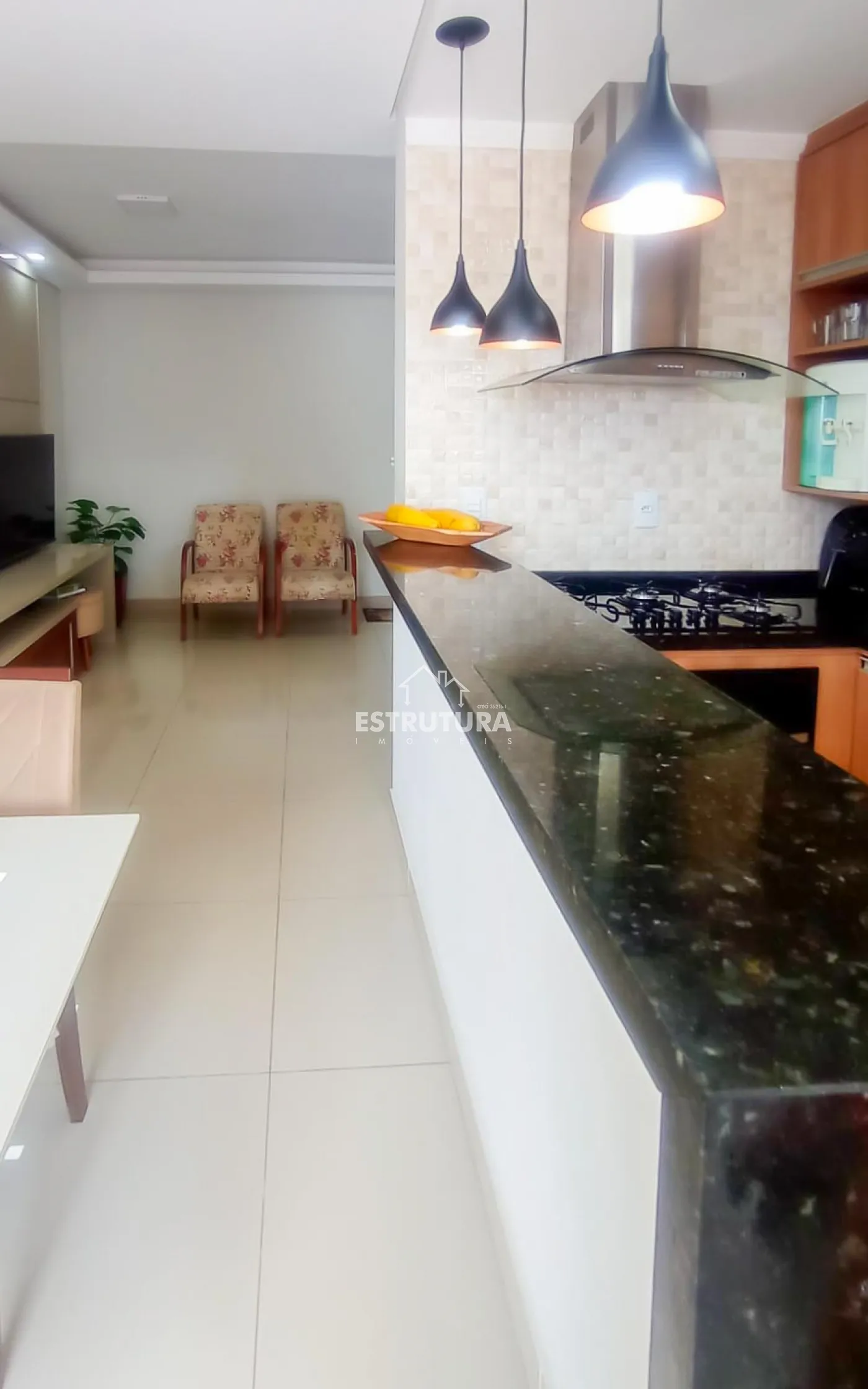 Lindo apartamento com piso porcelanato, cozinha integrada completa com armários planejados e área de serviço, 2 dormitórios e 1 banheiro social com box blindex e gabinete. Sala de estar decorada com um painel planejado de televisão e um hack que se estende a uma porta de correr, com o objetivo de dar privacidade aos cômodos íntimos, varanda com vista livre para a cidade.