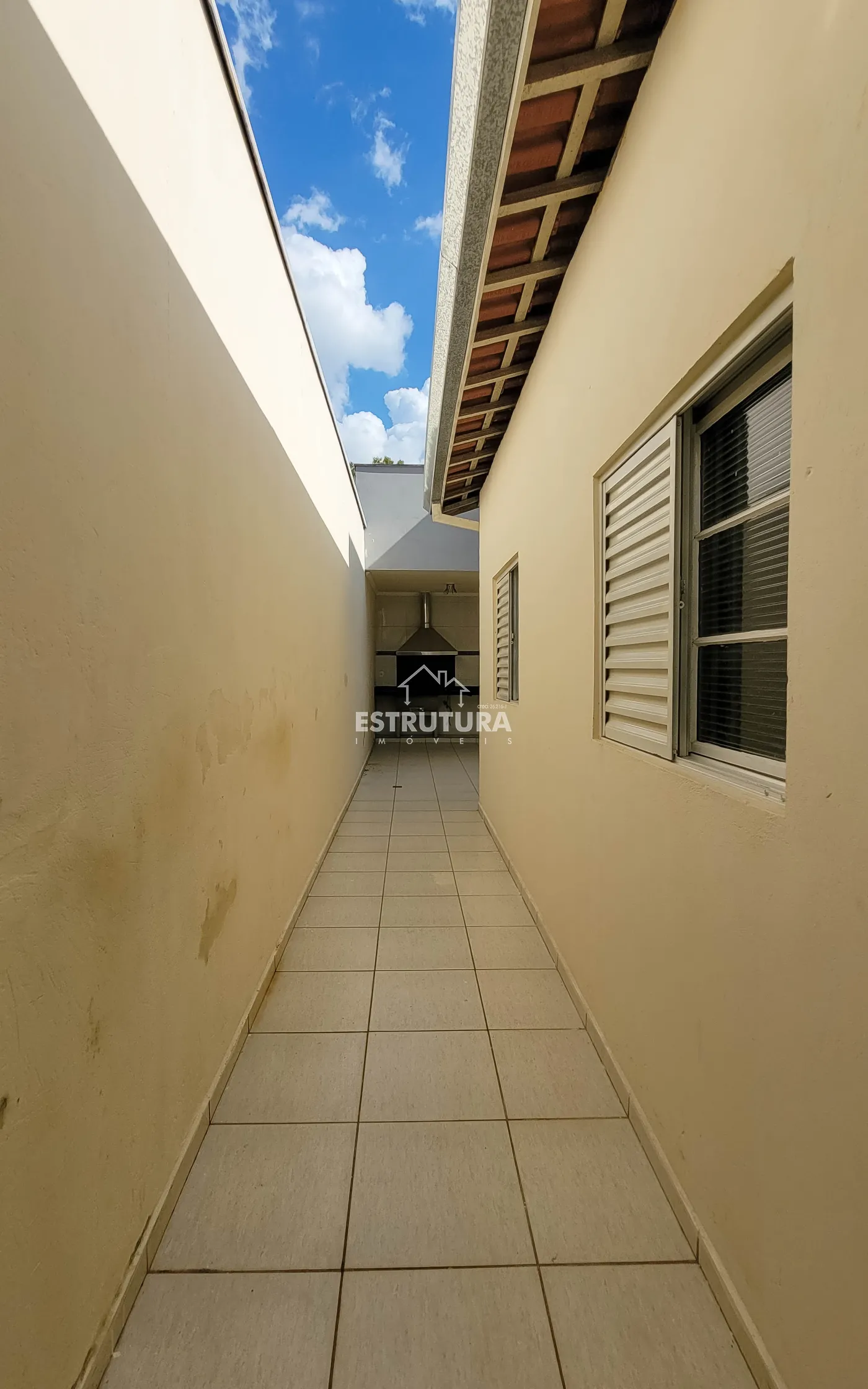Garagem para 2 carros coberto com portão eletrônico, sala de estar, sala de jantar, cozinha, banheiro social, 3 dormitórios sendo 1 suíte, lavanderia coberta, área gourmet com lavabo, e na parte superior um escritório sendo reversível para dormitório e sacada