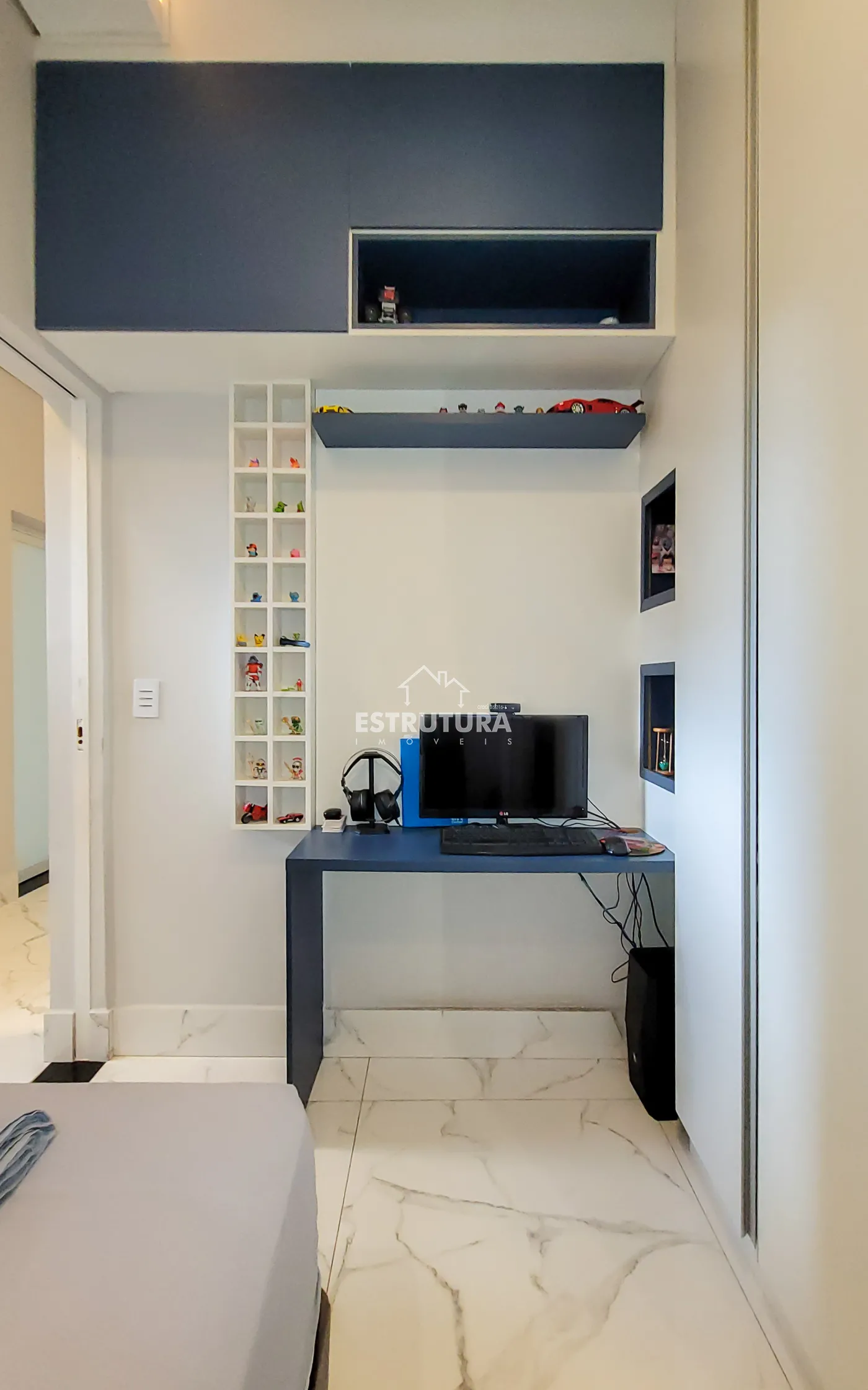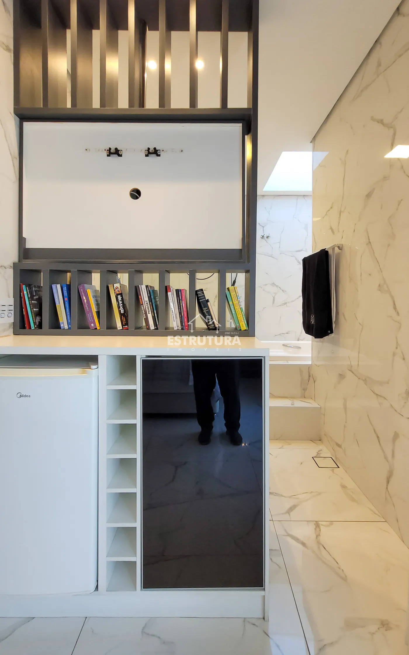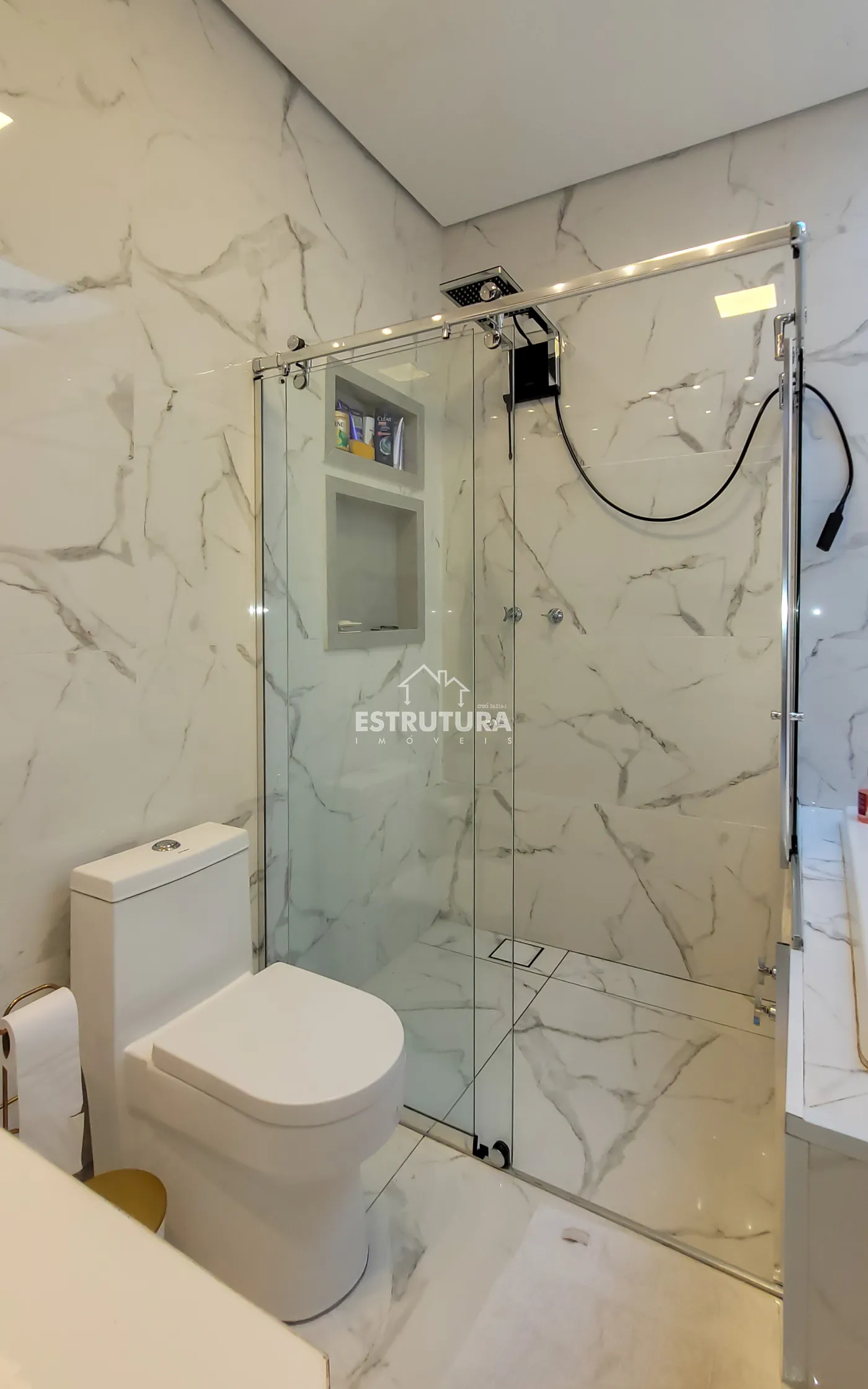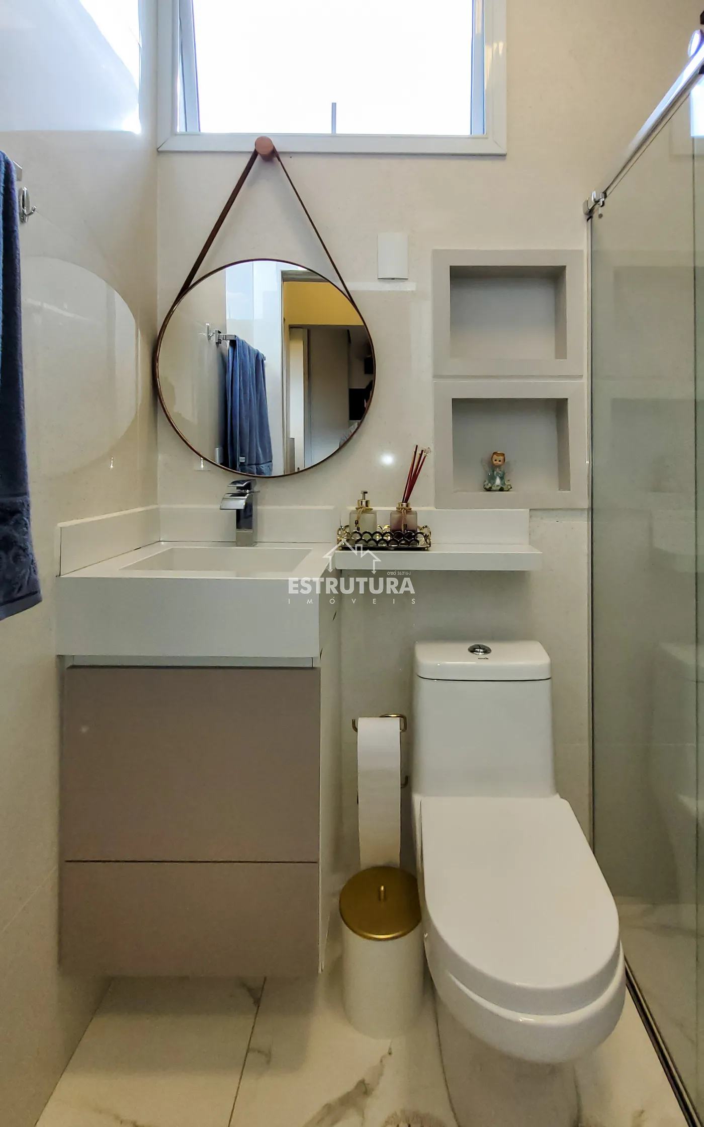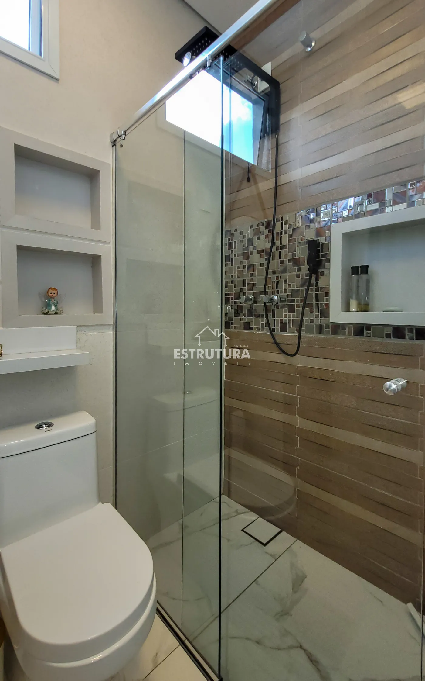 No piso superior, a suíte master com closet e hidromassagem dupla proporciona o máximo de conforto e relaxamento. Juntamente com os outros dois dormitórios com armários planejados, a casa garante uma rotina prática e acolhedora. A varanda da suíte master é um lugar ideal para relaxar e apreciar a vista ao redor.