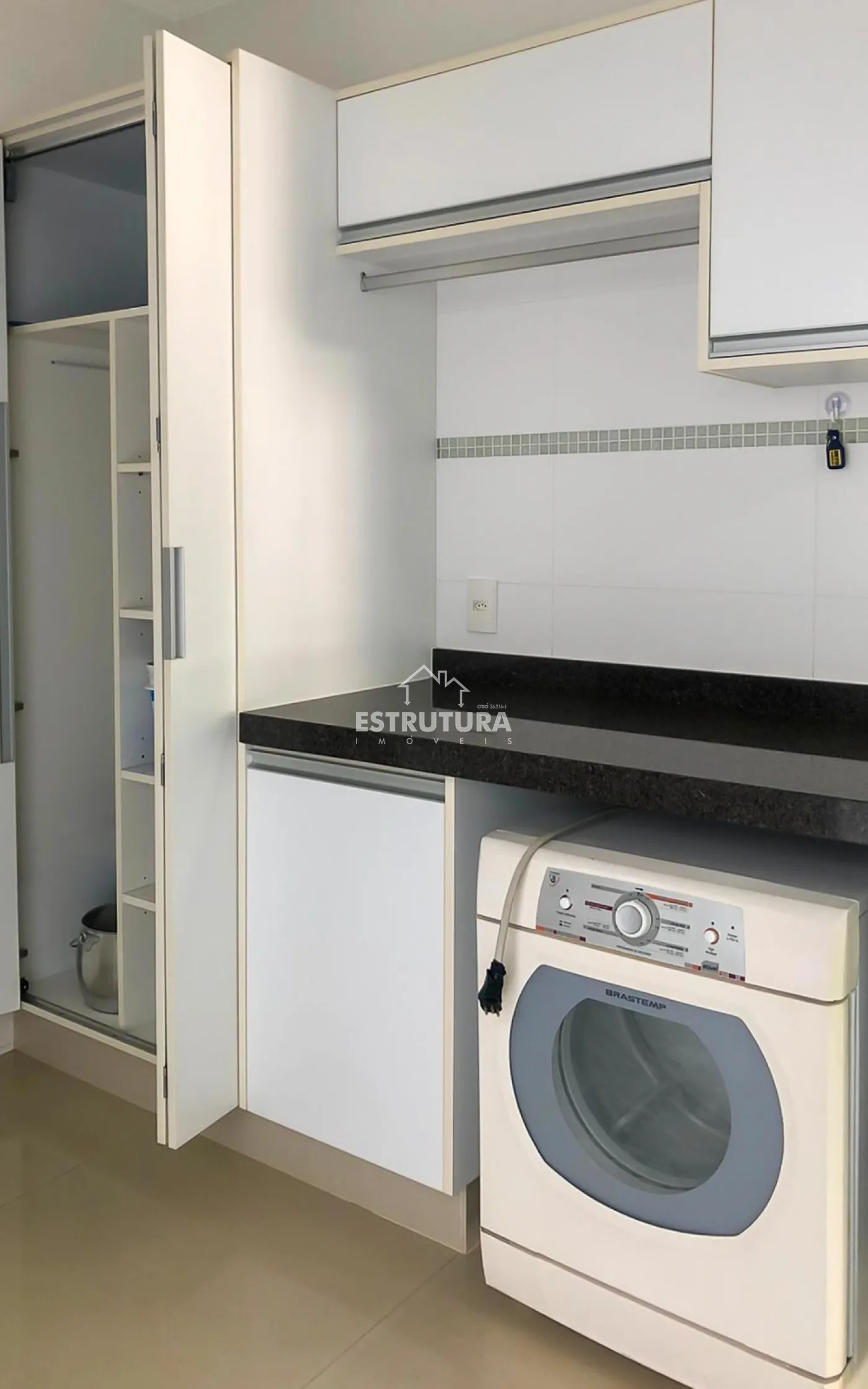 No piso superior, você encontrará um amplo hall e 3 suítes com closet, sacada (sendo 2 voltadas para a frente do imóvel e 1 com vista para a piscina), todas equipadas com ar condicionado. A área de serviço também é equipada com armários planejados.