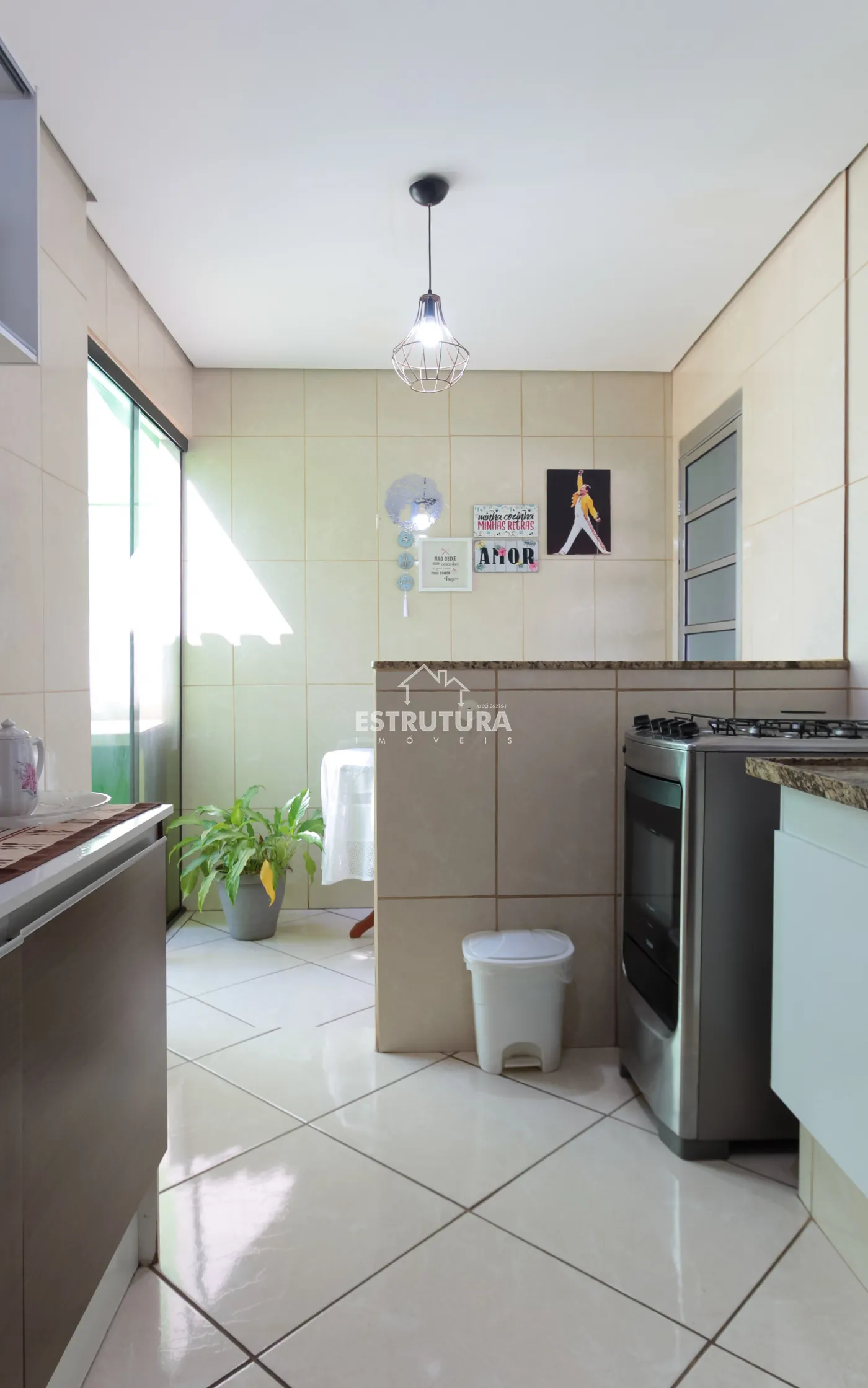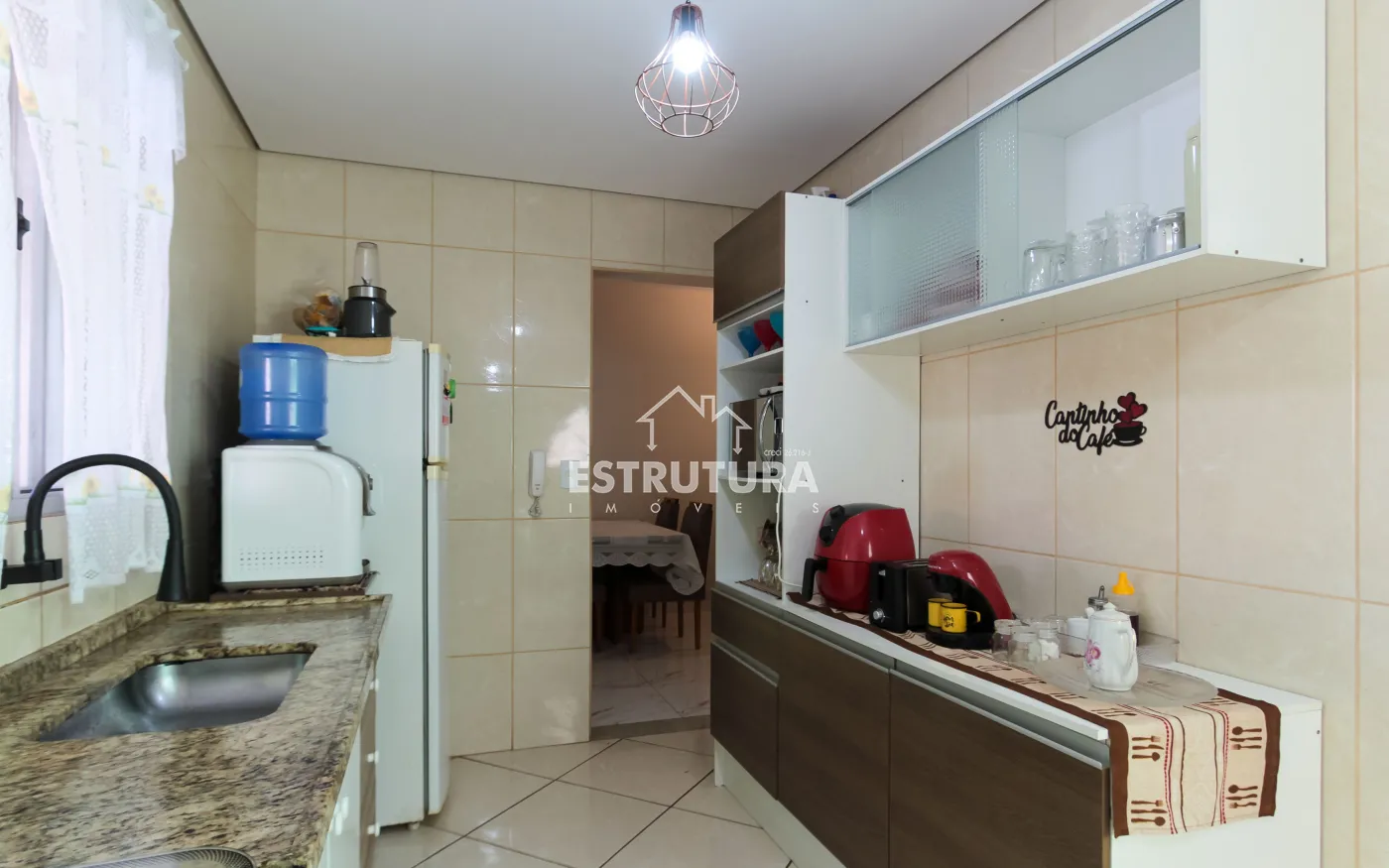 Sala, cozinha, 2 dormitórios sendo 1 suíte, cozinha, banheiro social, nos fundos quintal e lavanderia coberta . Garagem coberta para 2 carros.