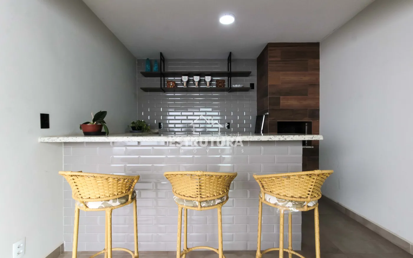 Área gourmet com armários planejados e churrasqueira, perfeita para receber amigos e familiares;