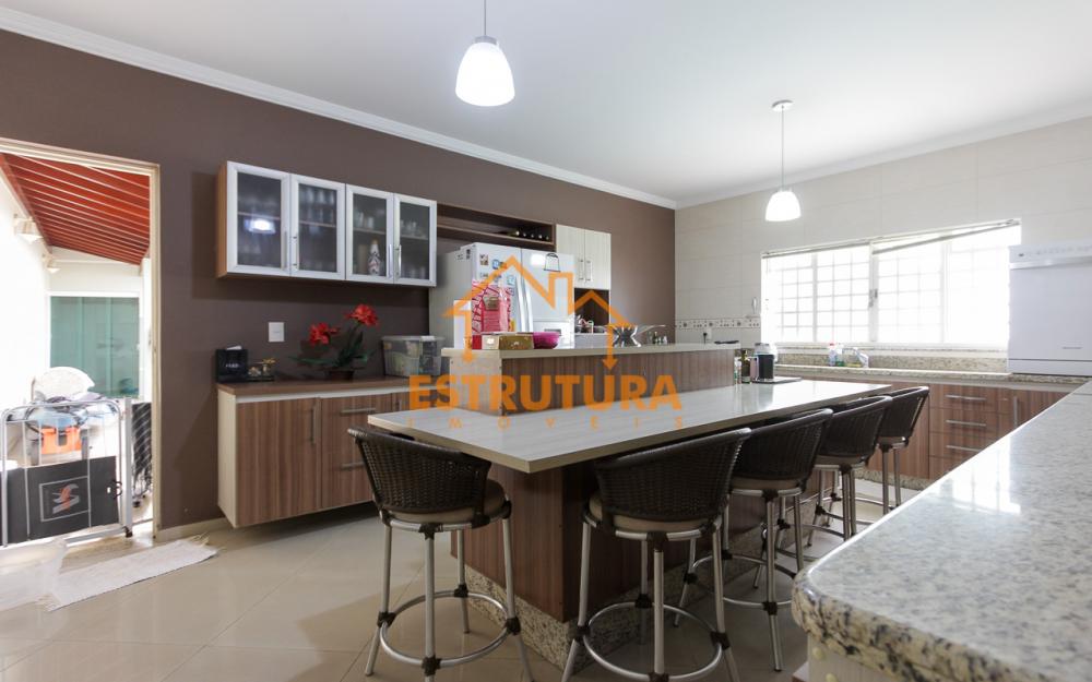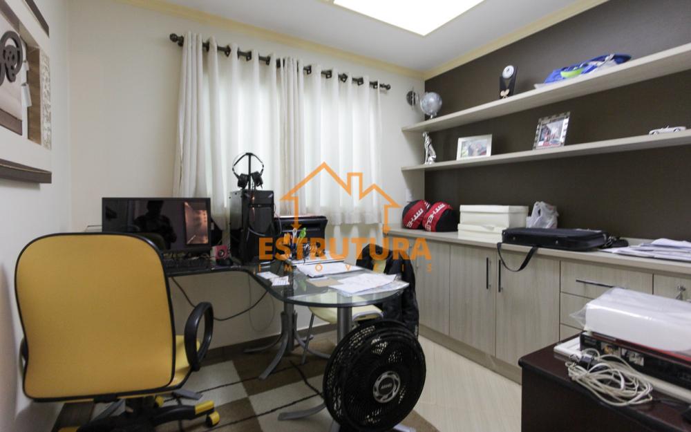Esta belíssima propriedade oferece 2 vagas de garagem cobertas e uma sala ampla com 2 ambientes, sanca de gesso, luminárias e lustre de luxo. O escritório é um charme à parte, com planejados e teto com vitral, criando um ambiente acolhedor. O dormitório térreo conta com guarda-roupas planejado, e a sala de TV está equipada com ar-condicionado para total conforto. A cozinha é totalmente planejada, rica em armários, e conta com uma despensa e lavabo.