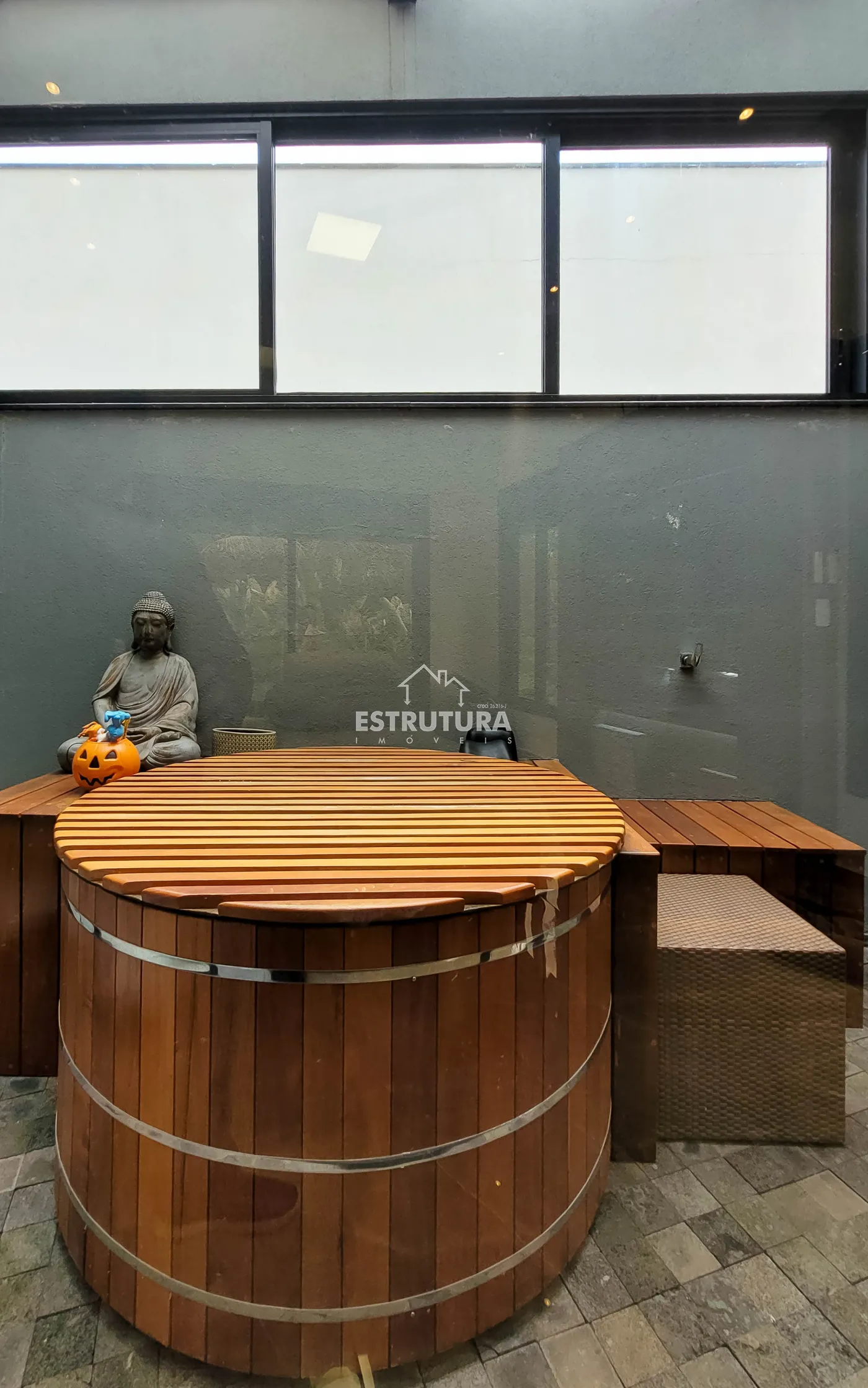 Esta casa conta com 4 suítes amplas, sendo a suíte master equipada com ofurô privativo, proporcionando momentos únicos de relaxamento. São 6 banheiros e 6 vagas de garagem, garantindo praticidade e espaço para toda a família.