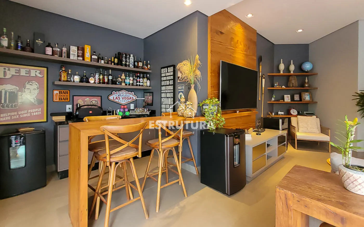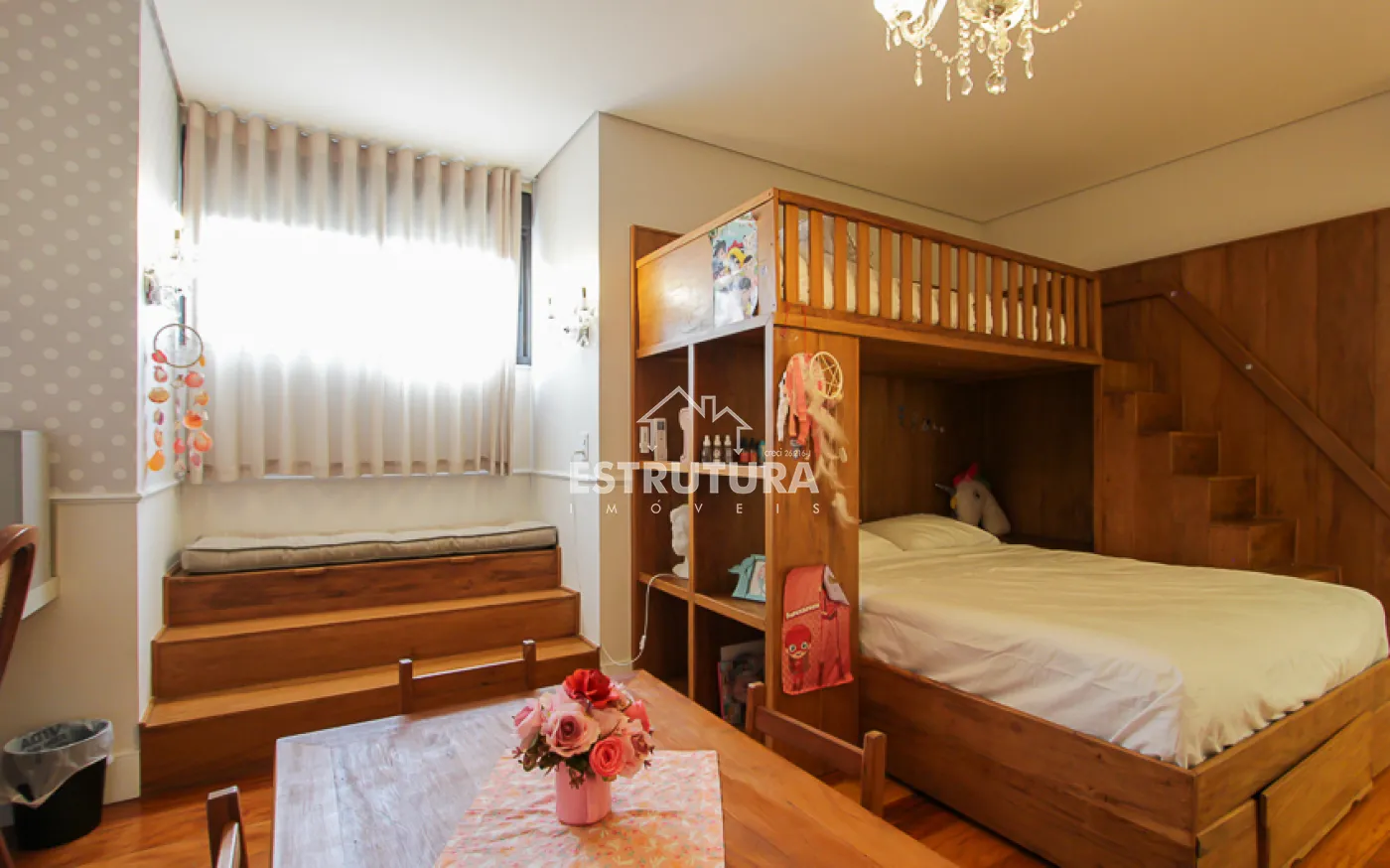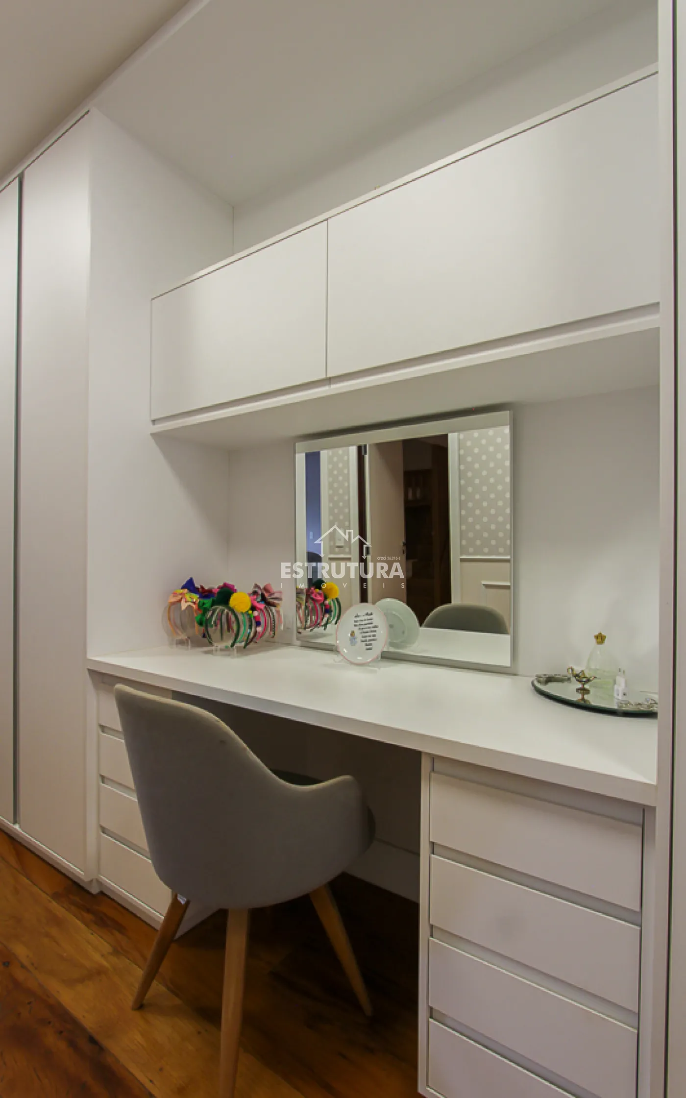 No piso superior, encontra-se uma pequena copa auxiliar, 2 dormitórios adicionais, um banheiro social e armários planejados em todos os ambientes, garantindo praticidade e organização.?