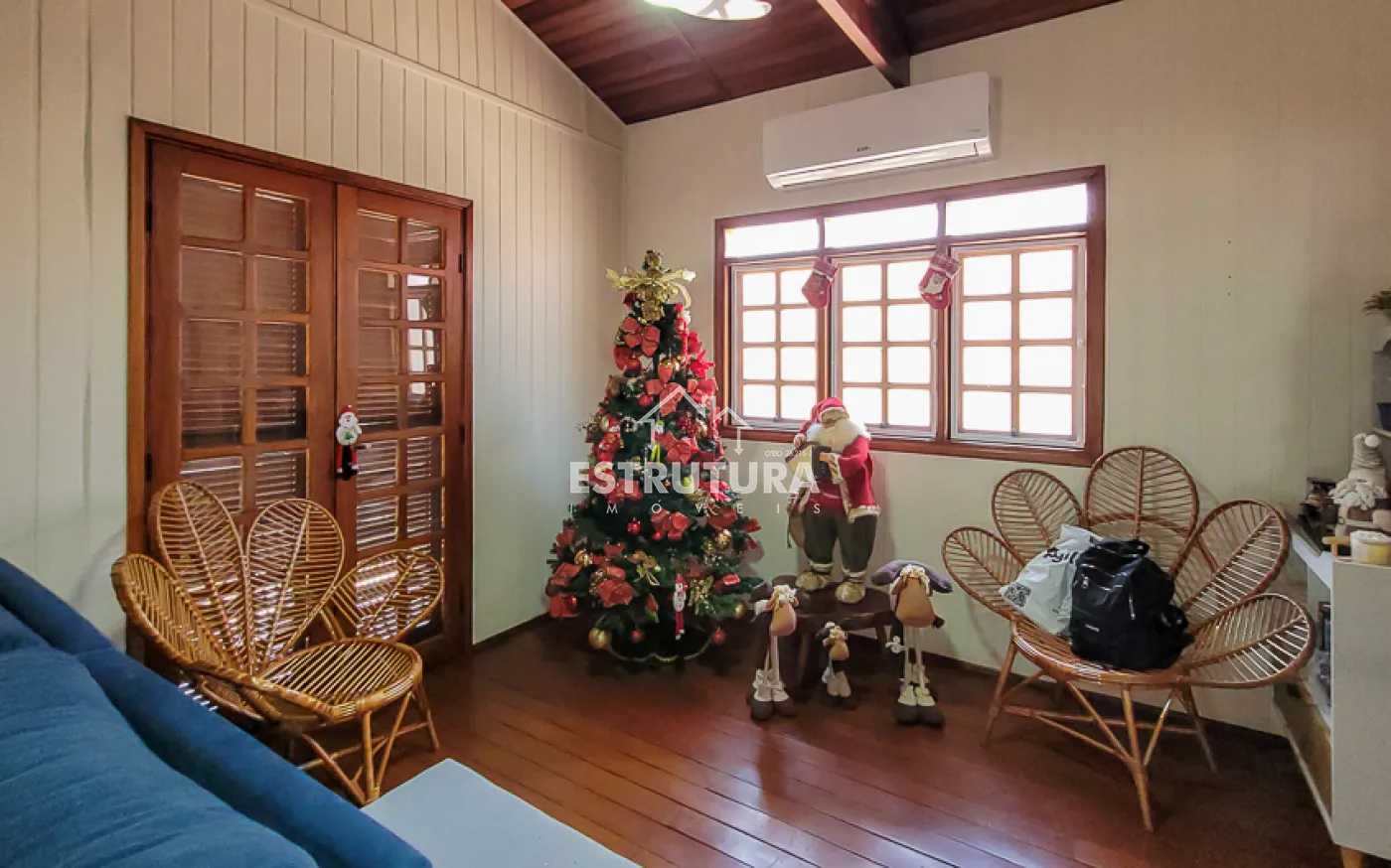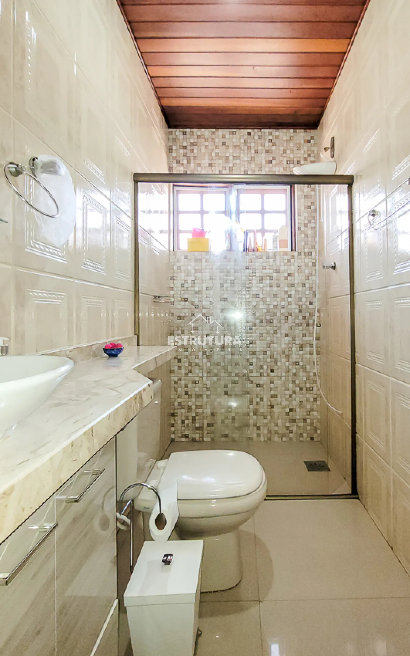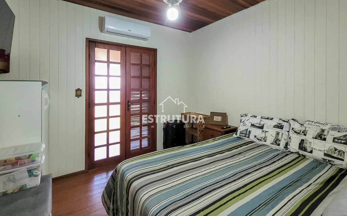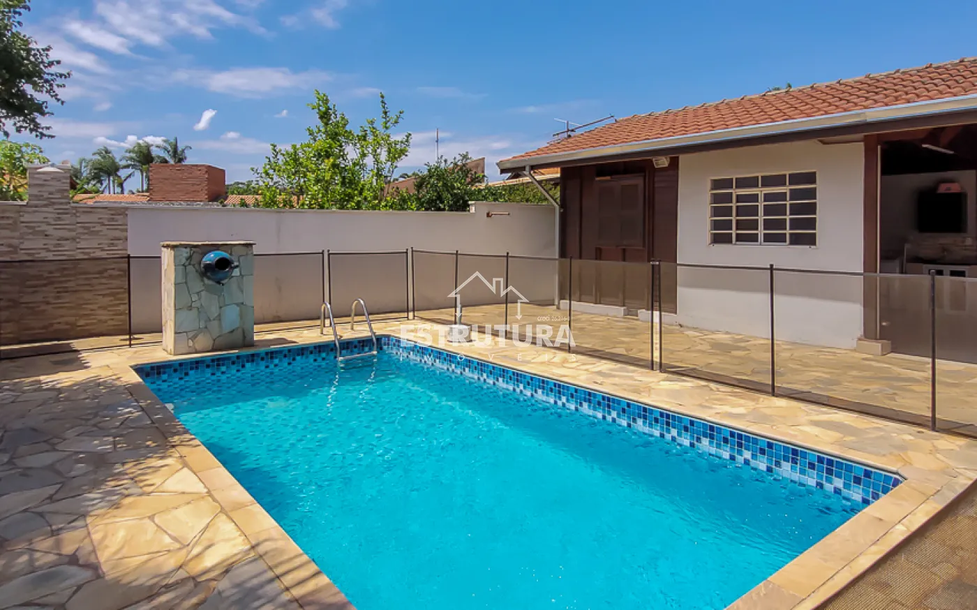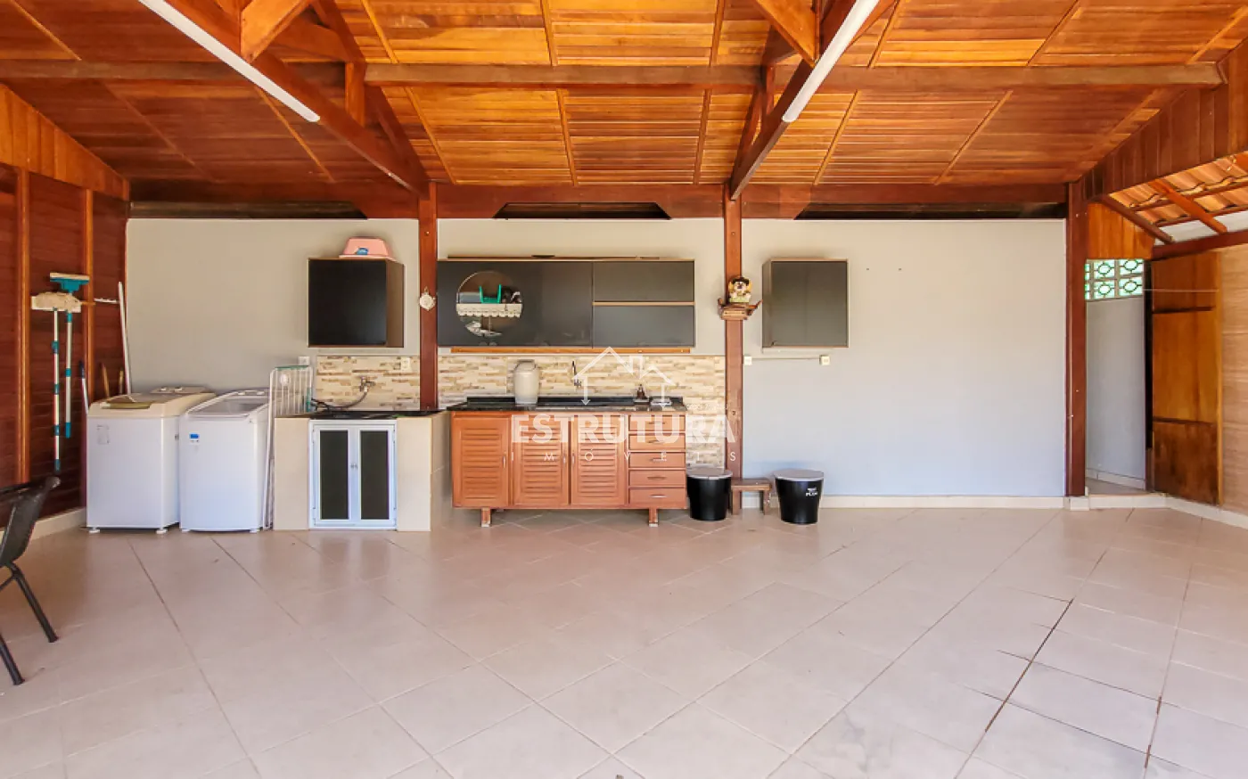 Com três quartos, sendo uma suíte, uma sala de estar, jantar, cozinha planejada e banheiro social, a casa possui uma ótima ventilação em todos os cômodos. Além disso, o quintal amplo conta com uma piscina e cascata, além de uma área gourmet com churrasqueira, fogão e forno a lenha, despensa e banheiro externo. Há também espaço para estacionar vários veículos, sendo dois cobertos.