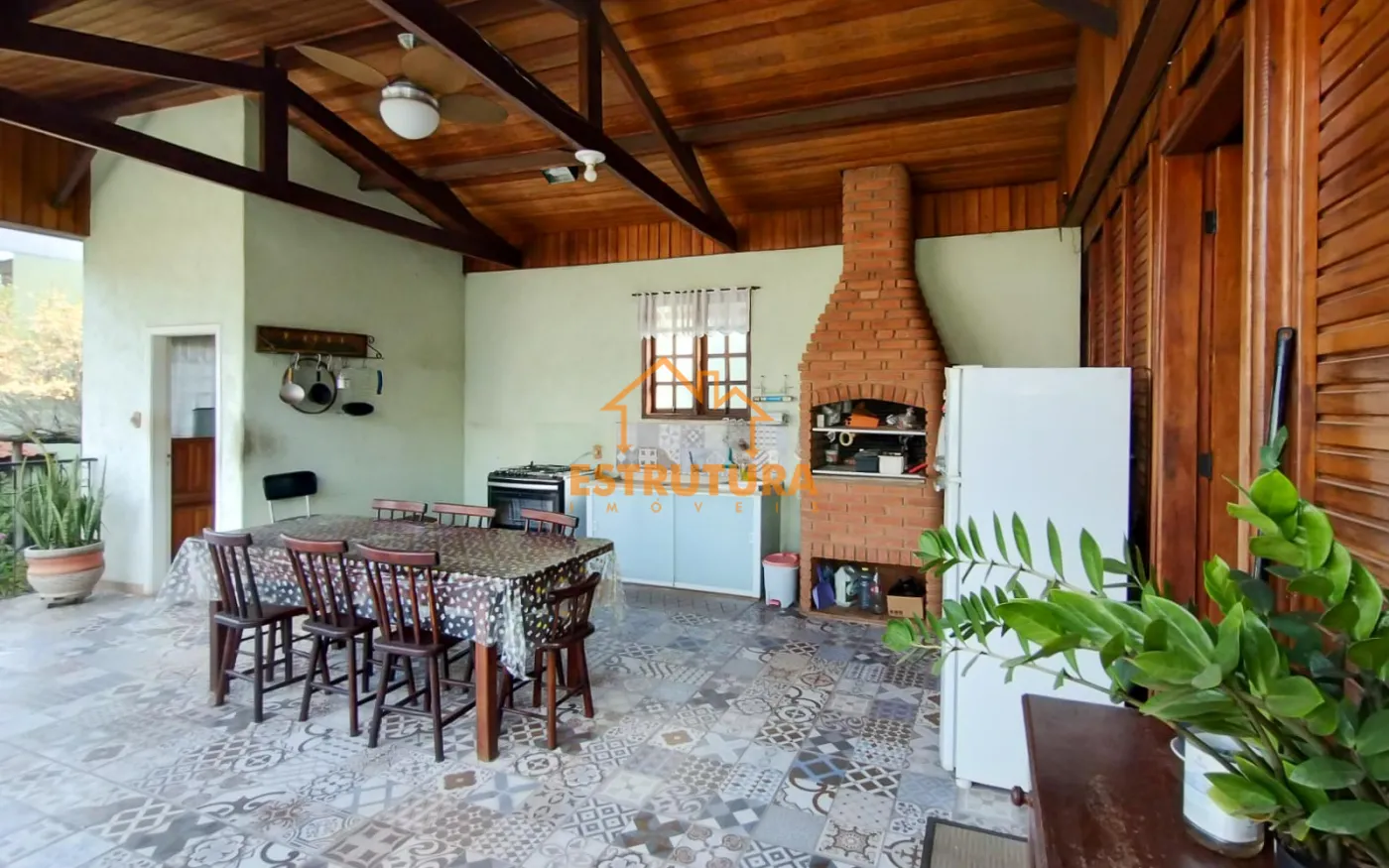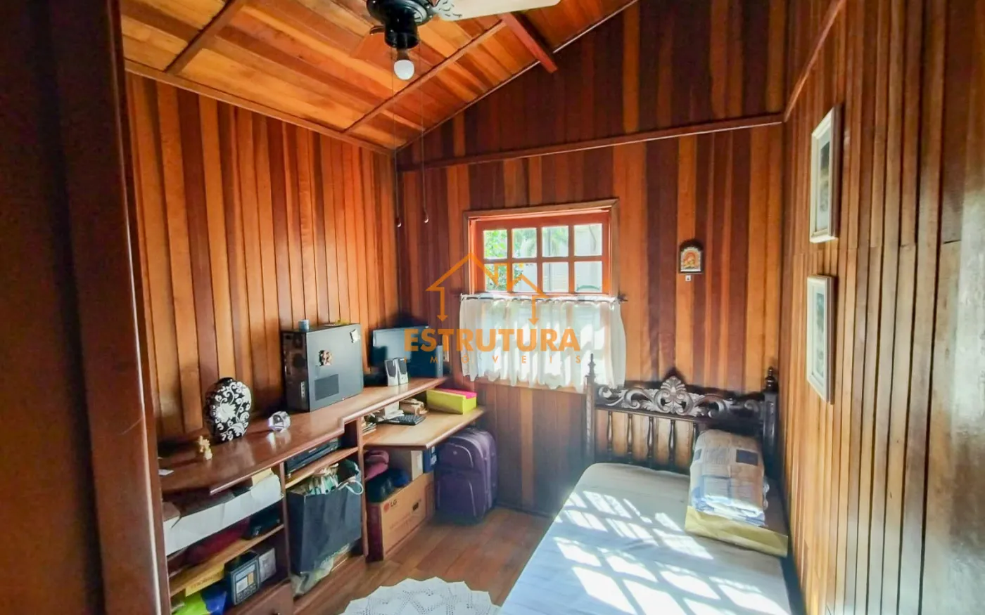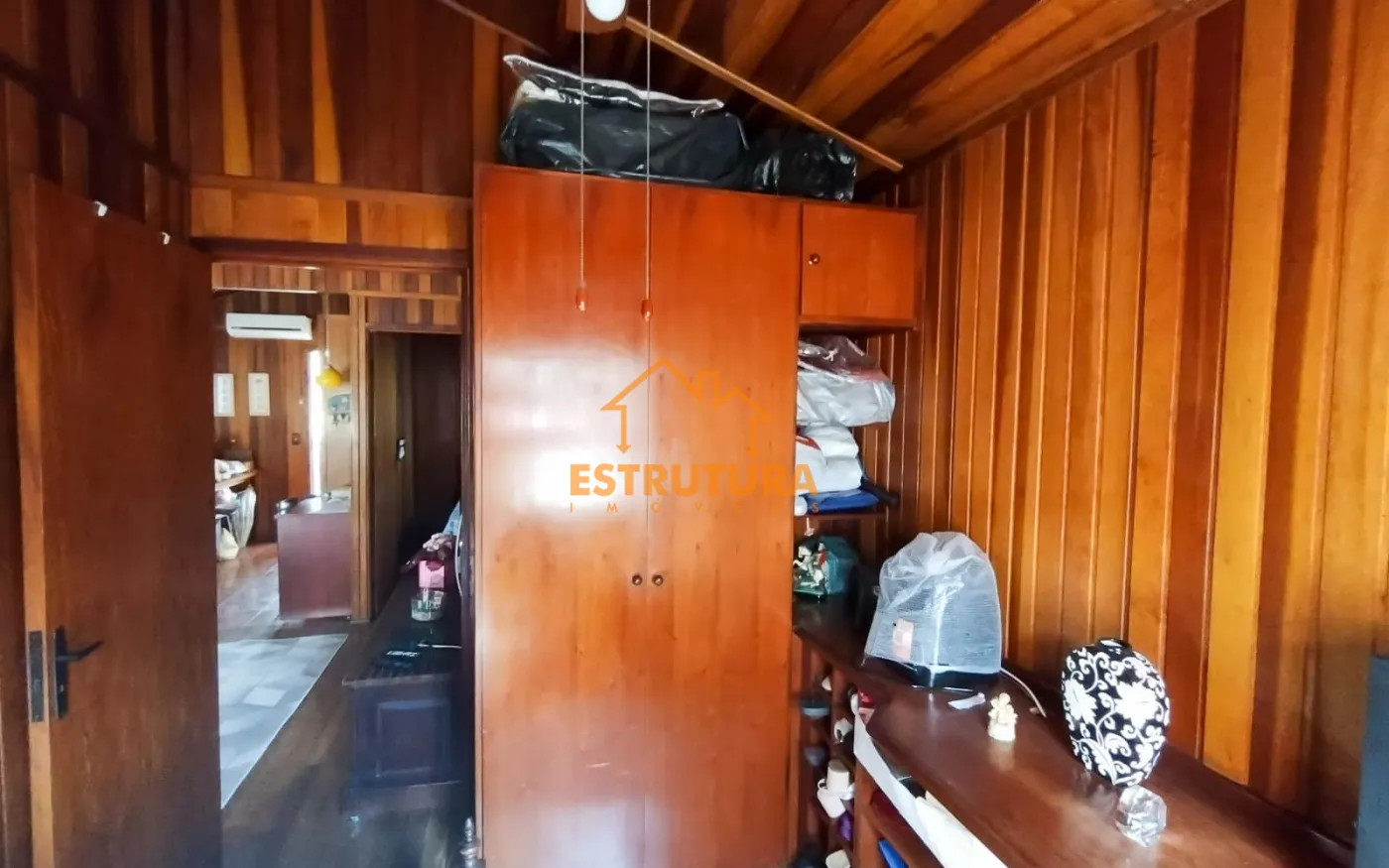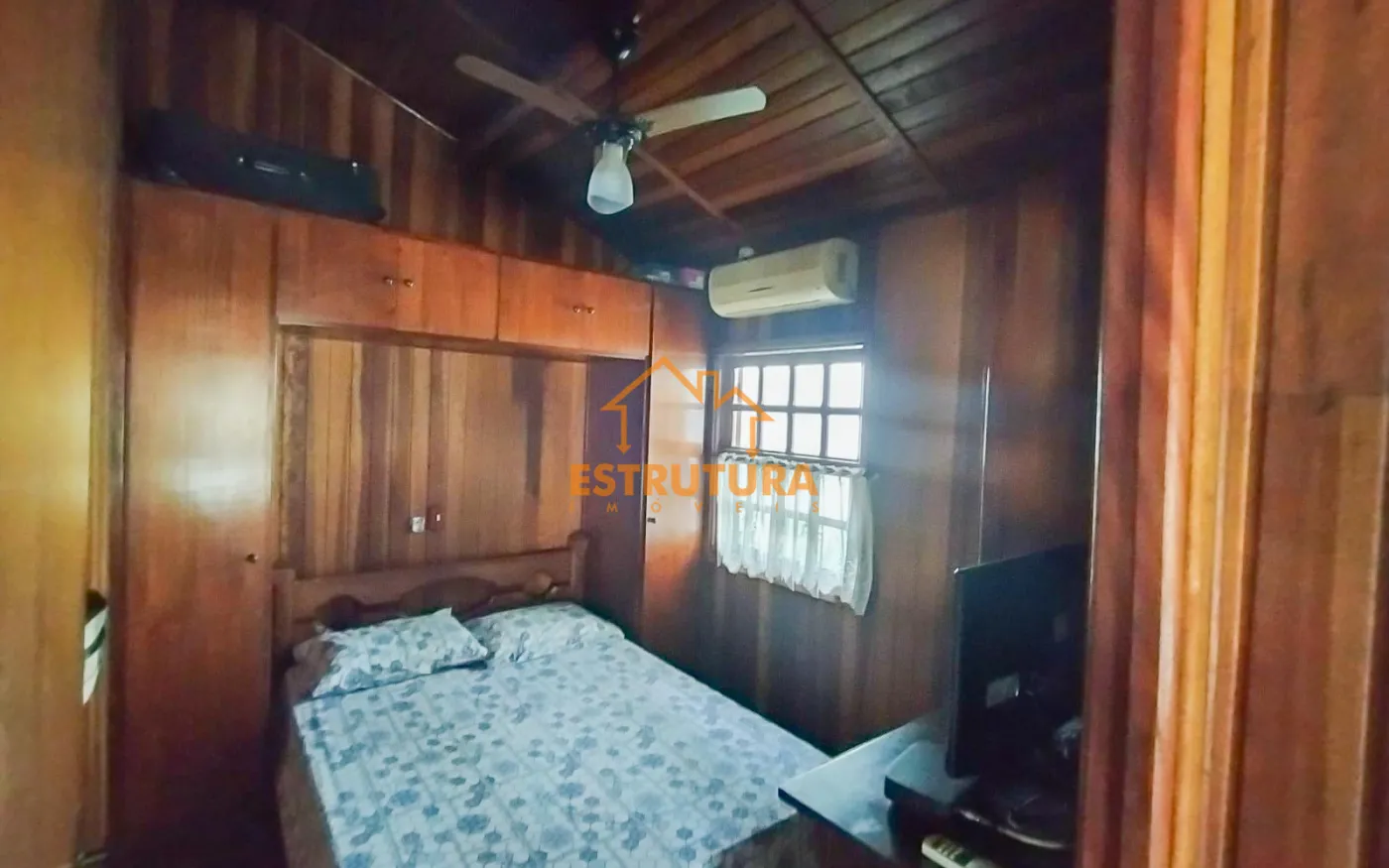 Garagem descoberta para 2 carros, casa de madeira com 2 dormitórios com armários embutidos e ar condicionado, hall de entrada, sala ampla cozinha com sala de jantar e balcão americano, ampla área gourmet, lavanderia com banheiro, piscina aterrada, quintal, canil e quarto de despejo com rancho